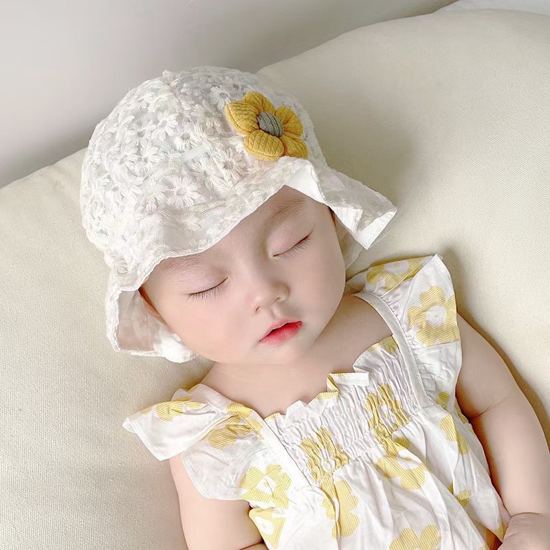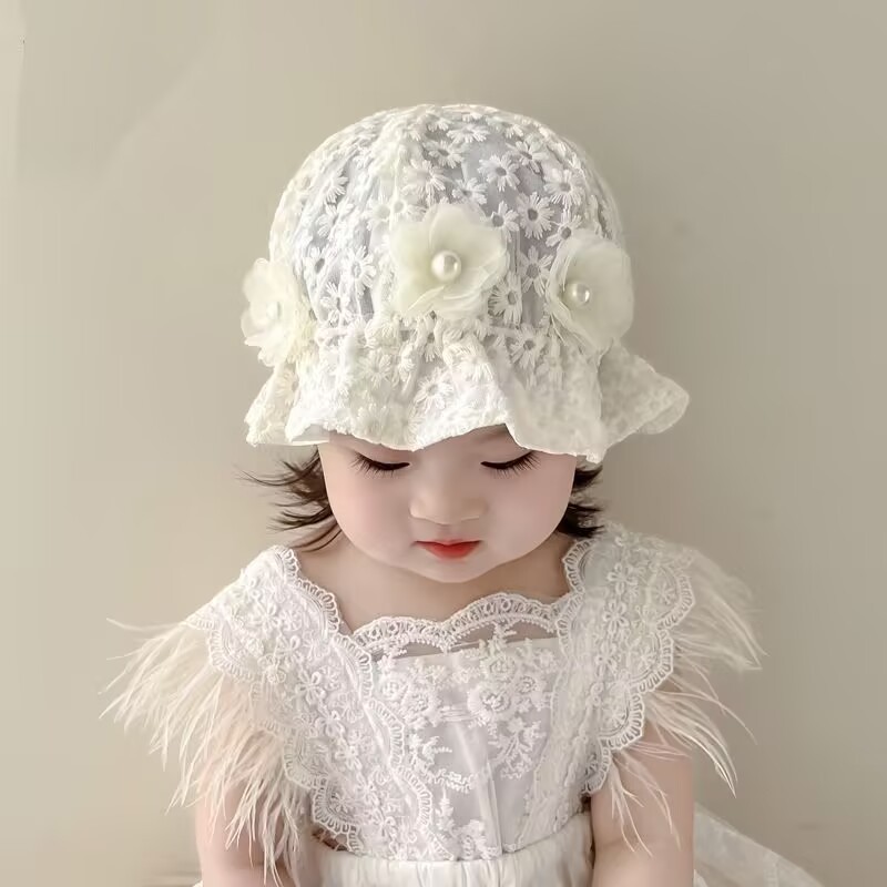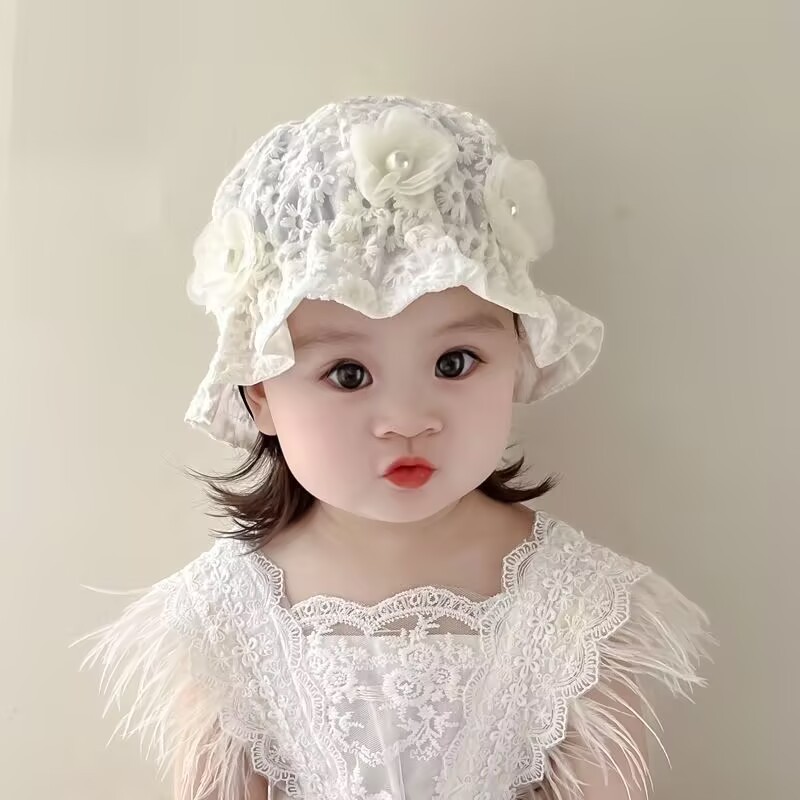 새로운 아기 모자 봄과 여름 공주 레이스 꽃 어부 모자 아기 어린이 분지 모자 아기 소녀 태양 보호