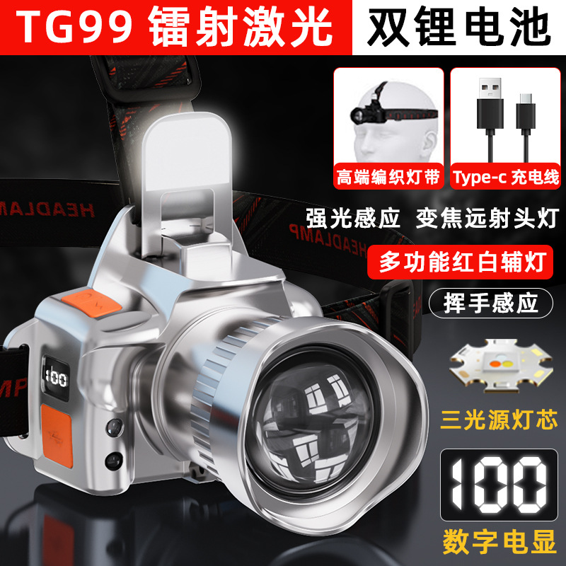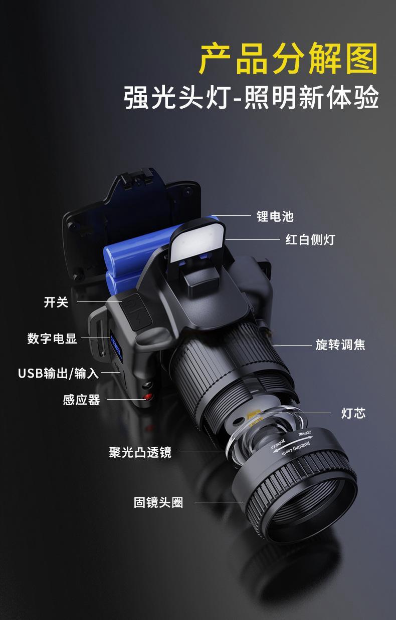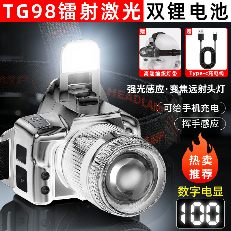 국경을 넘는 인기 상품, 야외용 강력 헤드램프, 긴 배터리 수명, 다기능 야외 등산용 헤드램프, COB 작업등