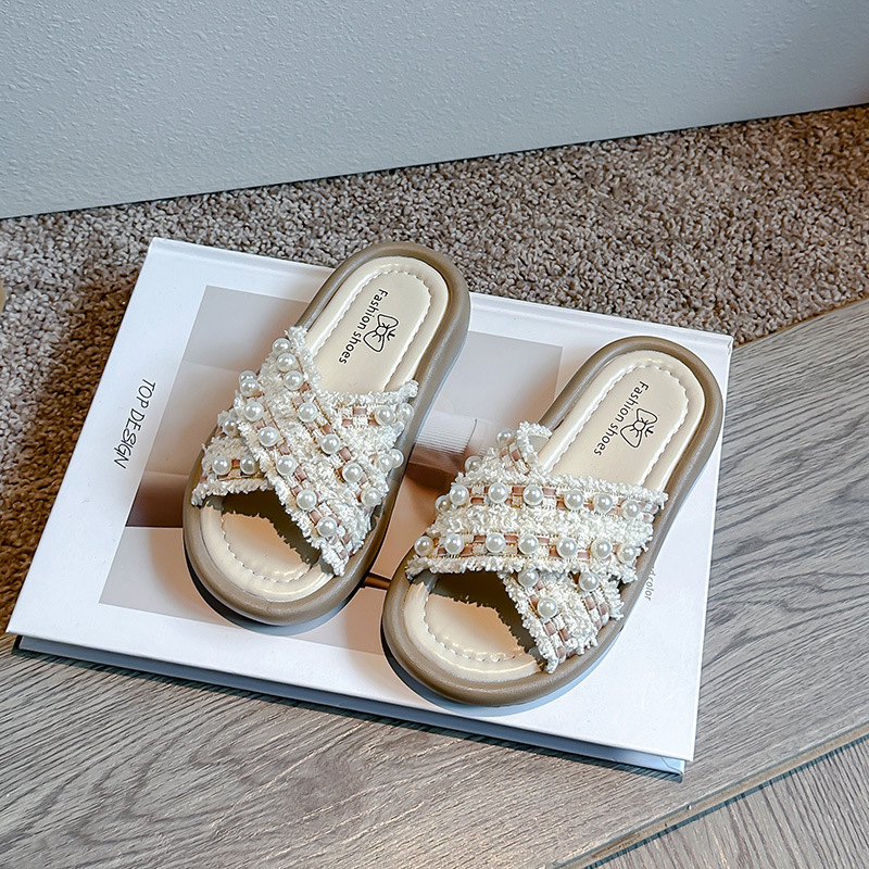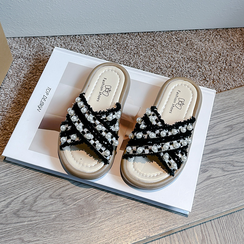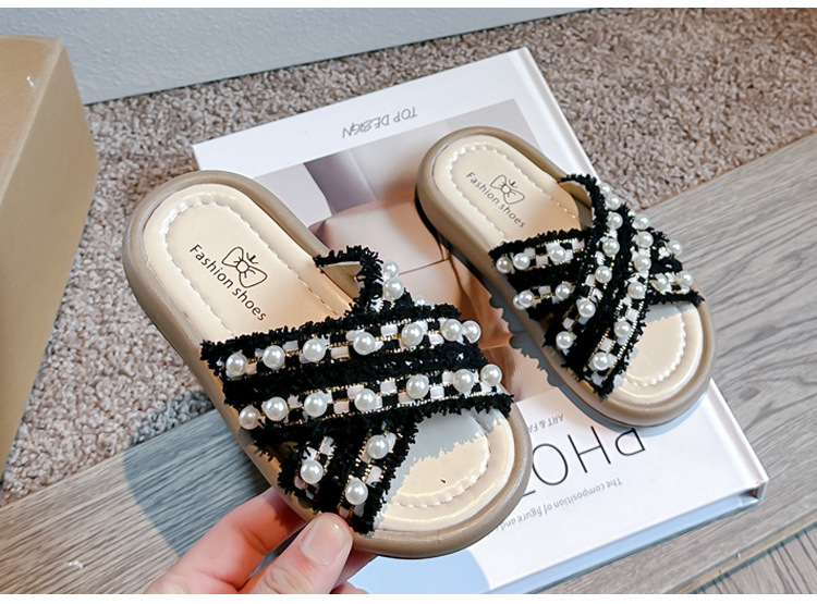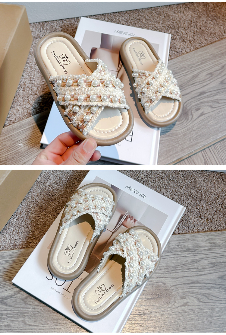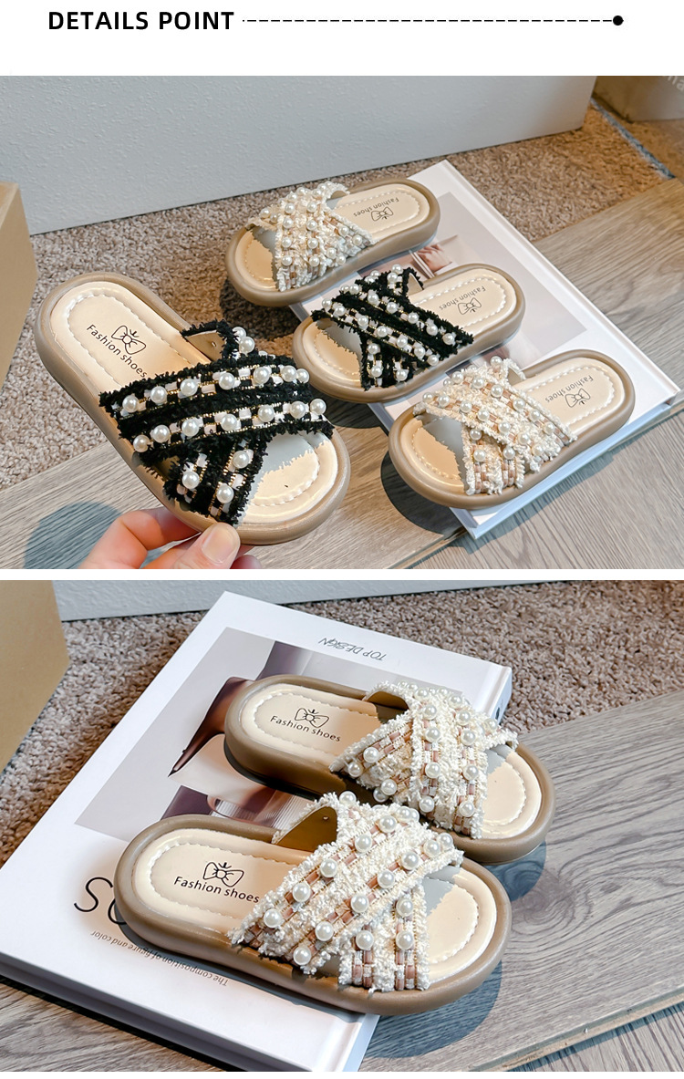 2025년 여름 신상품 어린이 슬리퍼, 여아용 부드러운 밑창 미끄럼 방지 크로스형 워터 다이아몬드 플랫 슬리퍼, 트렌디한 디자인스토어 가기