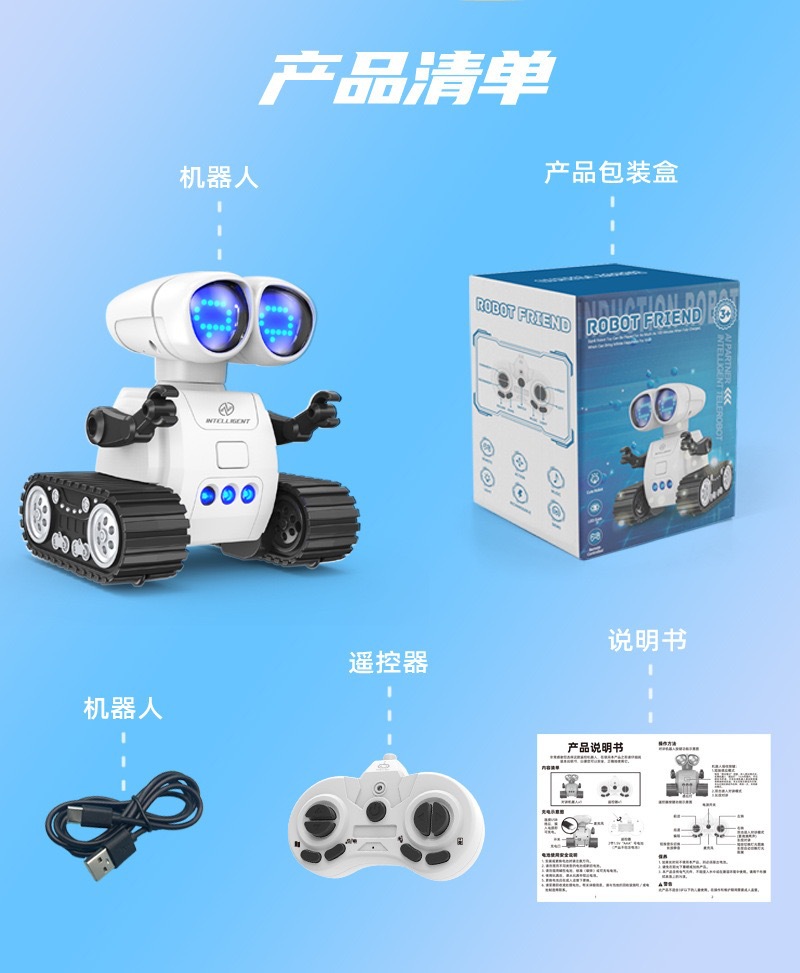 원격 제어 유도 프로그래밍 가능한 조기 교육 지능형 로봇 인터콤 LED 조명을 피하기 위해 국경 간 폭발 새로운 음악