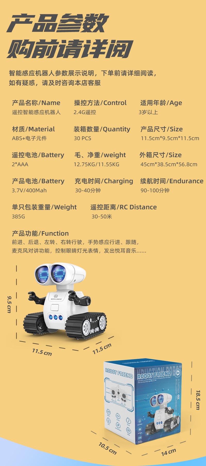 원격 제어 유도 프로그래밍 가능한 조기 교육 지능형 로봇 인터콤 LED 조명을 피하기 위해 국경 간 폭발 새로운 음악스토어 가기