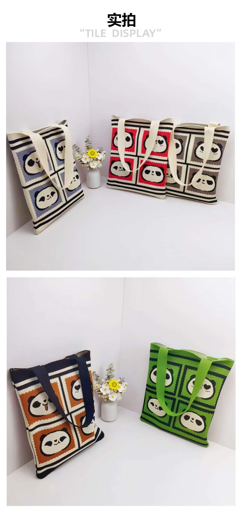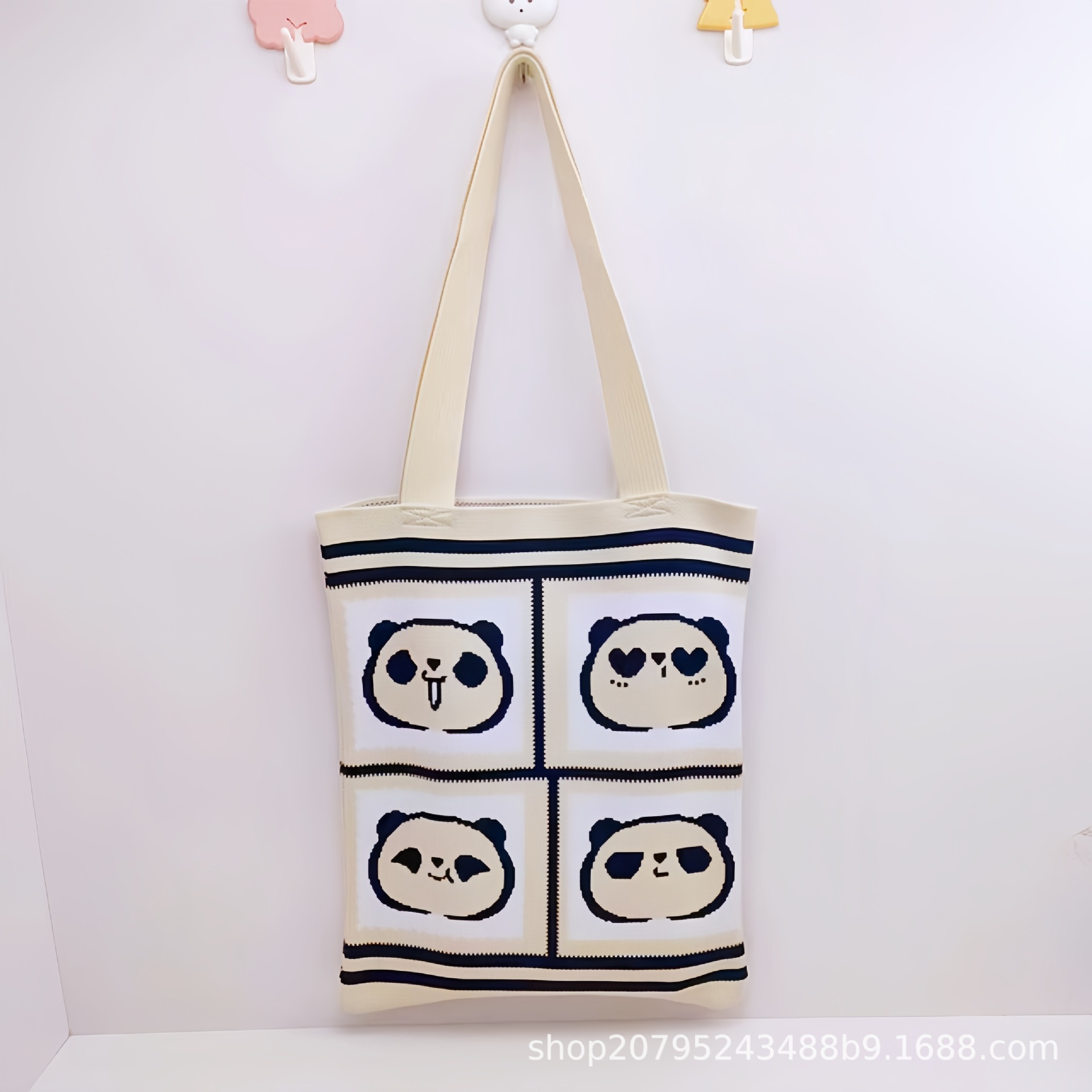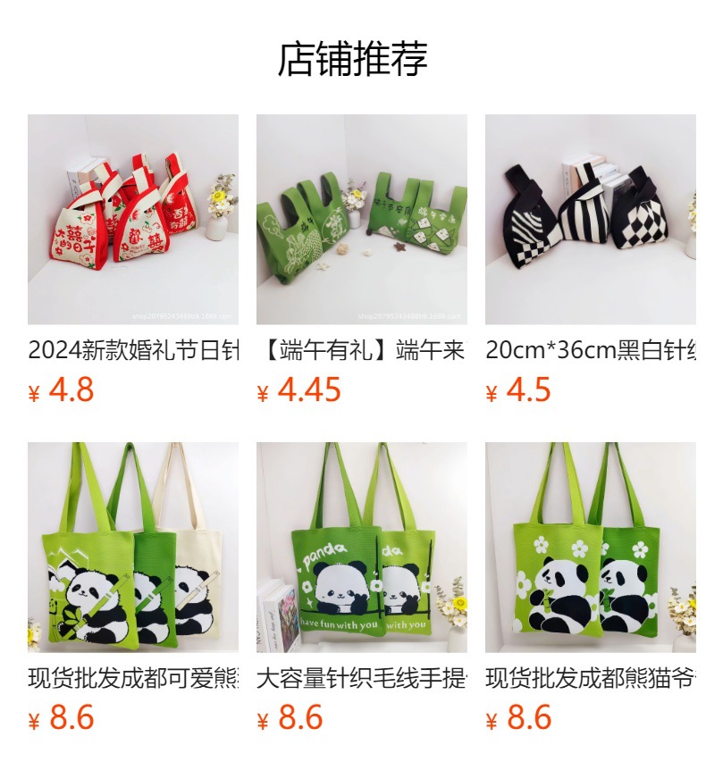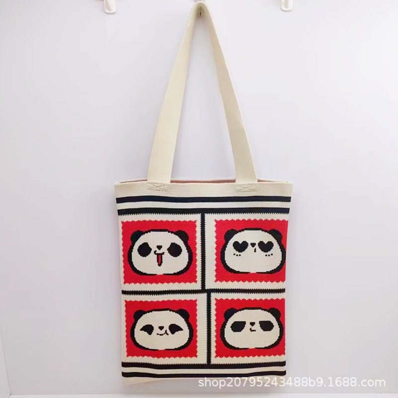 재고 도매 청두 팬더 할아버지 귀여운 대용량 어깨 가방 선물 가방 손 가방 니트 가방스토어 가기