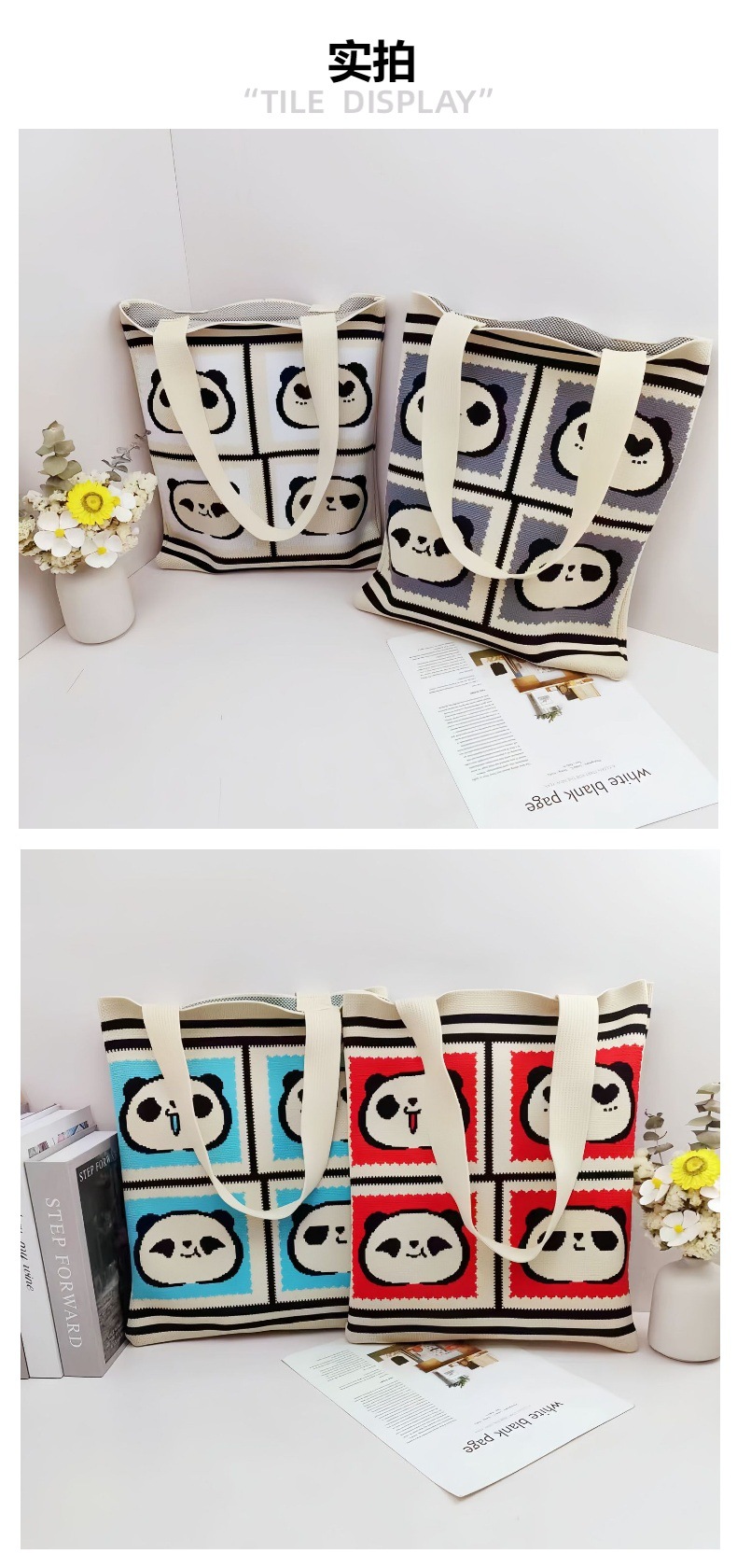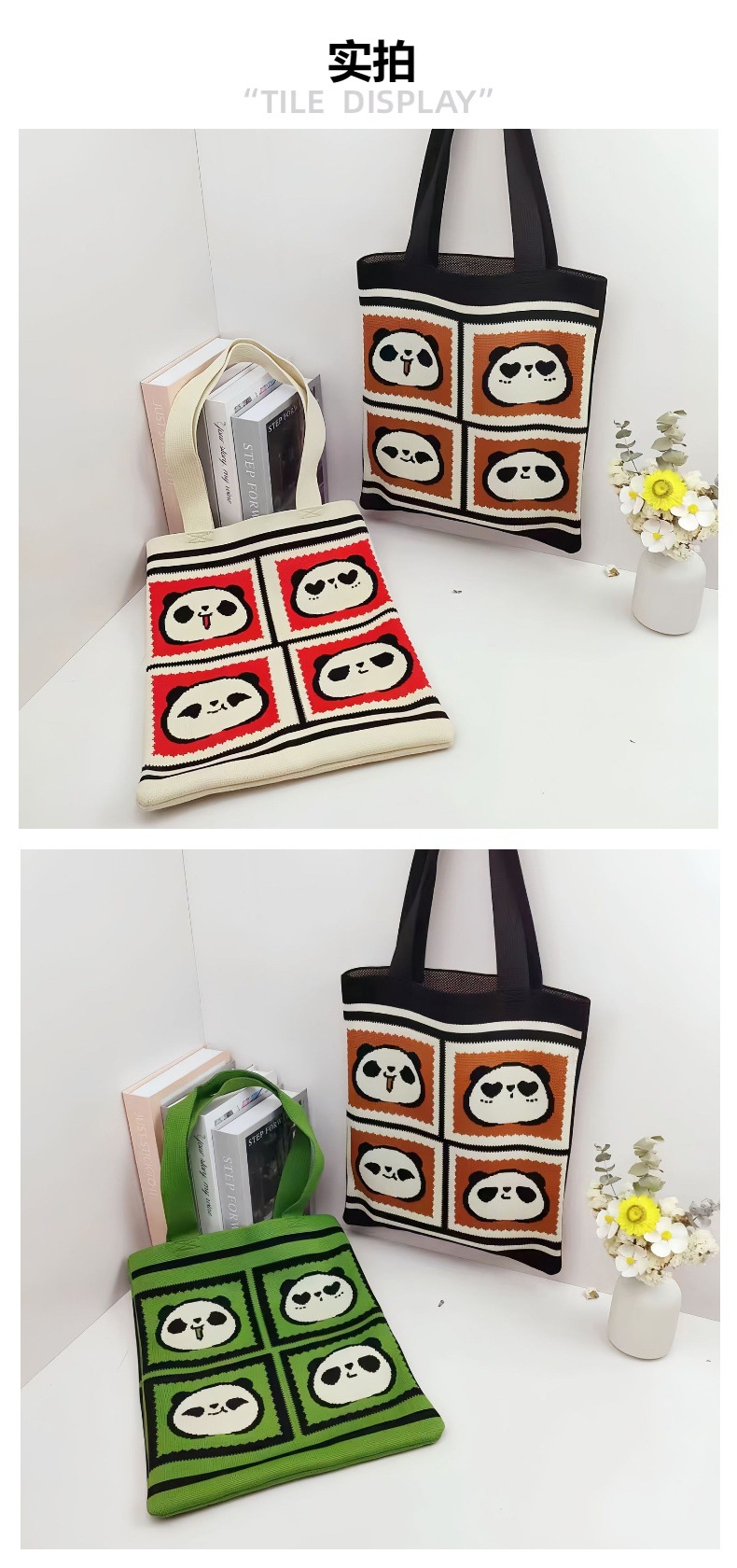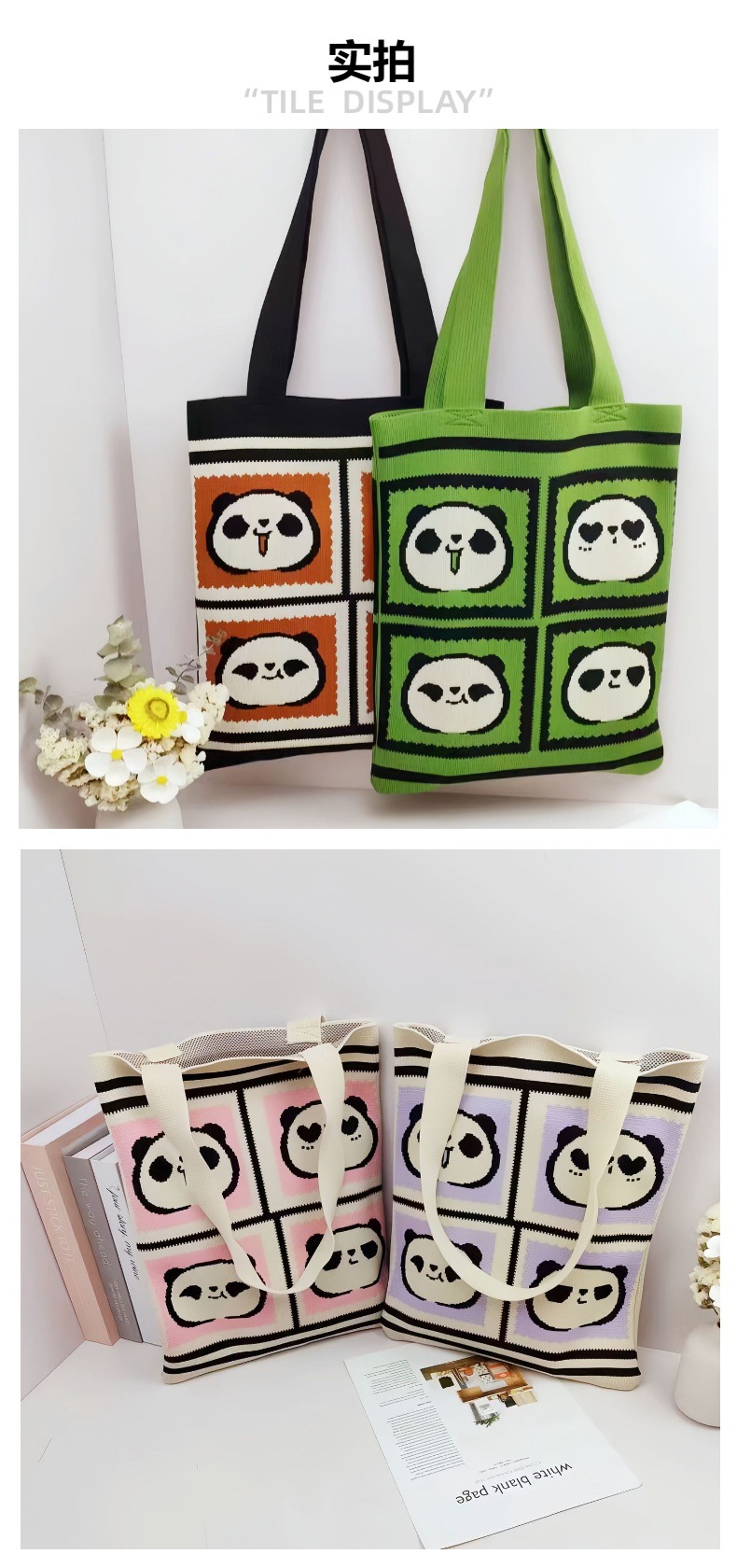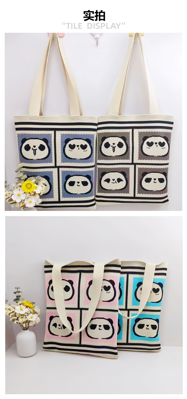재고 도매 청두 팬더 할아버지 귀여운 대용량 어깨 가방 선물 가방 손 가방 니트 가방스토어 가기