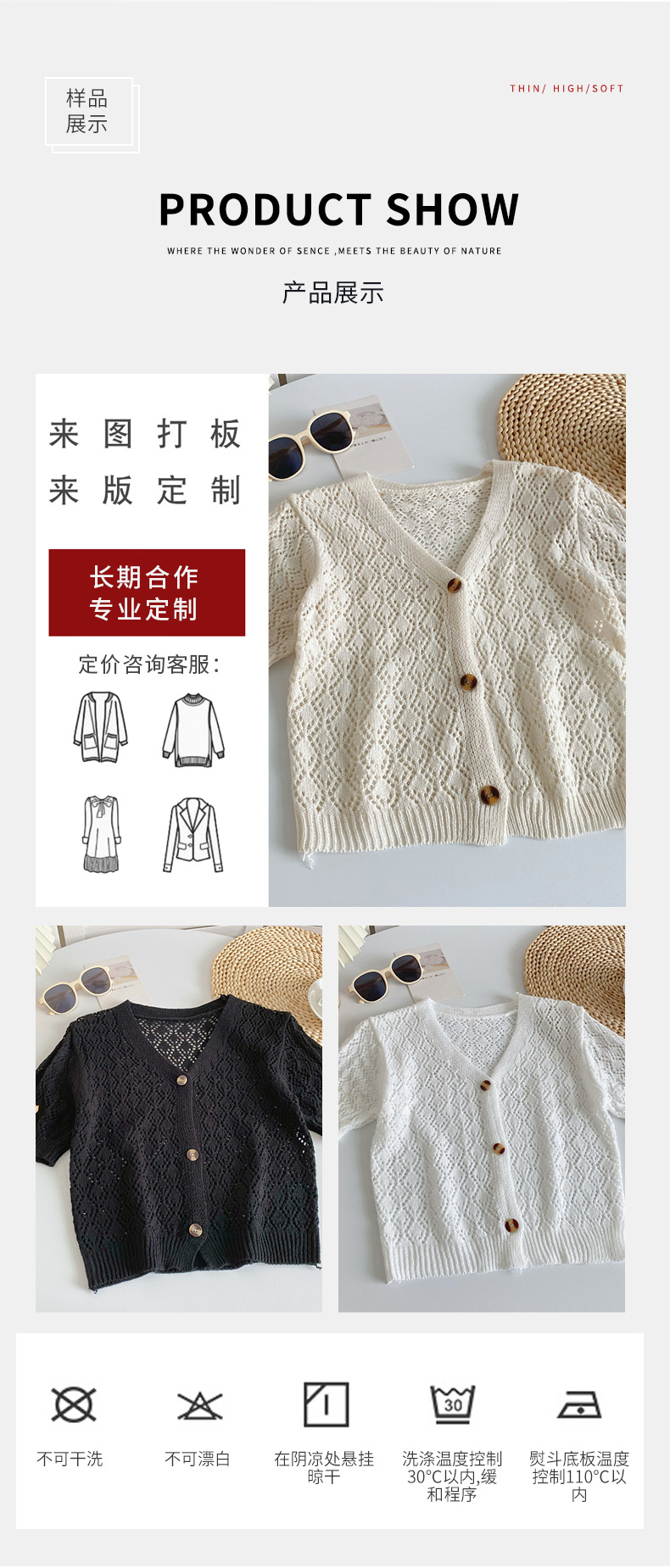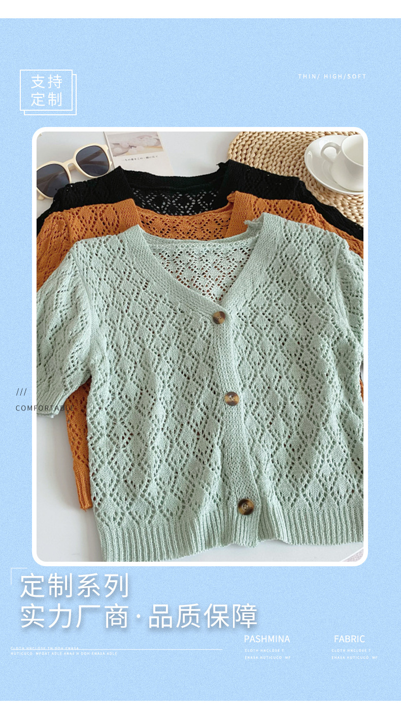 여성용 봄 여름 아이스 실크 아우터 스웨터, 맞춤형 한국식 브이넥 중공 반팔 얇은 다용도 에어컨 셔츠 가공스토어 가기