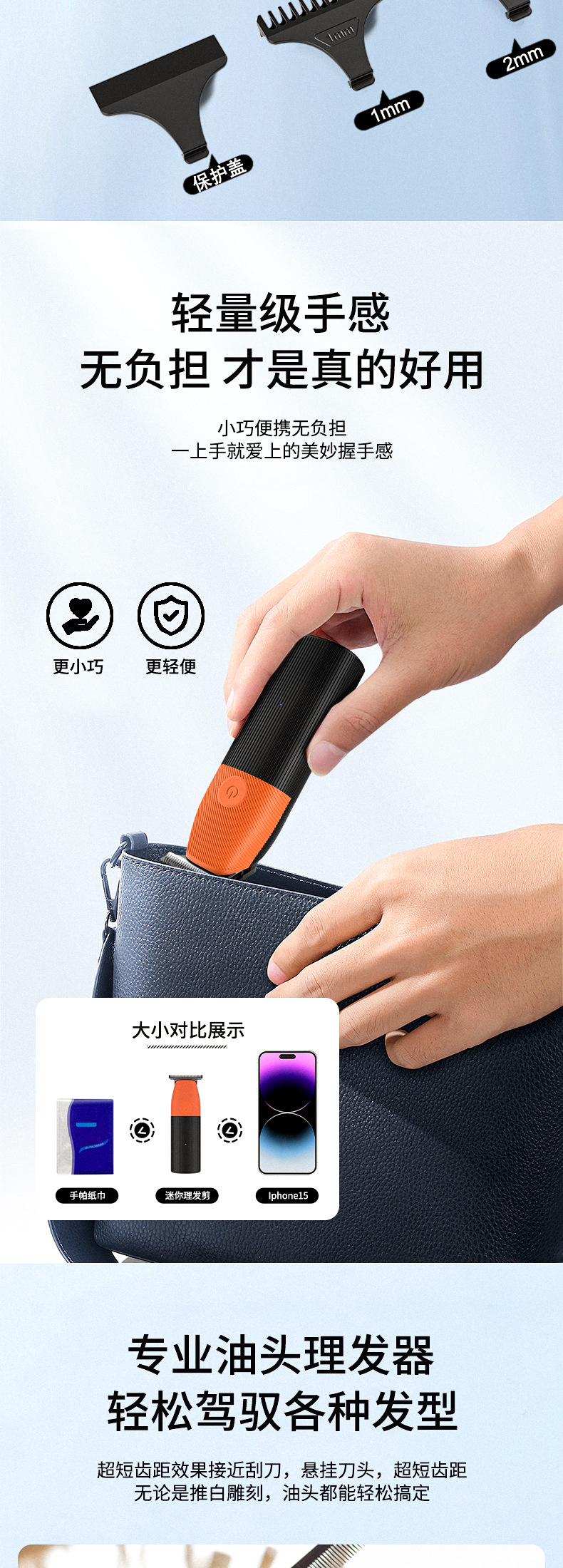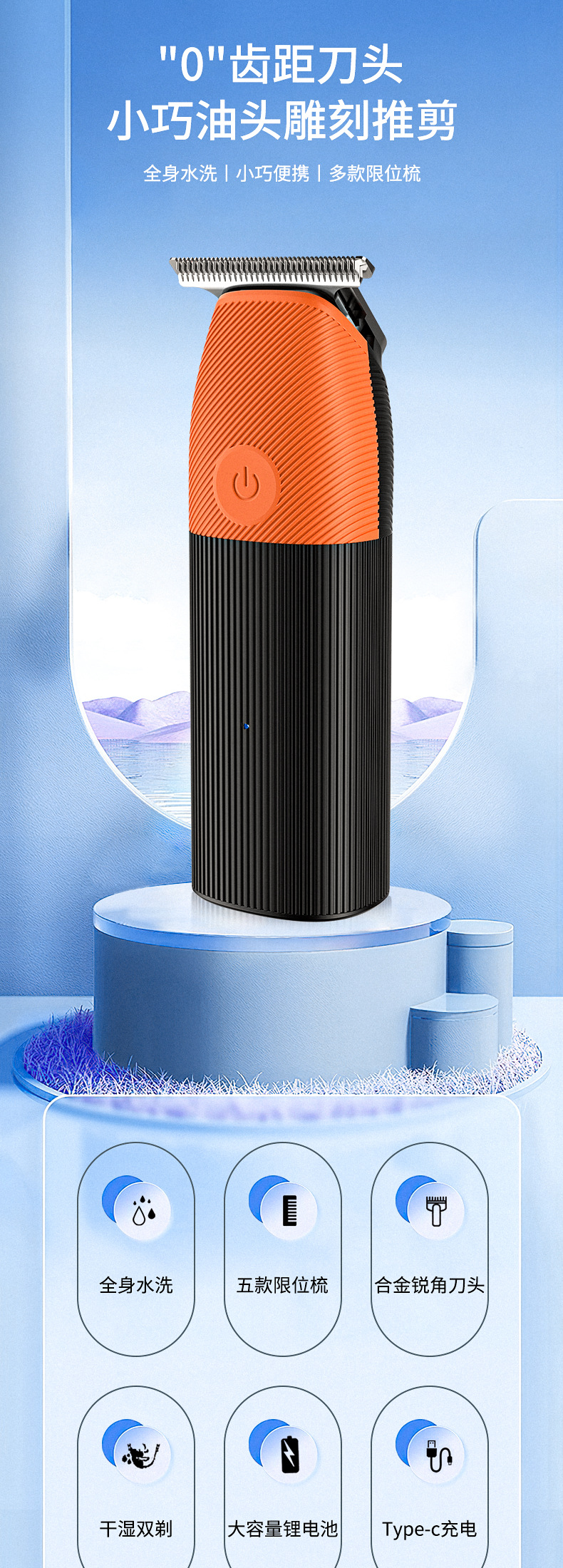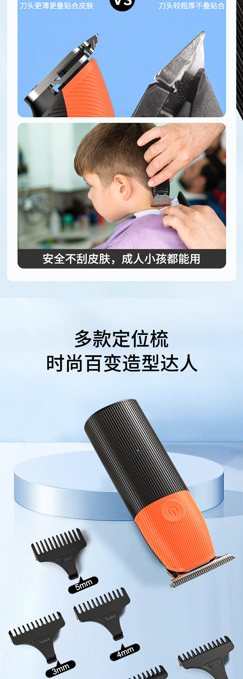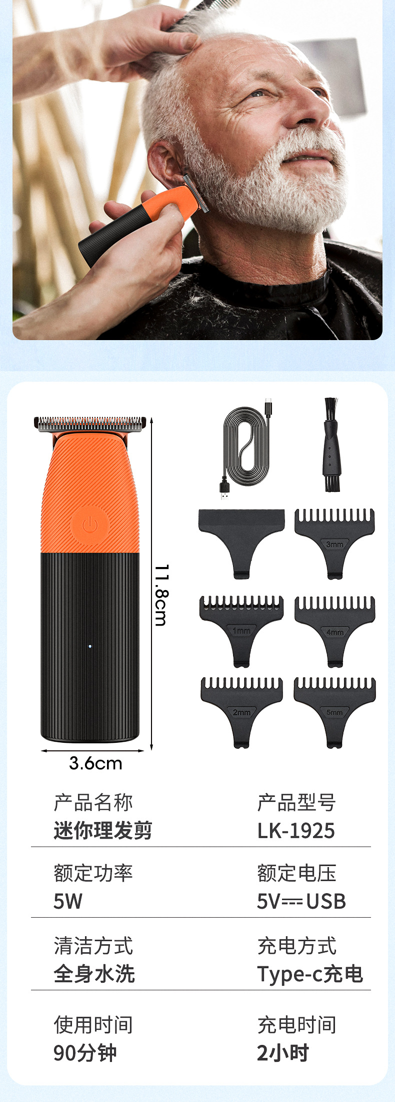 包装:理发器 USB充电器 限位梳(1 2 3 4 5mm) 清洁刷