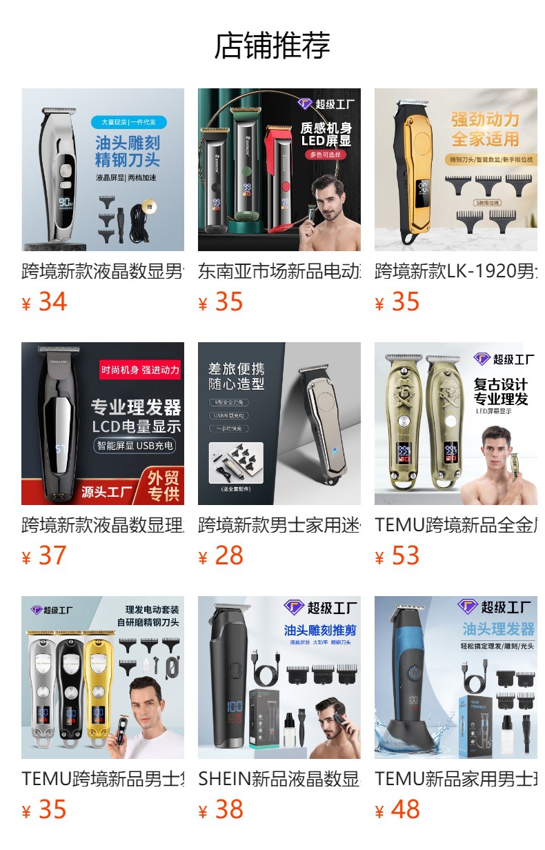제조 업체 남성 전기 헤어 클리퍼 USB 휴대용 전기 클리퍼 TEMU 동남 아시아 베스트셀러 면도기 조각 가위스토어 가기