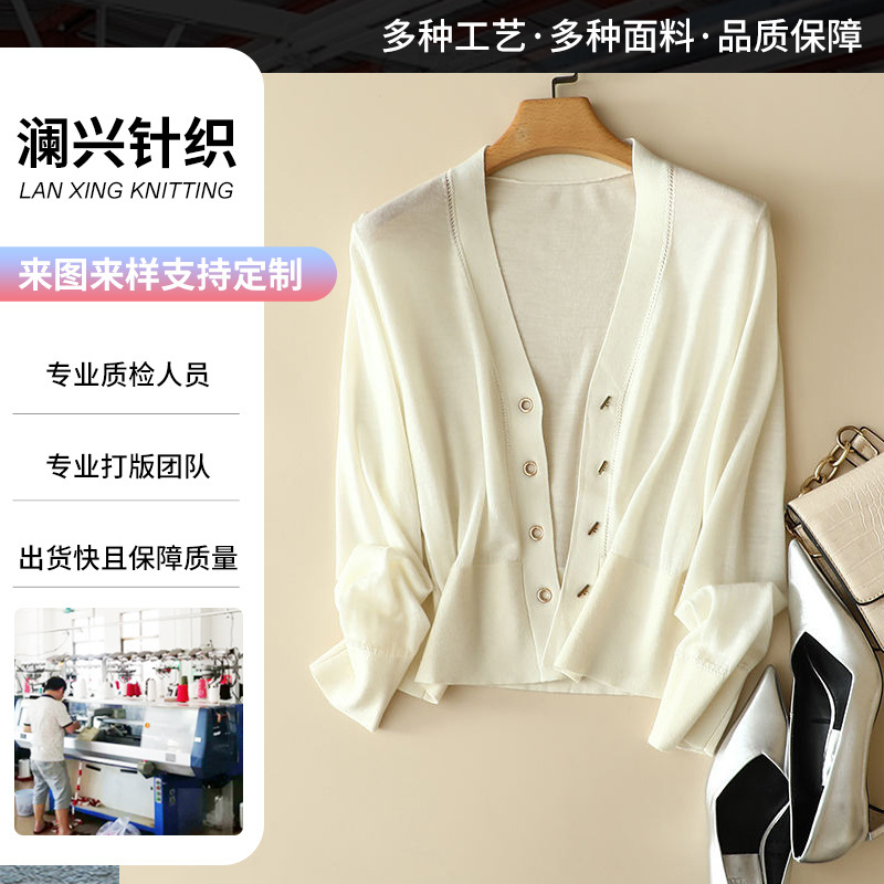 여성용 맞춤형 여름 얼음 실크 얇은 니트 카디건, 자외선 차단 짧은 아우터 니트 에어컨 셔츠 가공스토어 가기