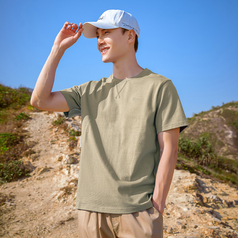 로드 러너 여름 남자 반팔 티셔츠 퓨어 코튼 반소매 캐주얼 올 매치 자수 티셔츠베이스 셔츠 스포츠