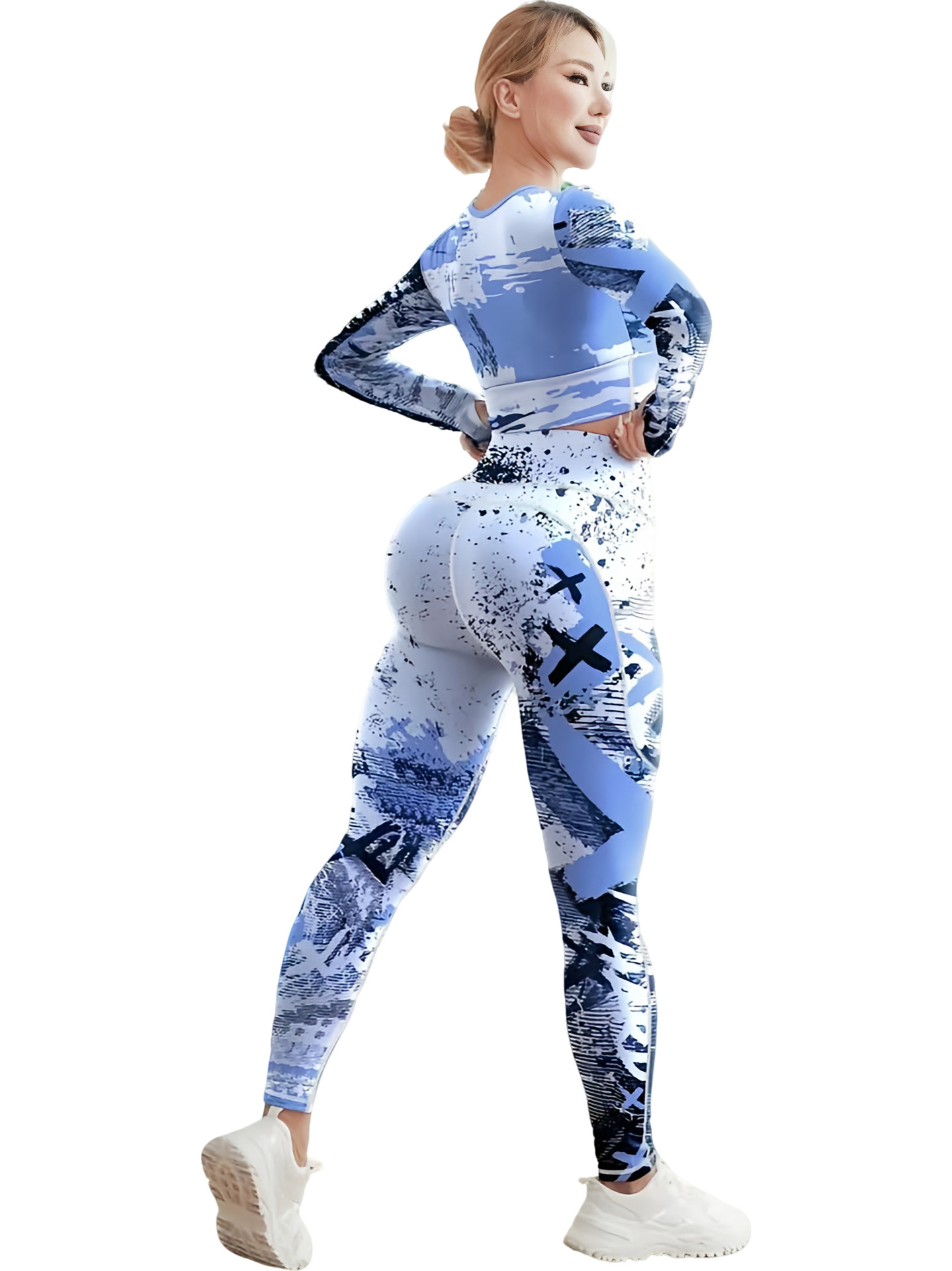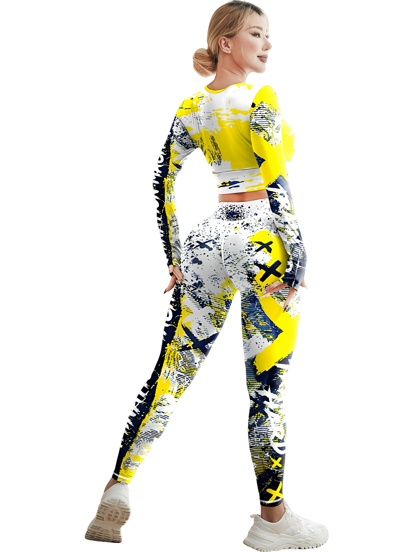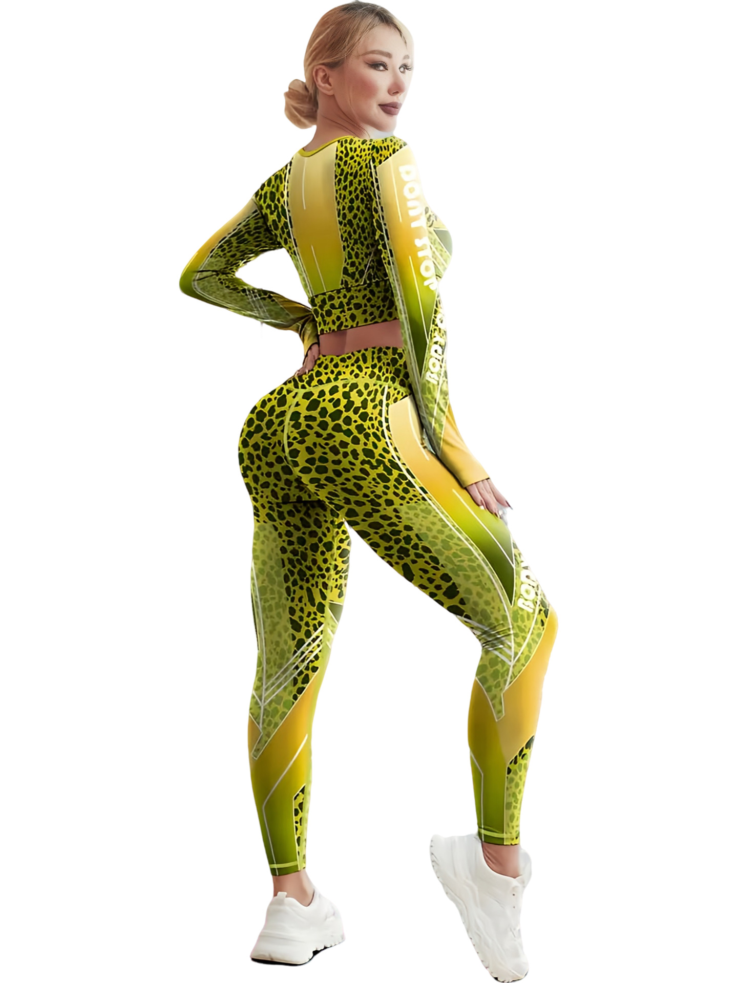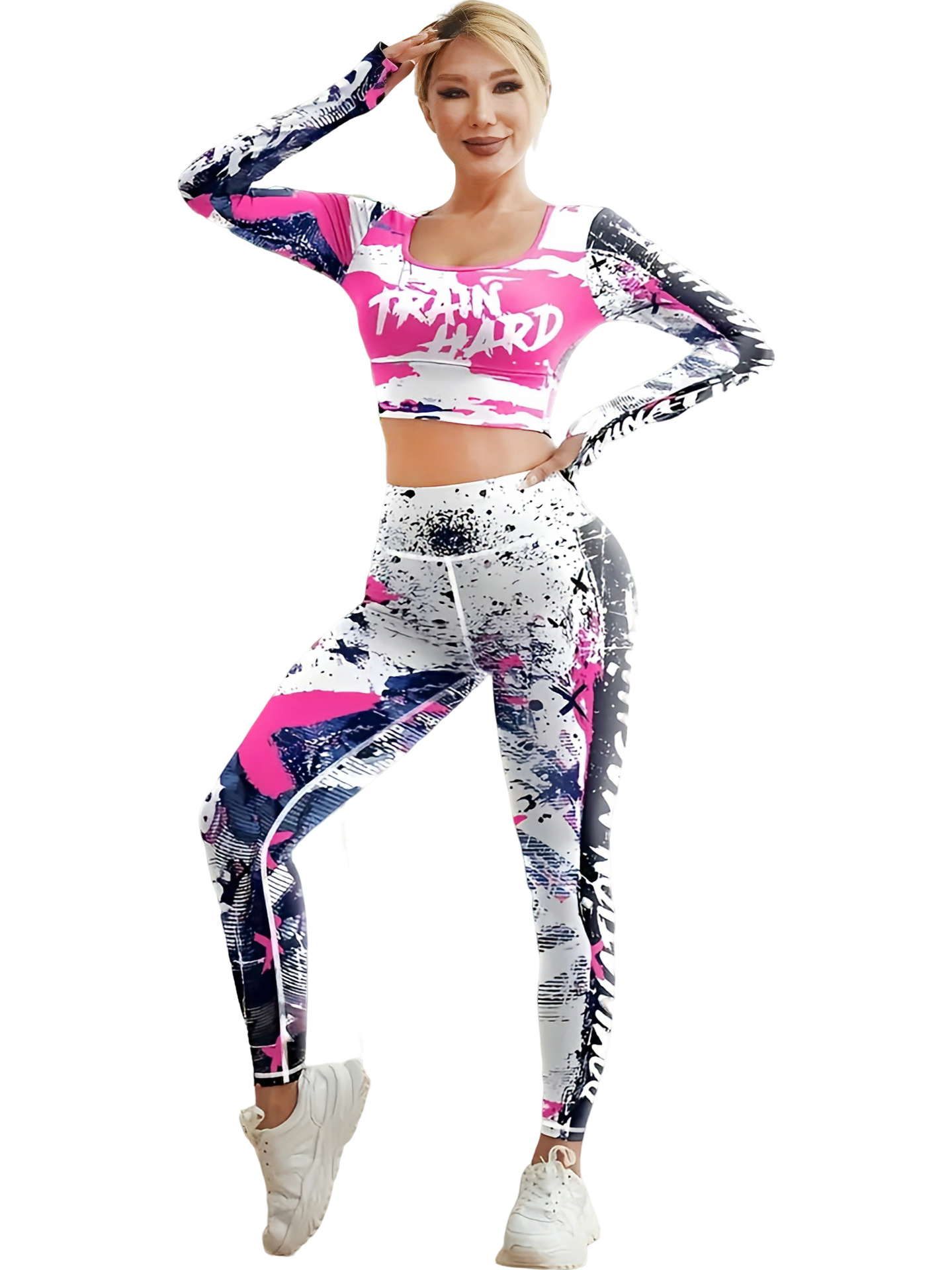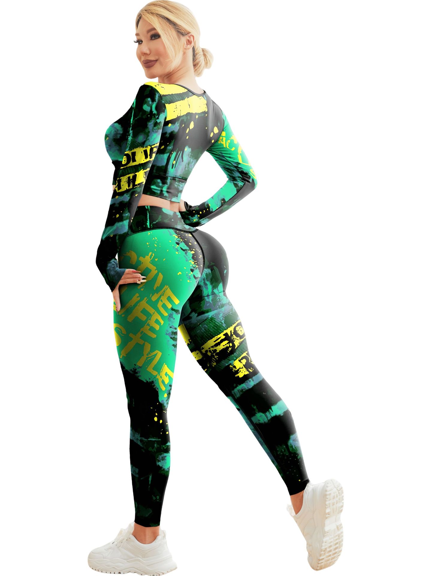 국경 간 새로운 유럽과 미국의 인쇄 요가 세트 편안한 힙합 야외 스포츠 피트니스 달리기 승마 요가 세트