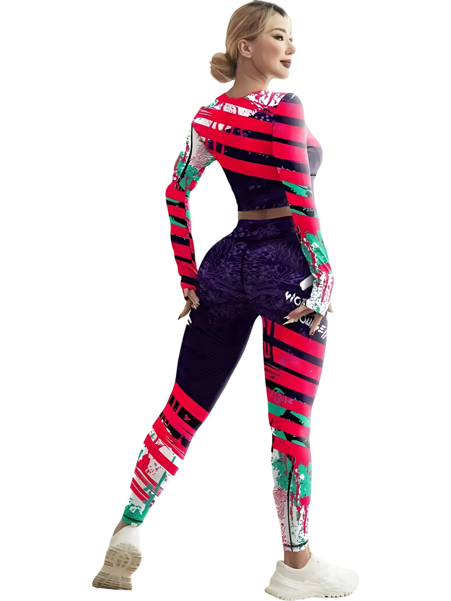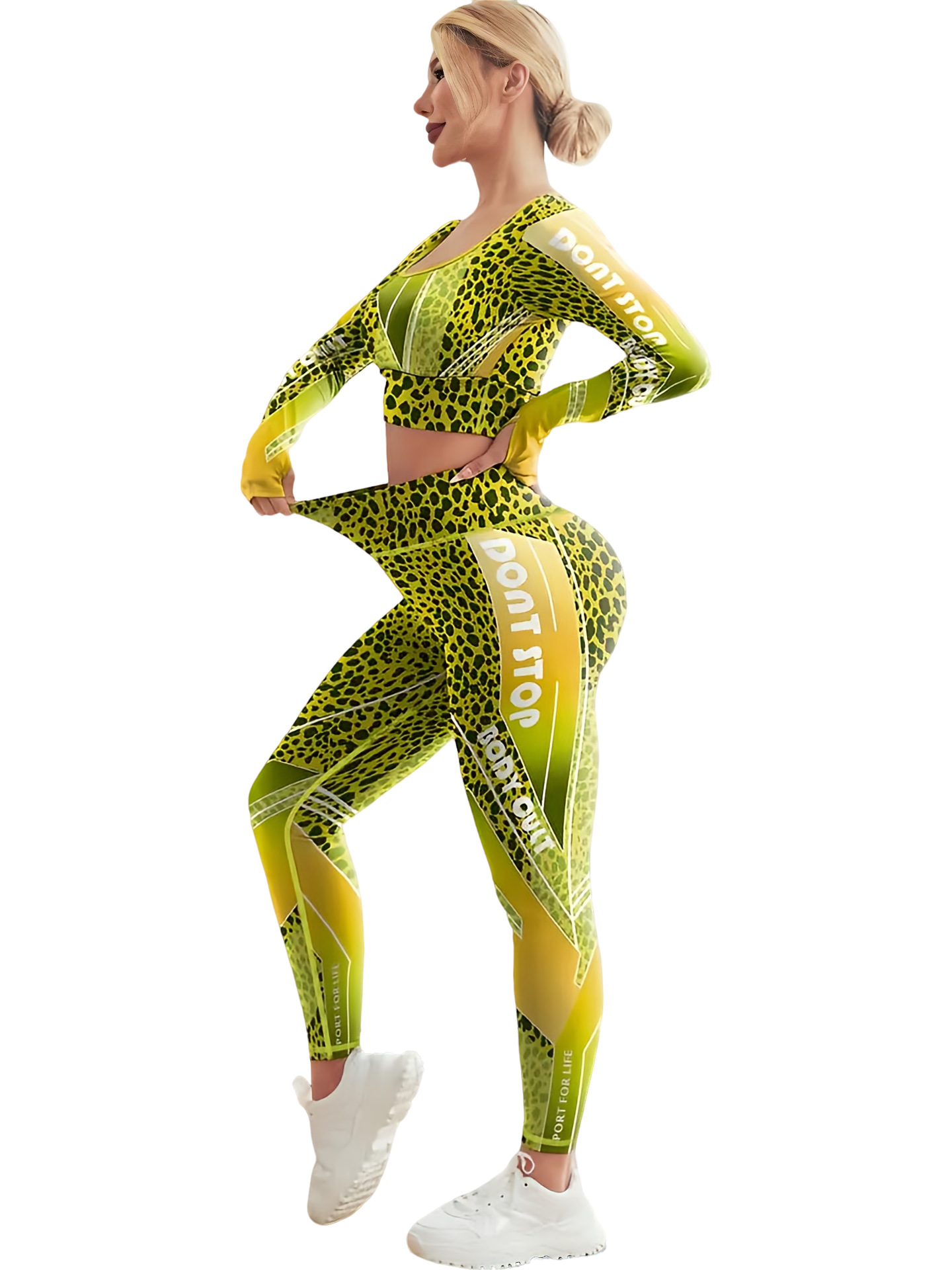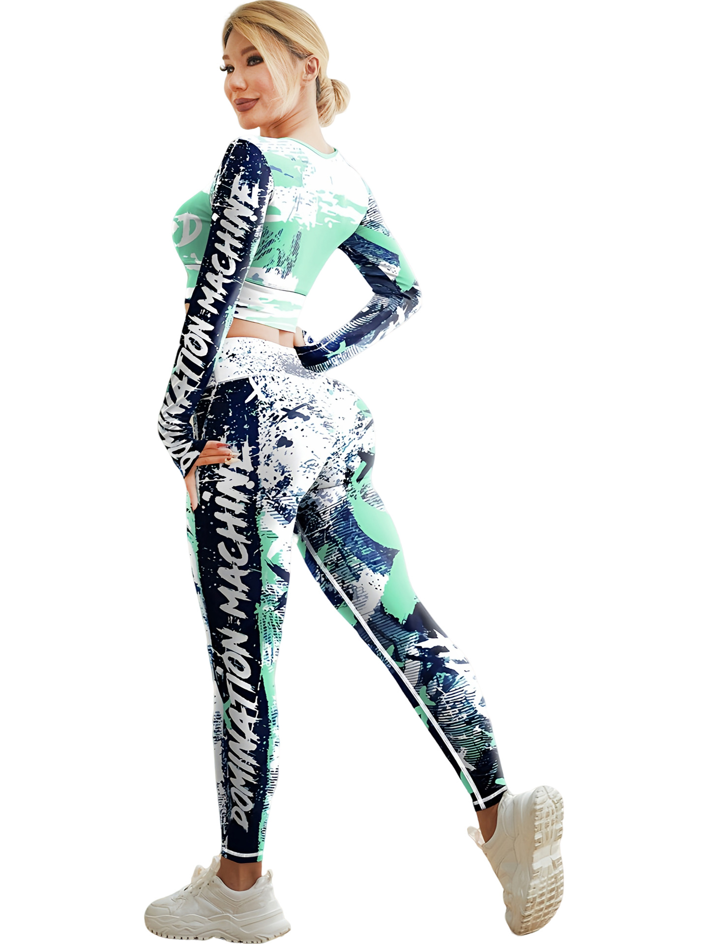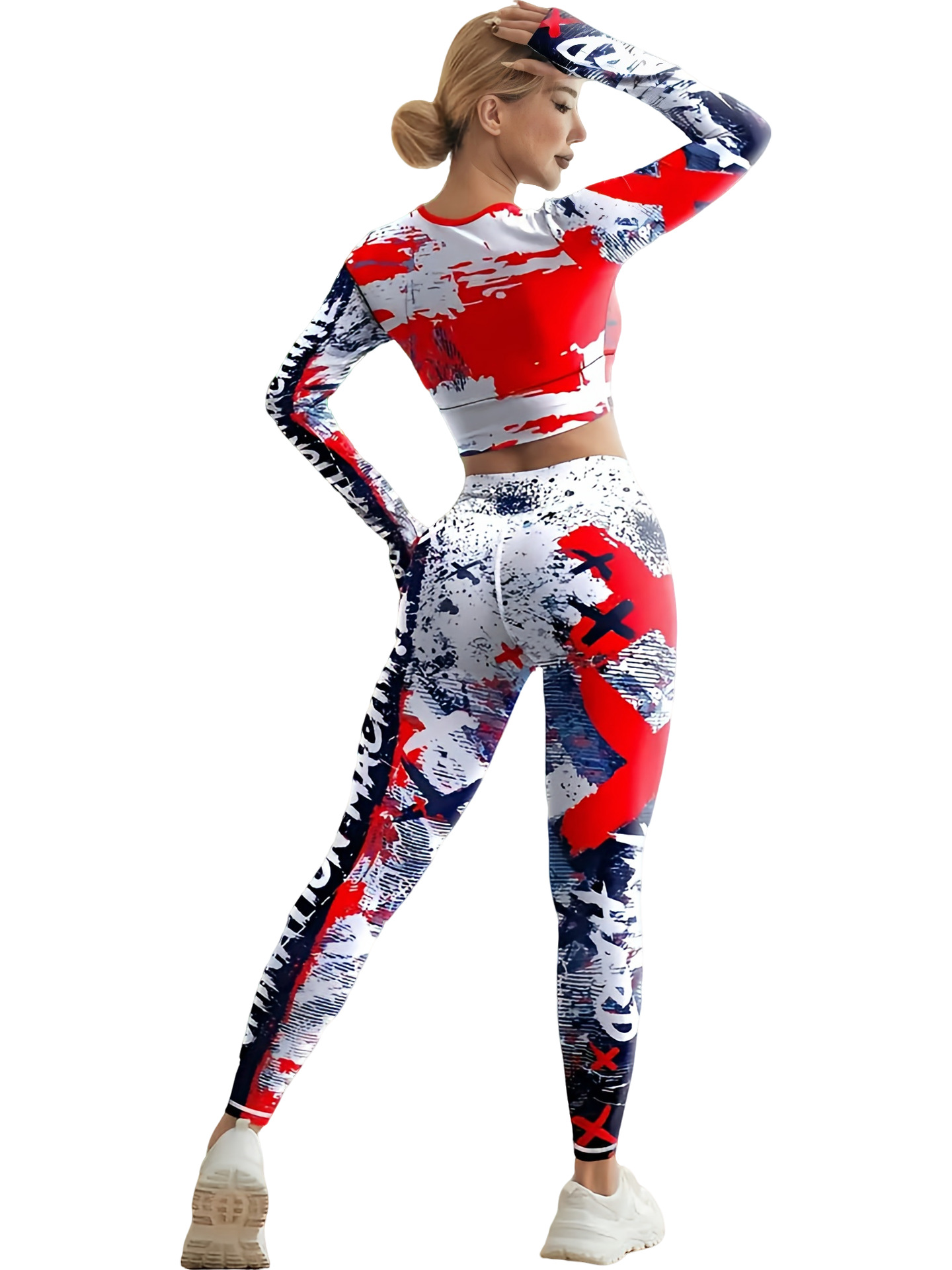 국경 간 새로운 유럽과 미국의 인쇄 요가 세트 편안한 힙합 야외 스포츠 피트니스 달리기 승마 요가 세트