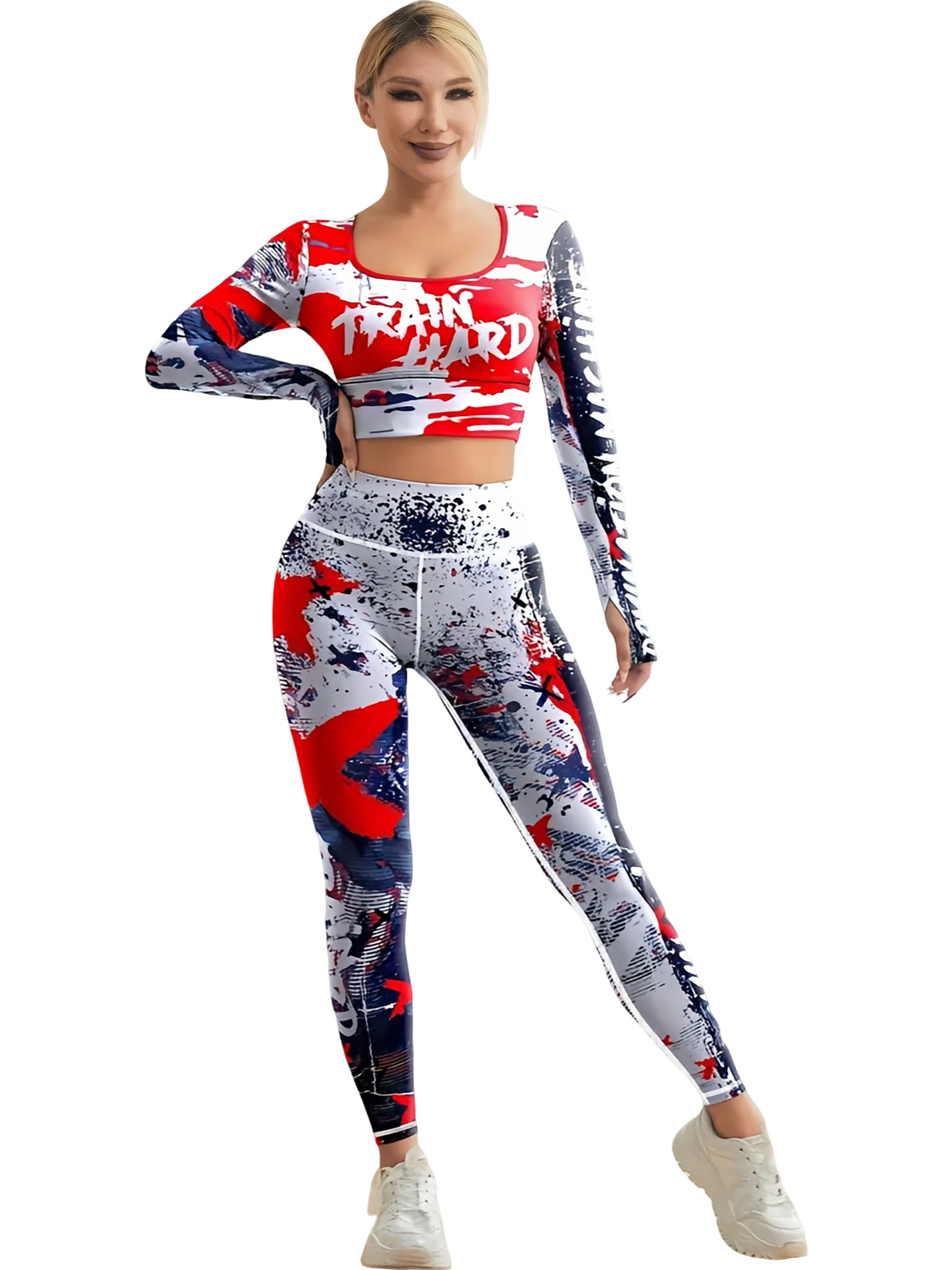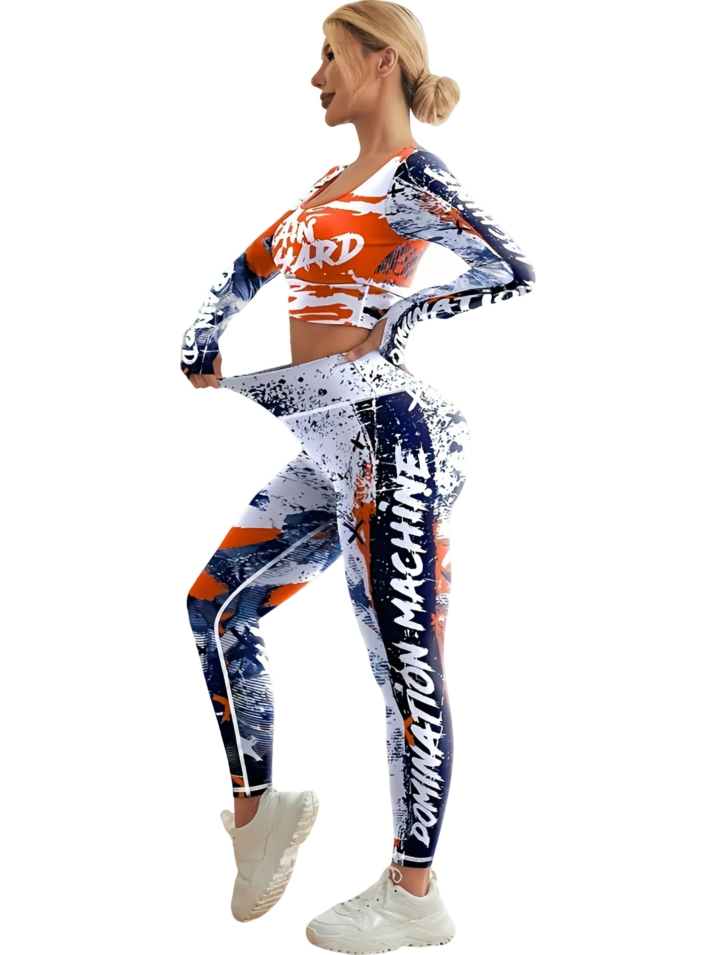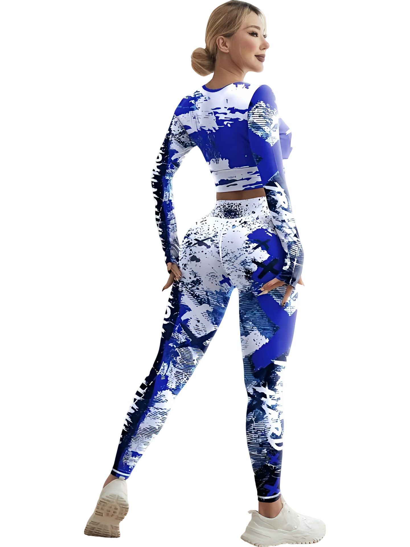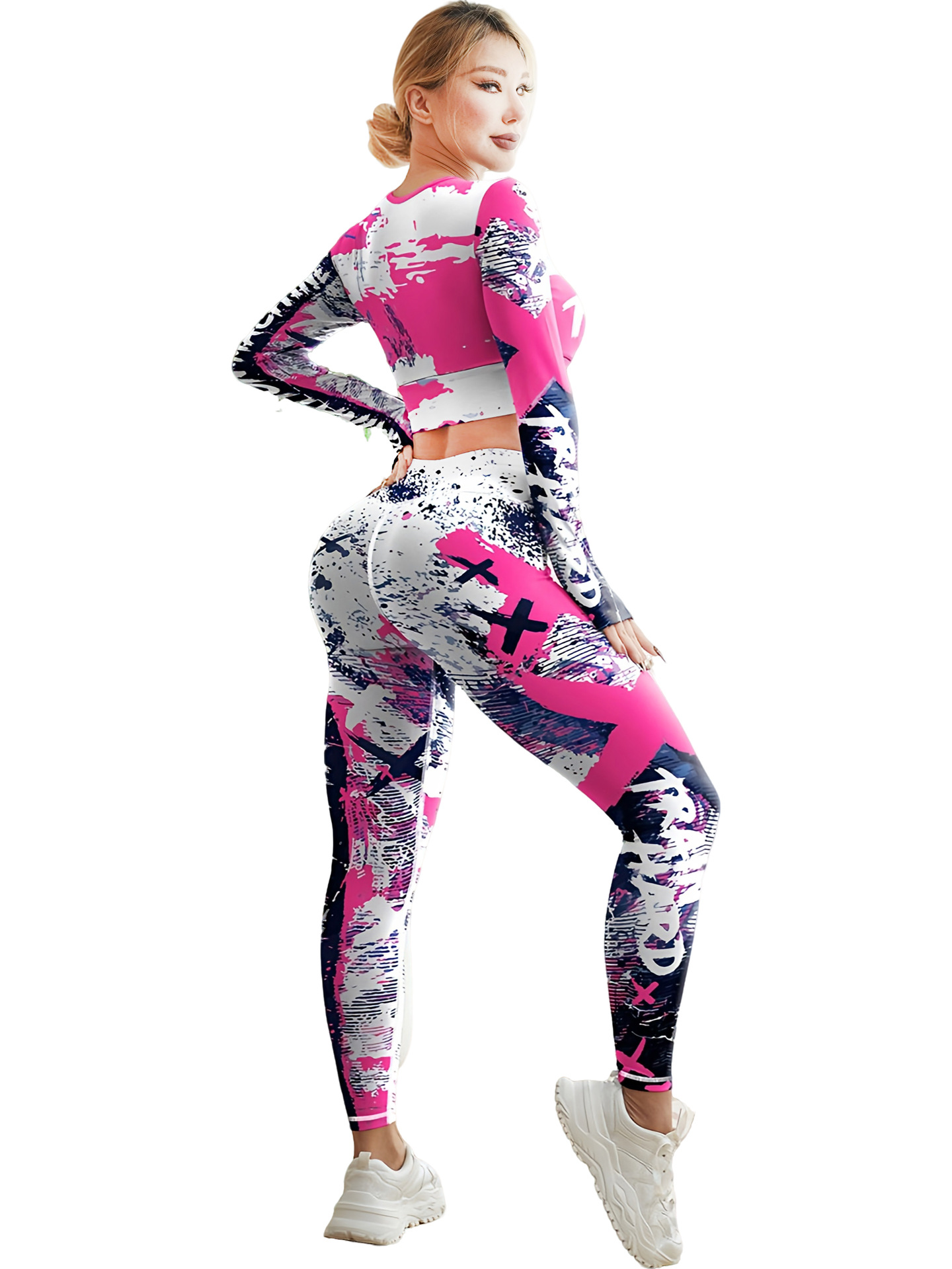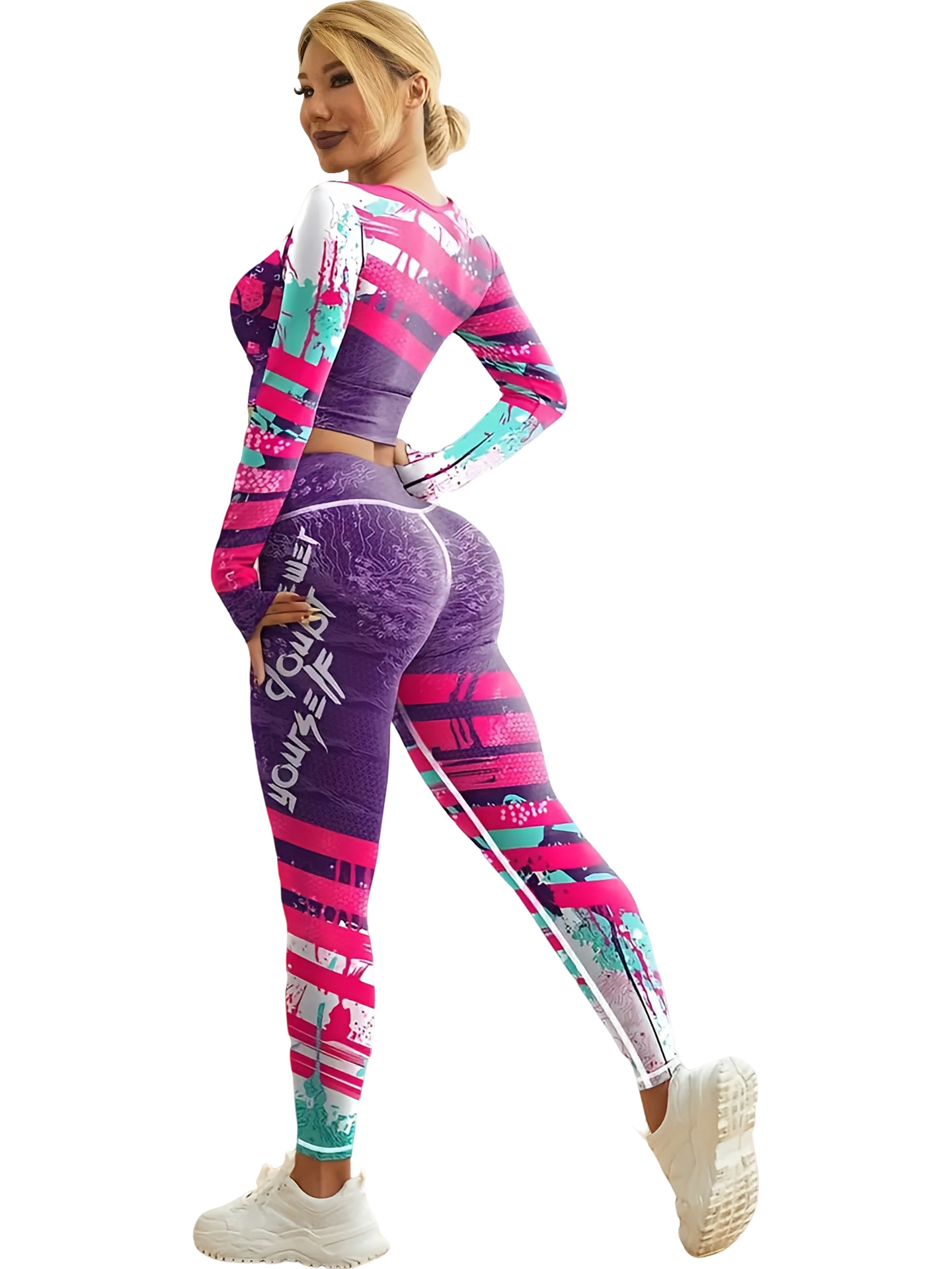 국경 간 새로운 유럽과 미국의 인쇄 요가 세트 편안한 힙합 야외 스포츠 피트니스 달리기 승마 요가 세트