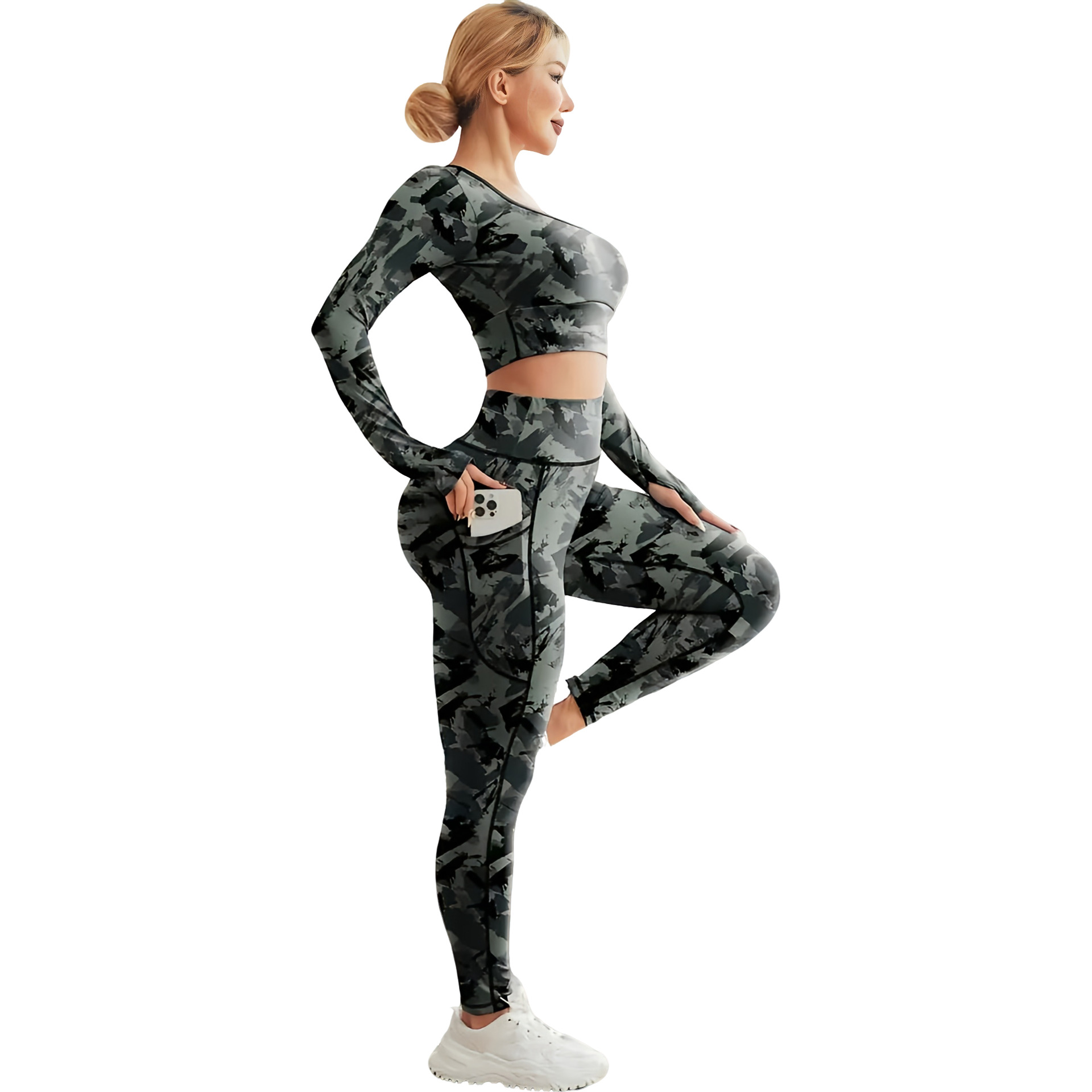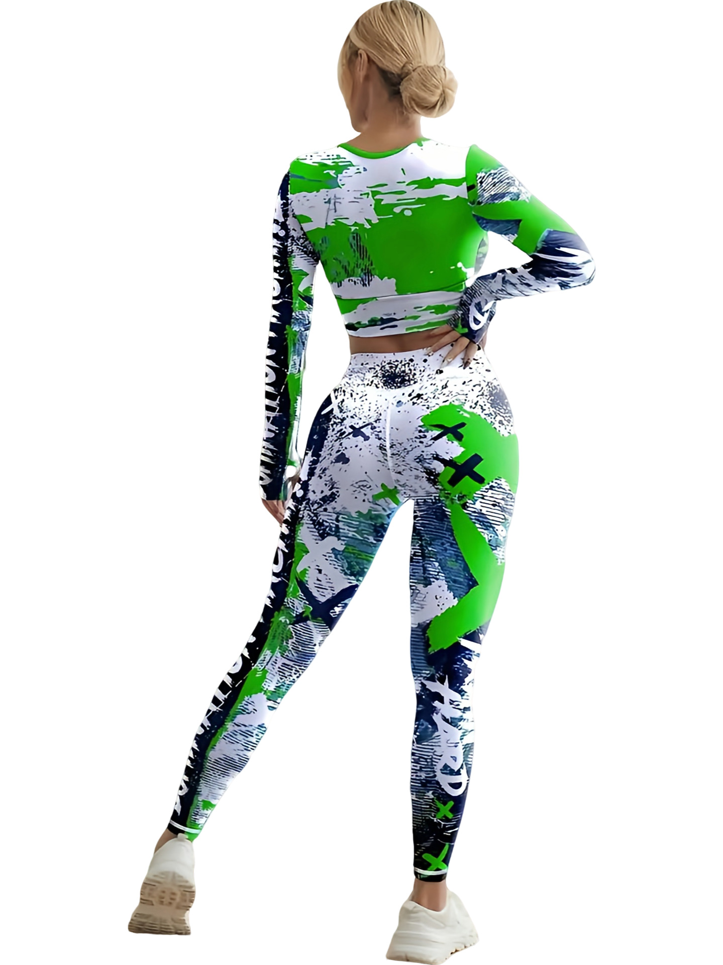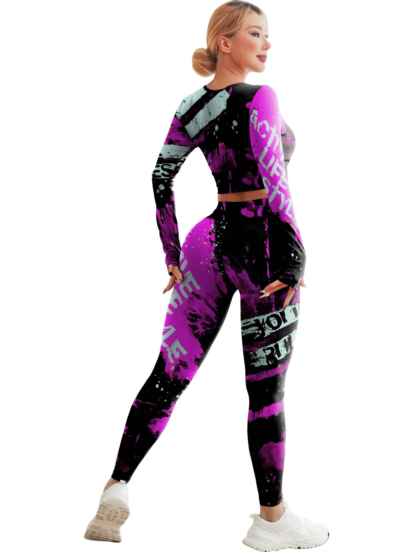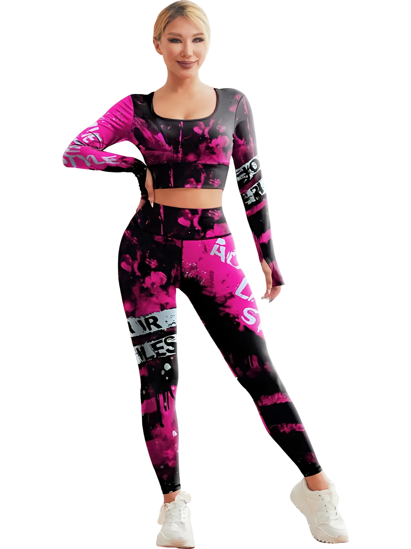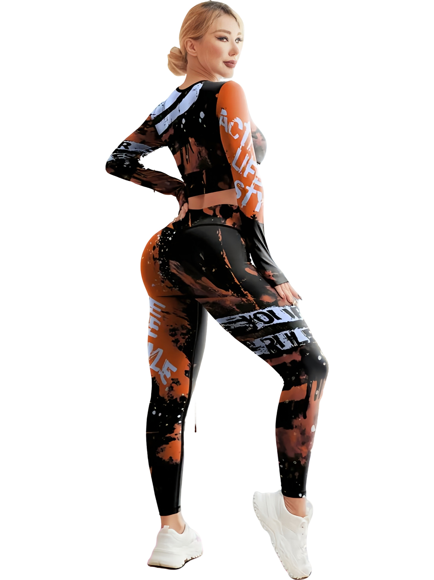 국경 간 새로운 유럽과 미국의 인쇄 요가 세트 편안한 힙합 야외 스포츠 피트니스 달리기 승마 요가 세트