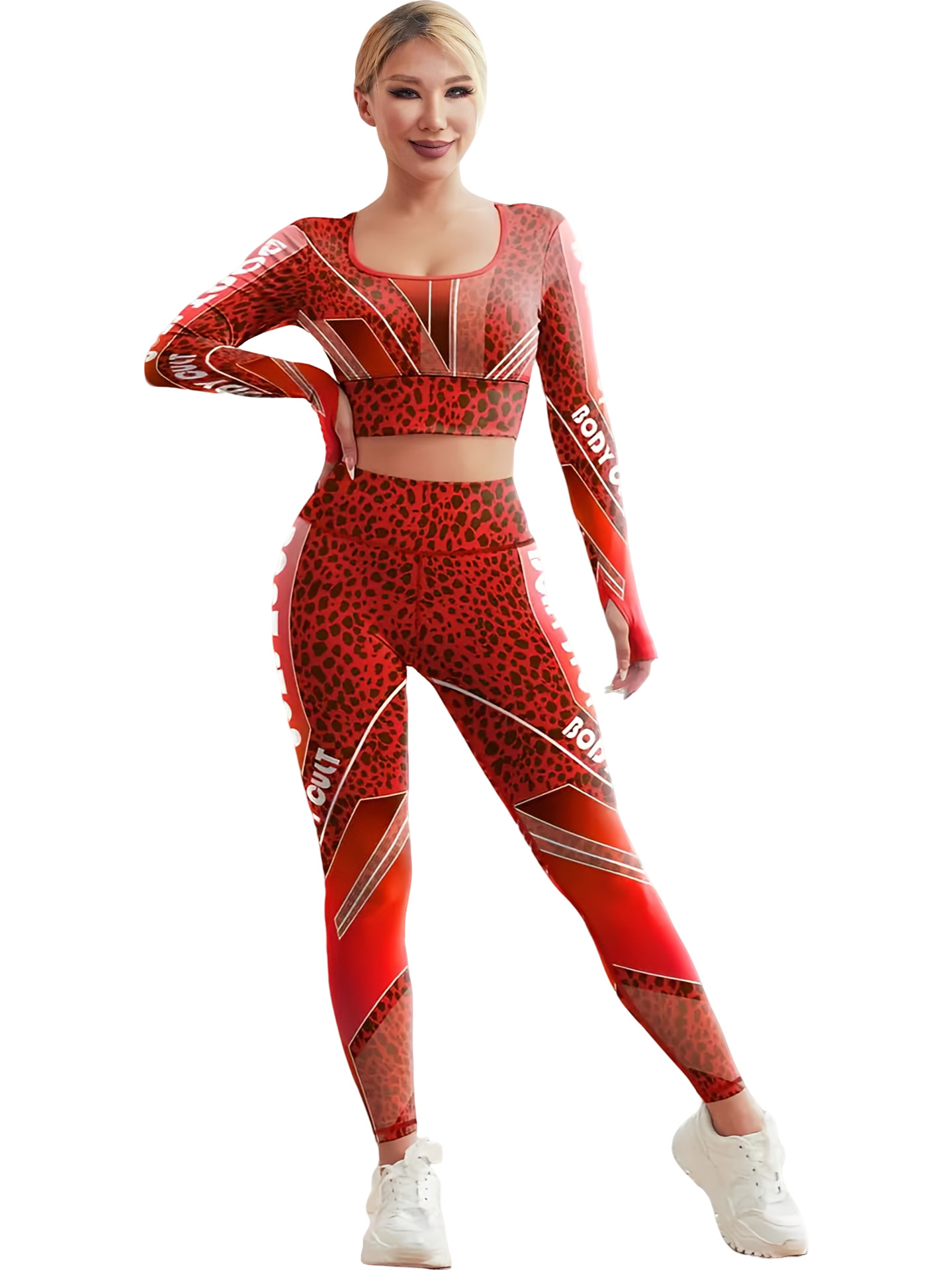 • BSCX31 긴팔 슈트 레오파드 프린트 레드
