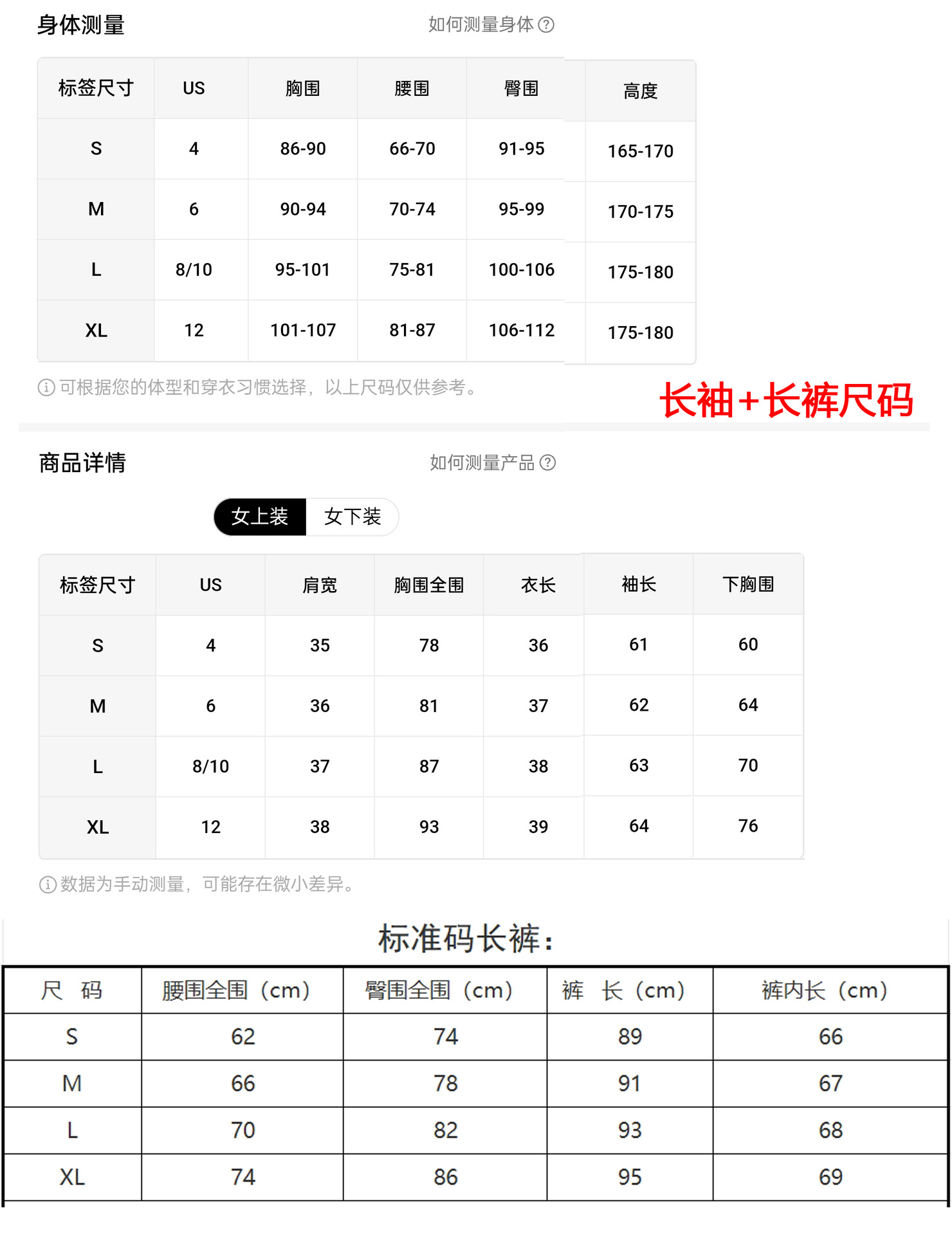 七分裤尺码表