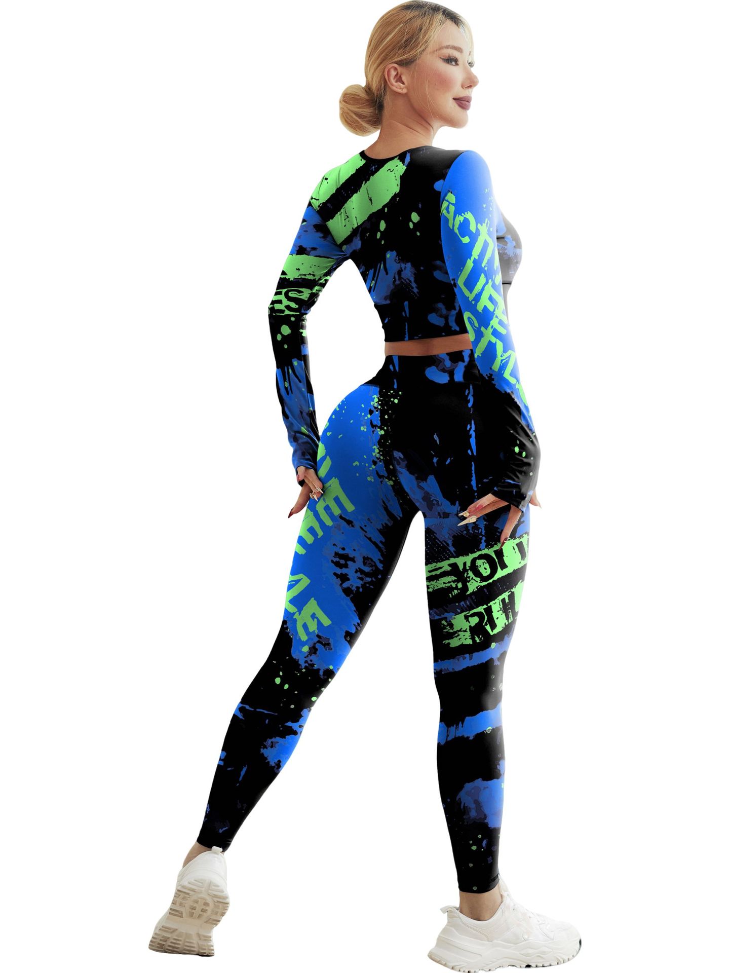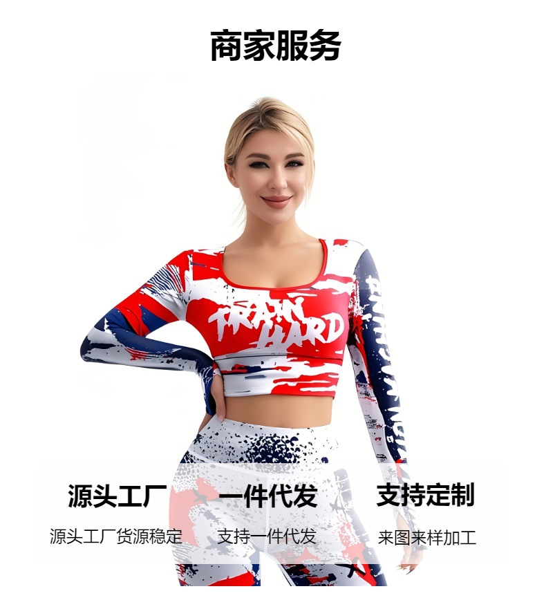 국경 간 새로운 유럽과 미국의 인쇄 요가 세트 편안한 힙합 야외 스포츠 피트니스 달리기 승마 요가 세트스토어 가기