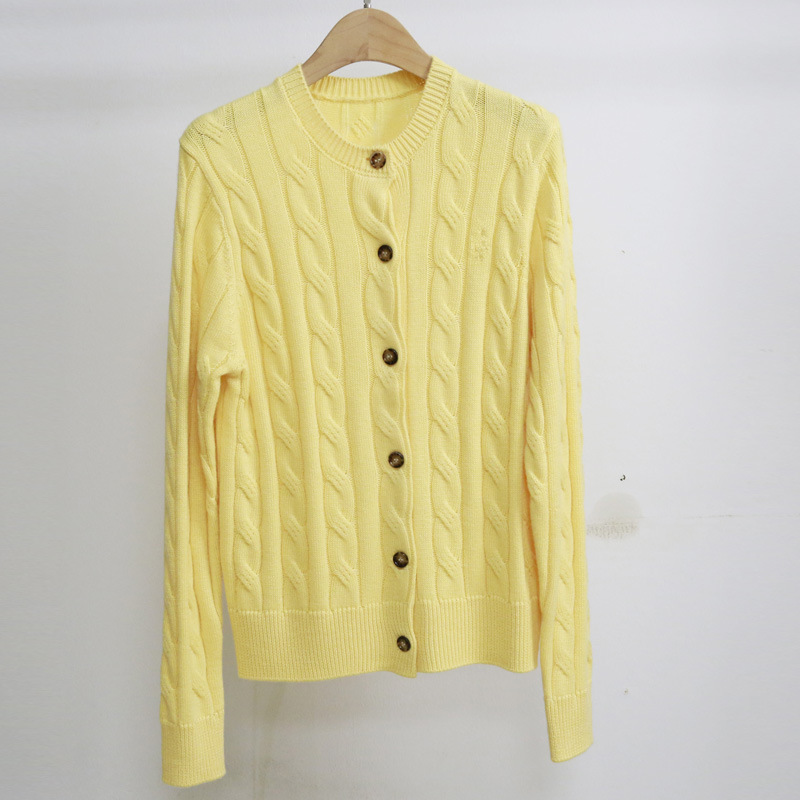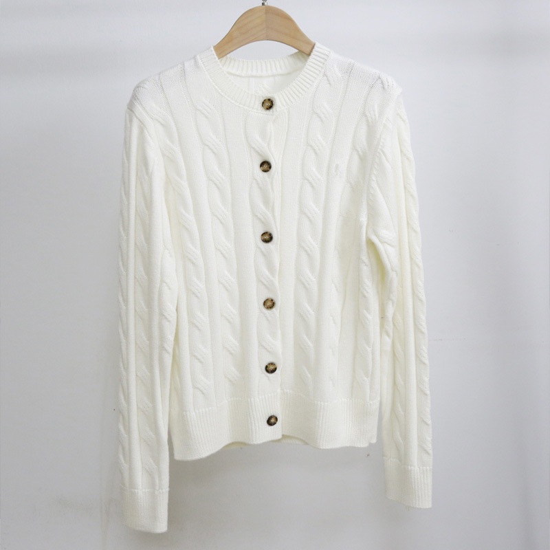 Rl Raf 자수 트위스트 크루 넥 스웨터 여성 카디건 우아한 통근 울 니트 여성용 짧은 두꺼운 재킷스토어 가기