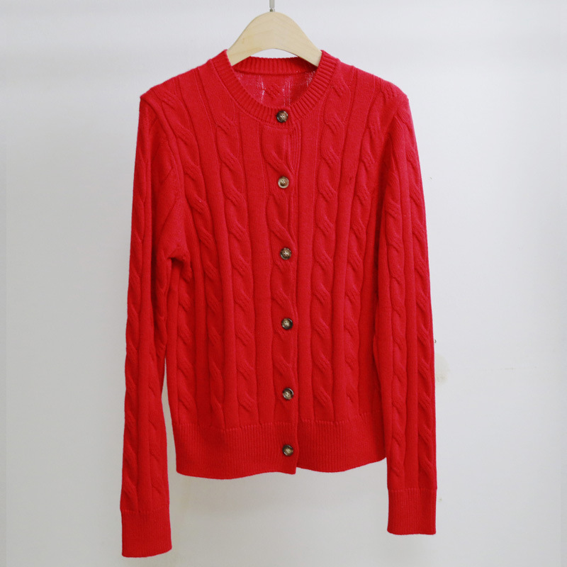 Rl Raf 자수 트위스트 크루 넥 스웨터 여성 카디건 우아한 통근 울 니트 여성용 짧은 두꺼운 재킷