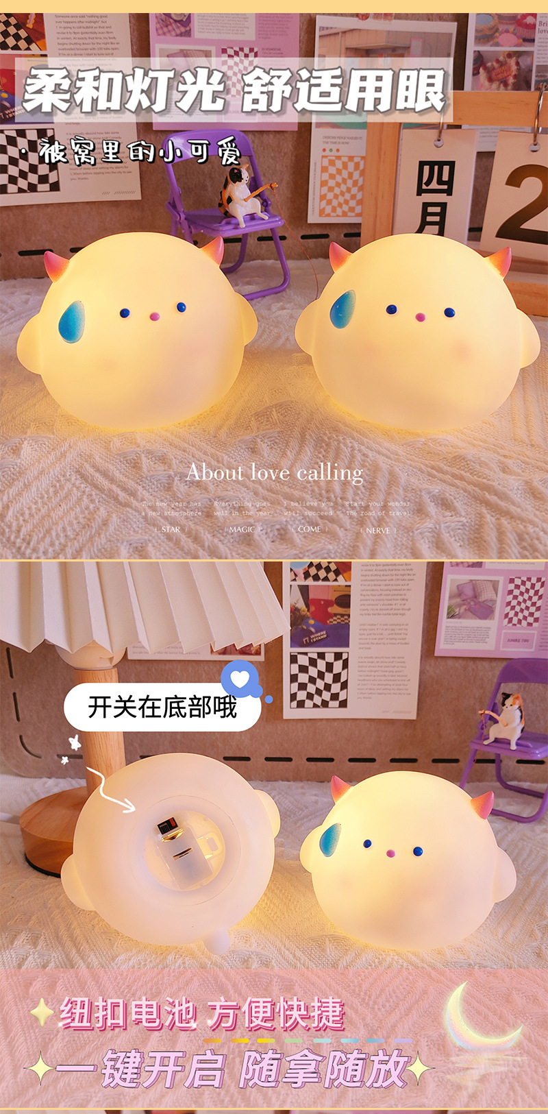 만화 괴물 야간 조명 생일 선물 테이블 램프 데스크탑 장식품 침대 옆 램프 분위기 조명 LED 램프 미니