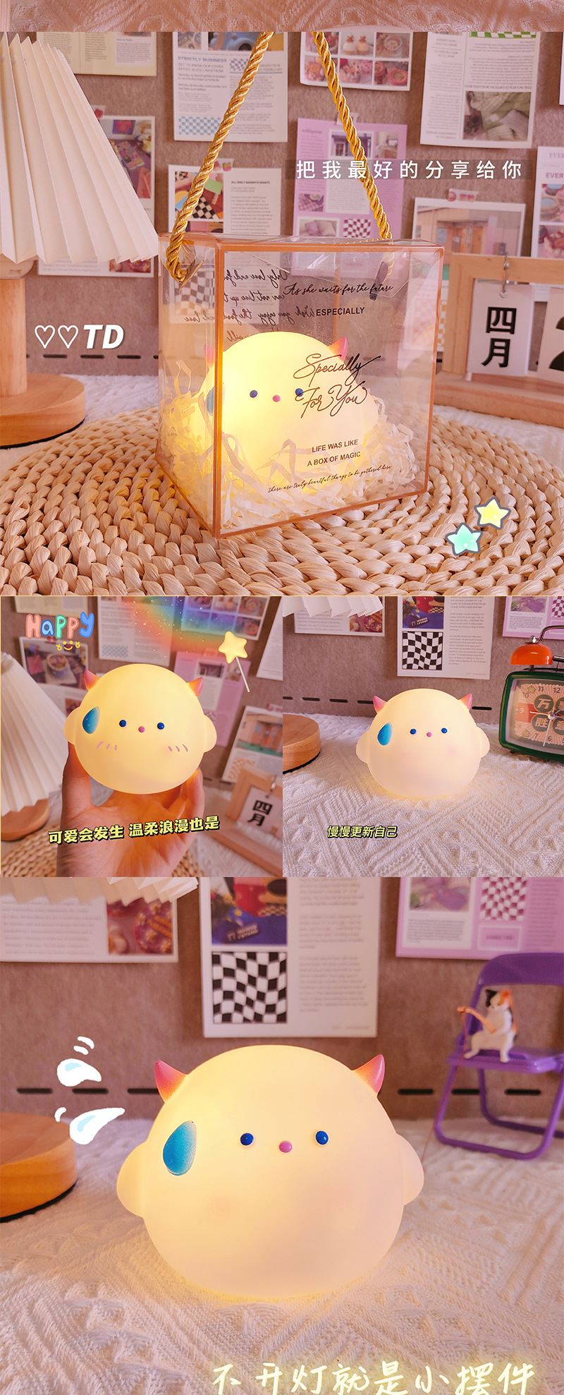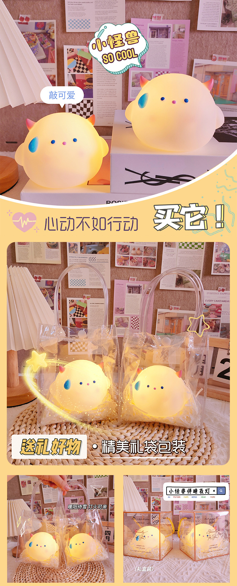 만화 괴물 야간 조명 생일 선물 테이블 램프 데스크탑 장식품 침대 옆 램프 분위기 조명 LED 램프 미니스토어 가기