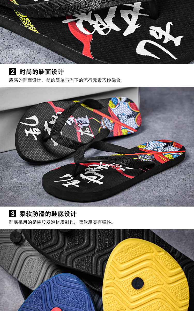 독특한 플립 플롭 남자 해변 트렌디 비치 여름 플립 플롭 소셜 트렌디 미끄럼 방지 샌들 한국 스타일