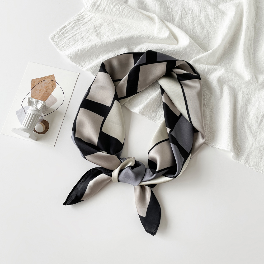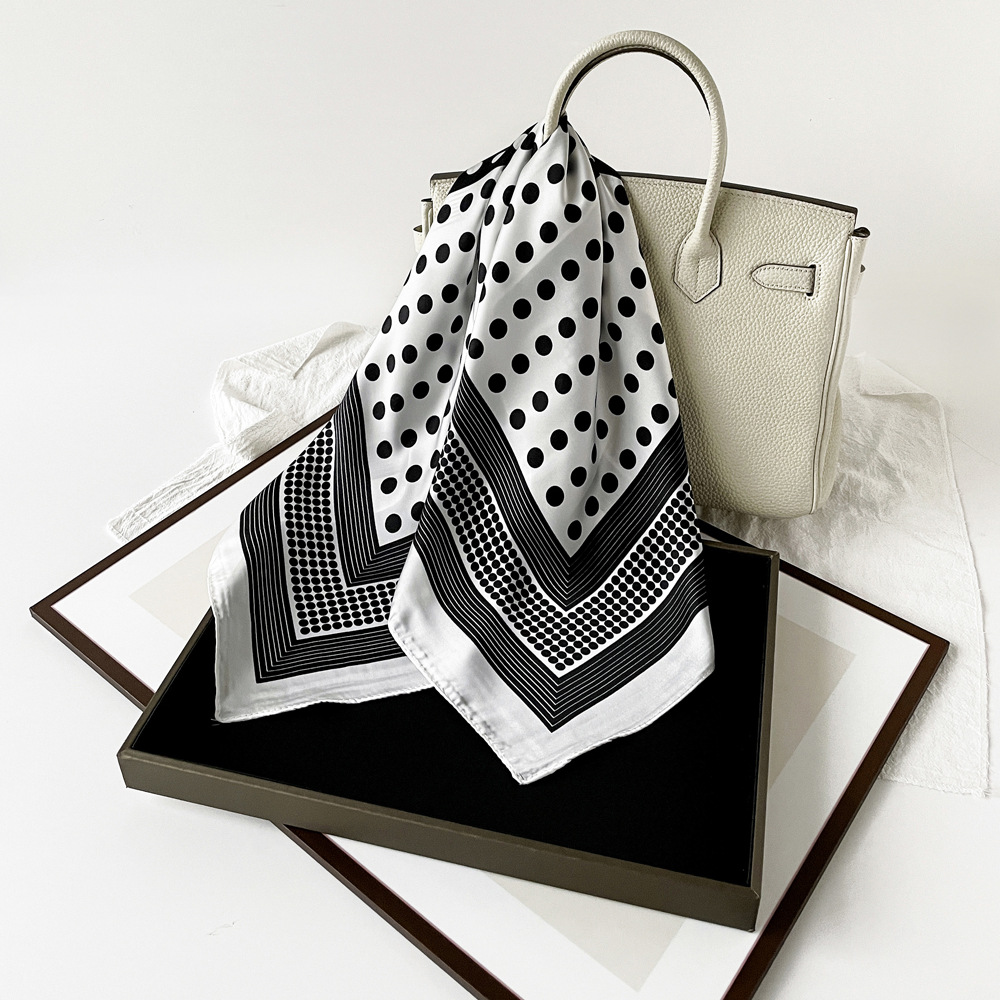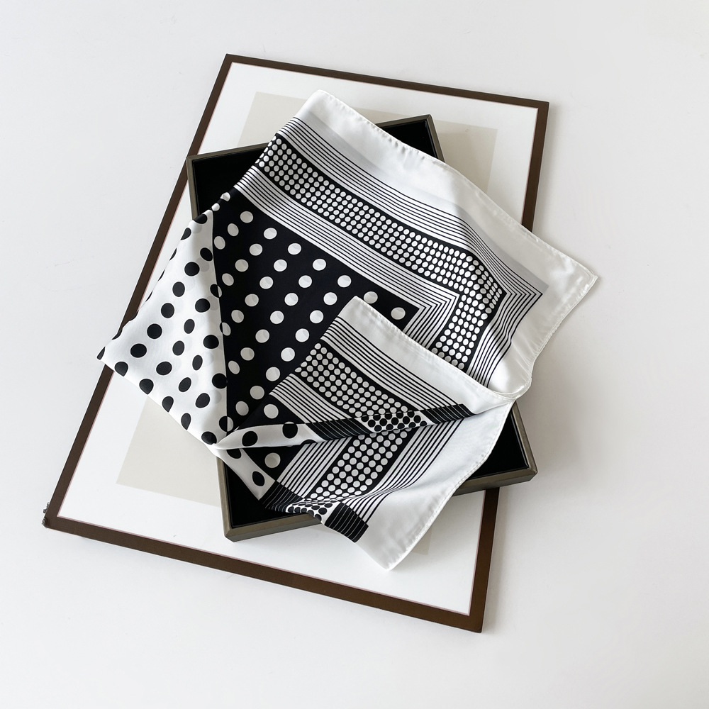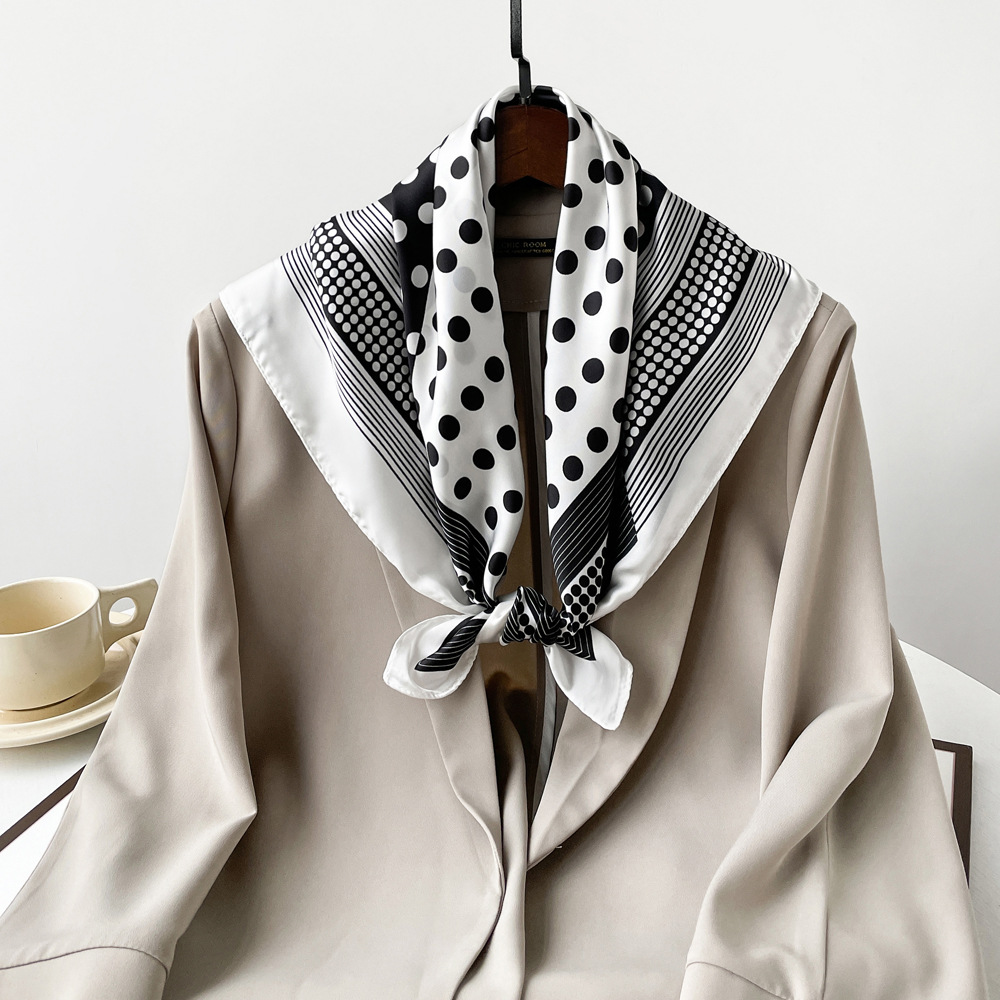 동대문 새 사틴 모조 실크 폴로 도트 스카프 여성의 인쇄 간단한 고급 흑백 스타일 얇은 광장 스카프스토어 가기