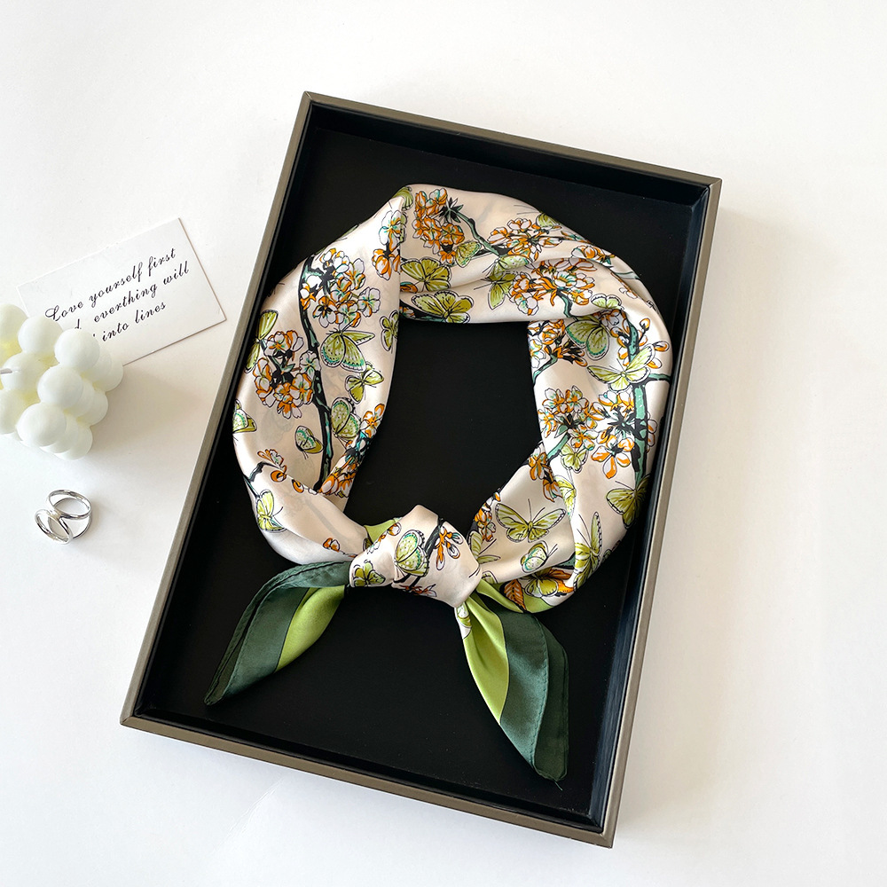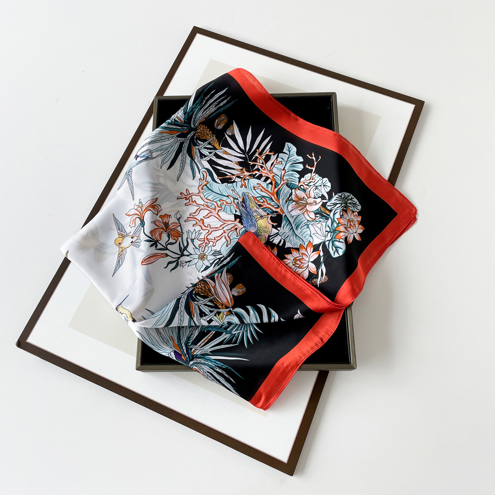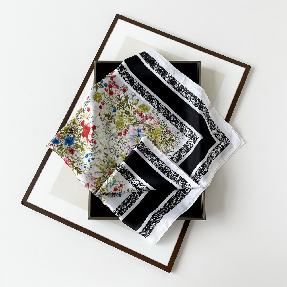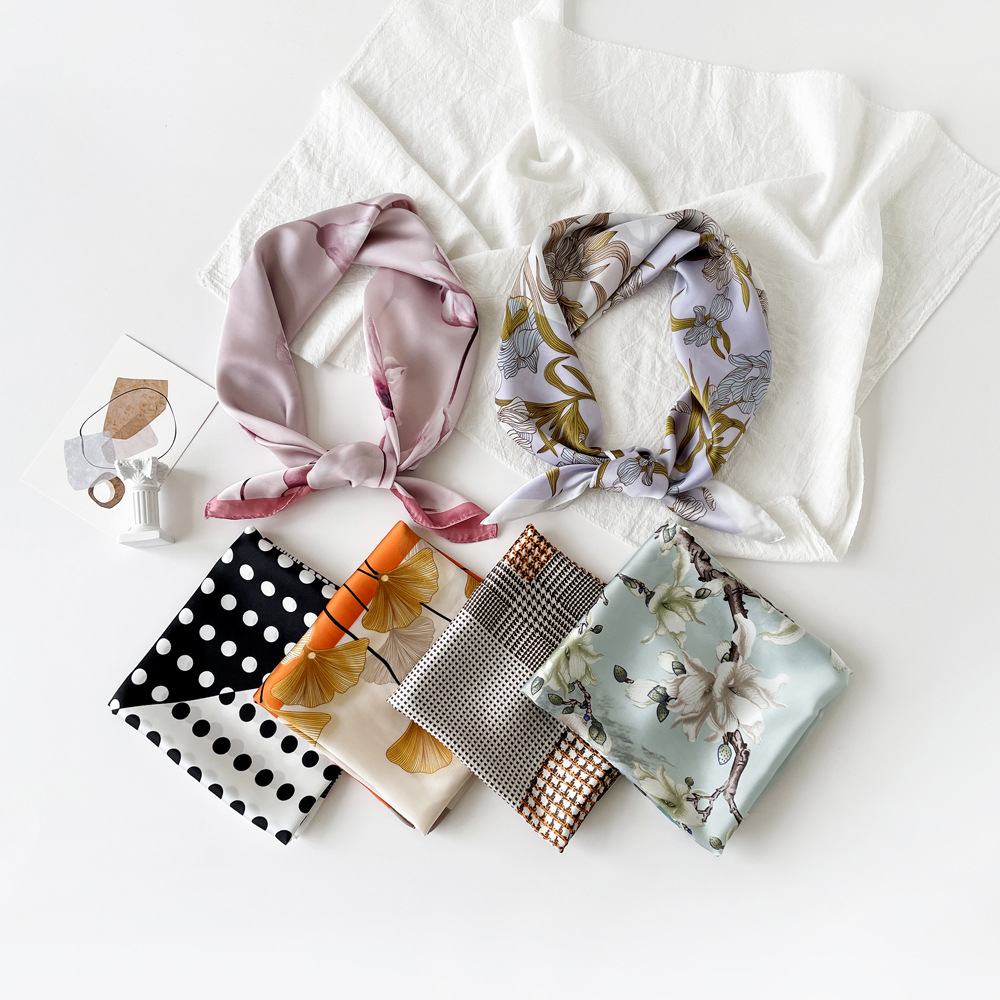 동대문 새 사틴 모조 실크 폴로 도트 스카프 여성의 인쇄 간단한 고급 흑백 스타일 얇은 광장 스카프스토어 가기