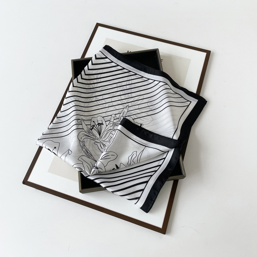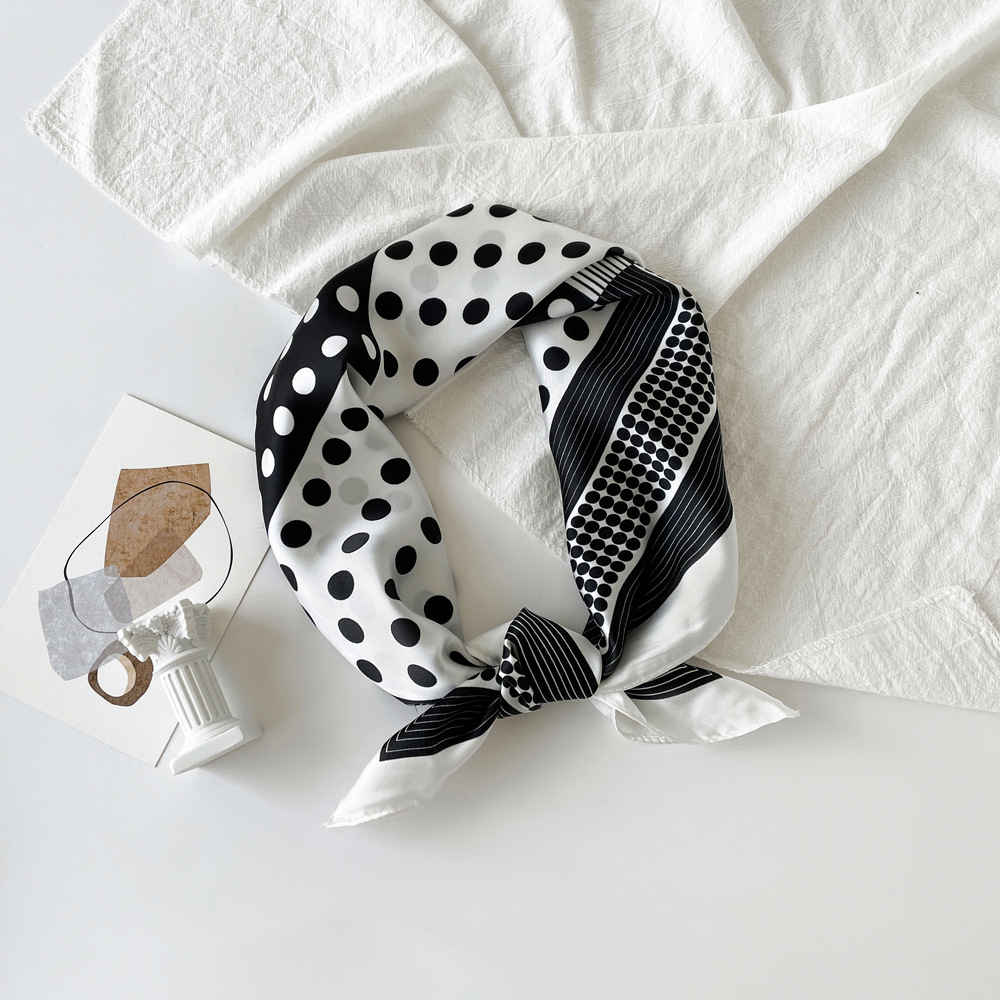 동대문 새 사틴 모조 실크 폴로 도트 스카프 여성의 인쇄 간단한 고급 흑백 스타일 얇은 광장 스카프