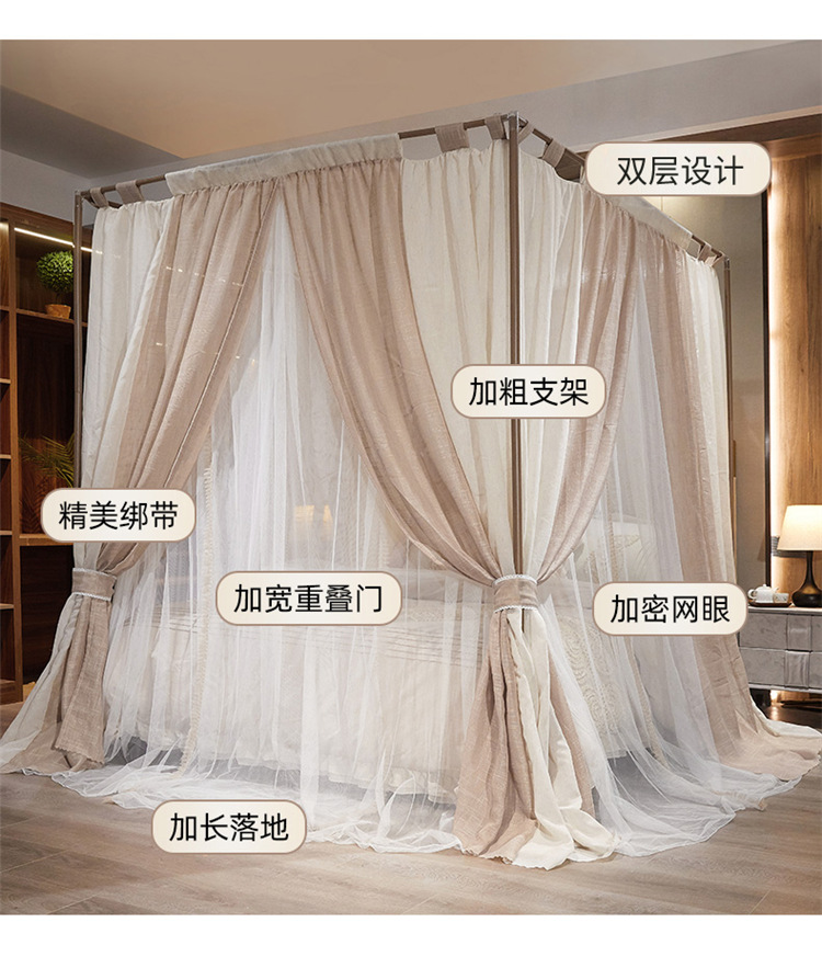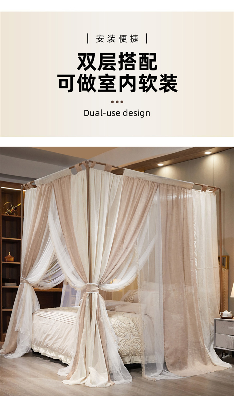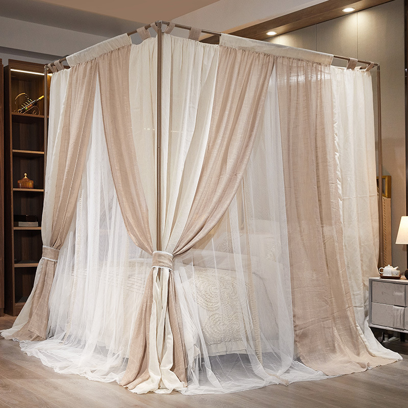 프랑스 더블 레이어 모기장 야마 컬러 블록 홈스테이 홈 음영 침대 커튼 1.8 더블 침대 공주 스타일 침대 커튼스토어 가기