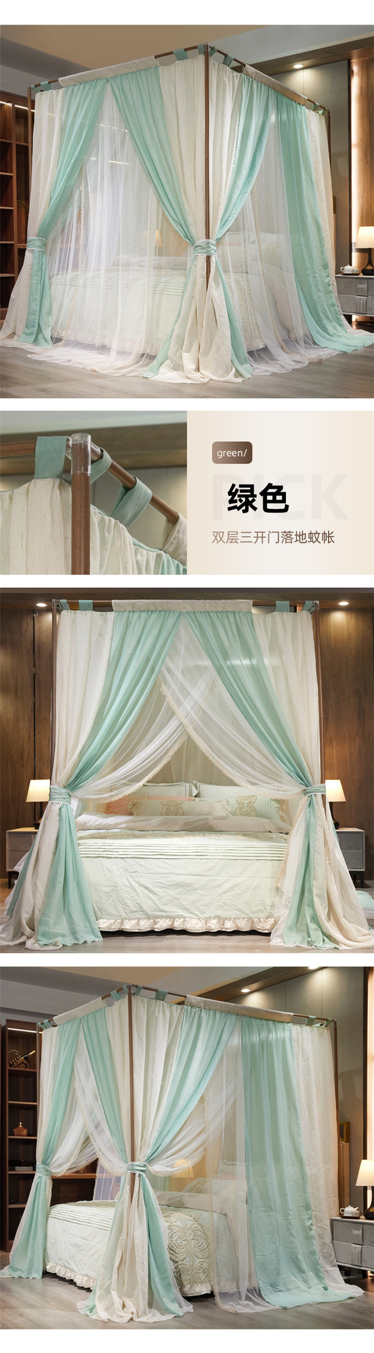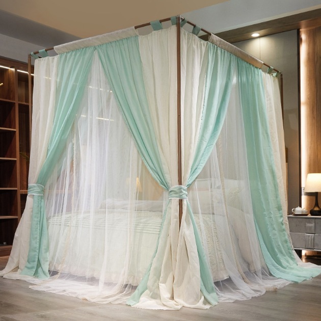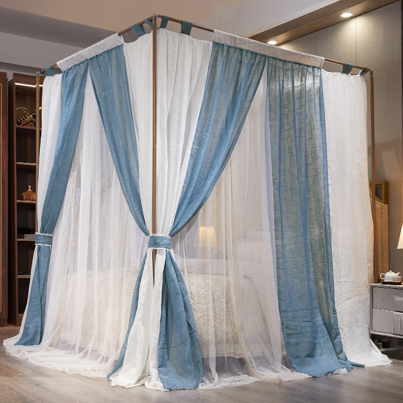 프랑스 더블 레이어 모기장 야마 컬러 블록 홈스테이 홈 음영 침대 커튼 1.8 더블 침대 공주 스타일 침대 커튼