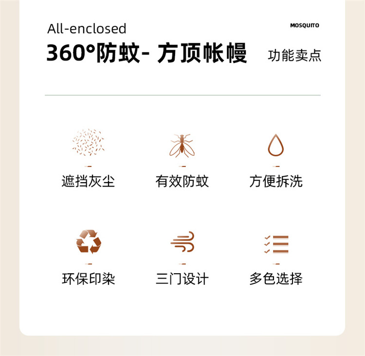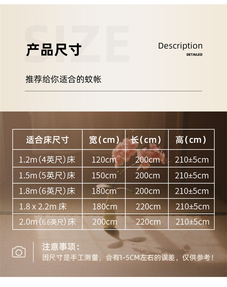 • 180*200cm [브래킷이없는 단일 모기장]]