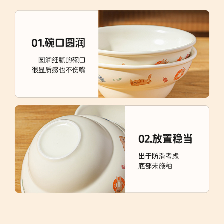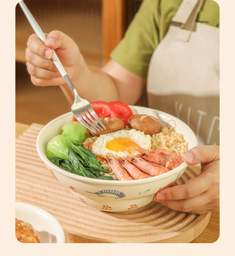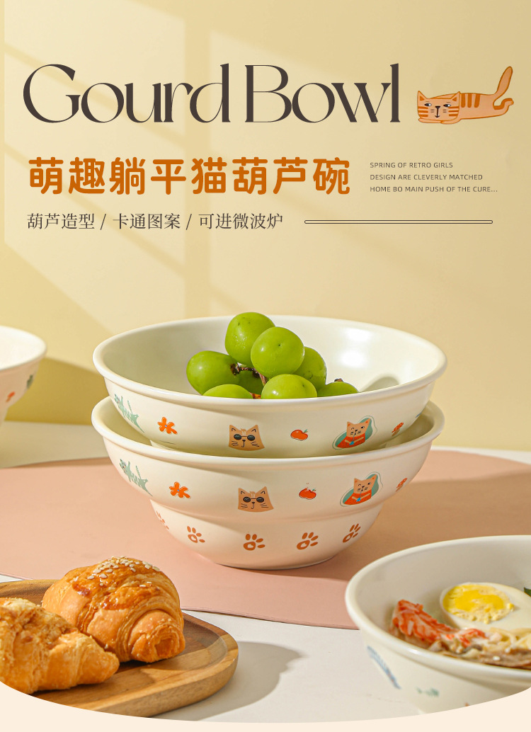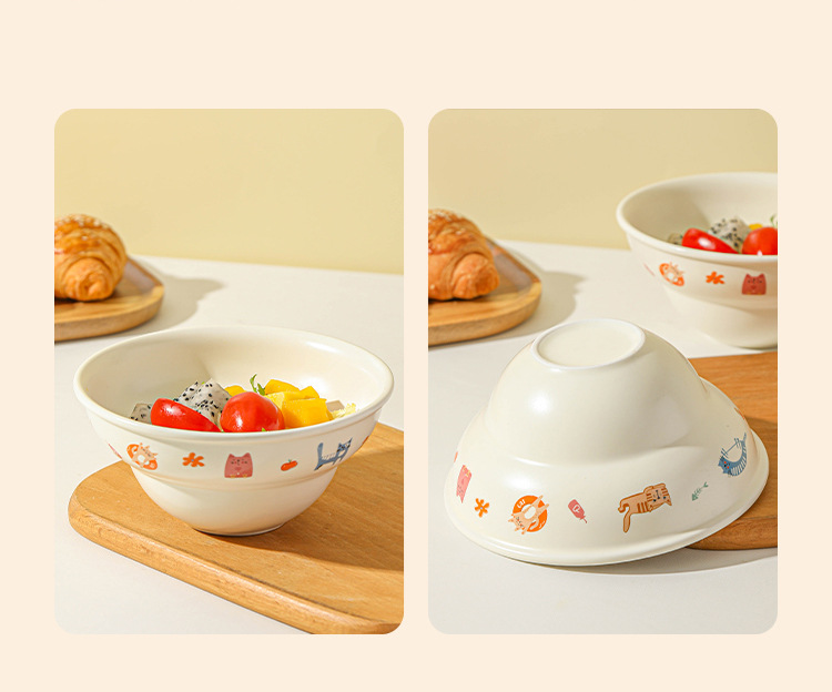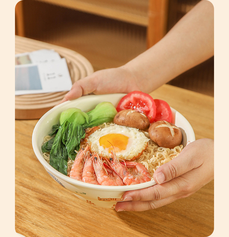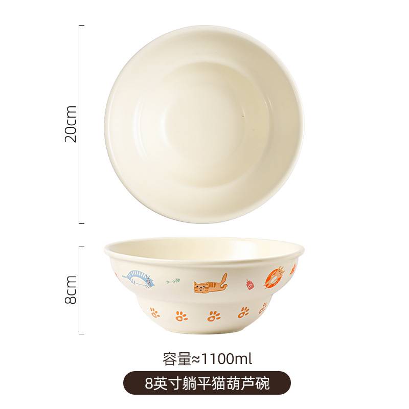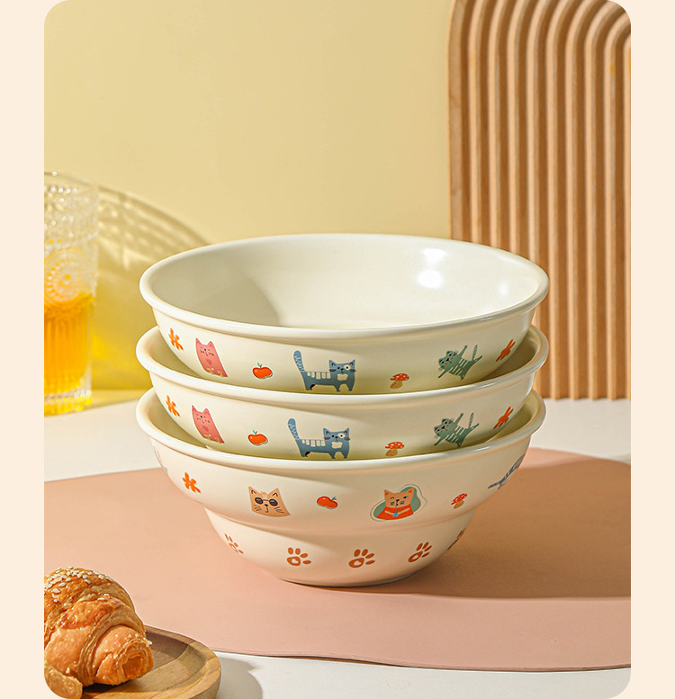 Ins 스타일 귀여운 만화 높은 색상 고양이 매트 세라믹 그릇 드라이 밥 아침 식사 디저트 그릇 국수 그릇 살라 그릇