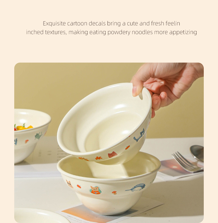 Ins 스타일 귀여운 만화 높은 색상 고양이 매트 세라믹 그릇 드라이 밥 아침 식사 디저트 그릇 국수 그릇 살라 그릇스토어 가기