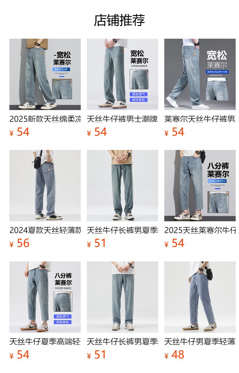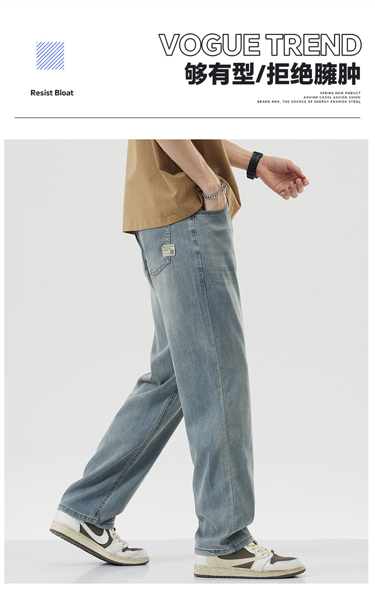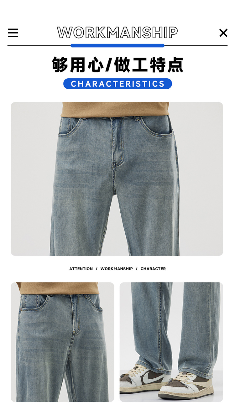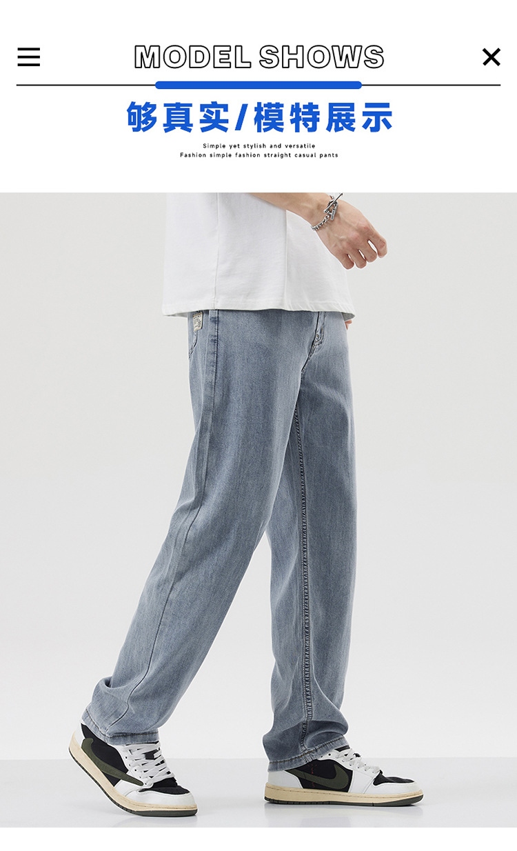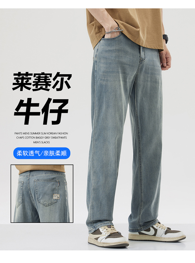 남성용 루즈핏 스트레이트 데님 팬츠 2025 여름 텐셀 경량 소프트 쿨링 고급 트렌디 만능 남성 팬츠스토어 가기
