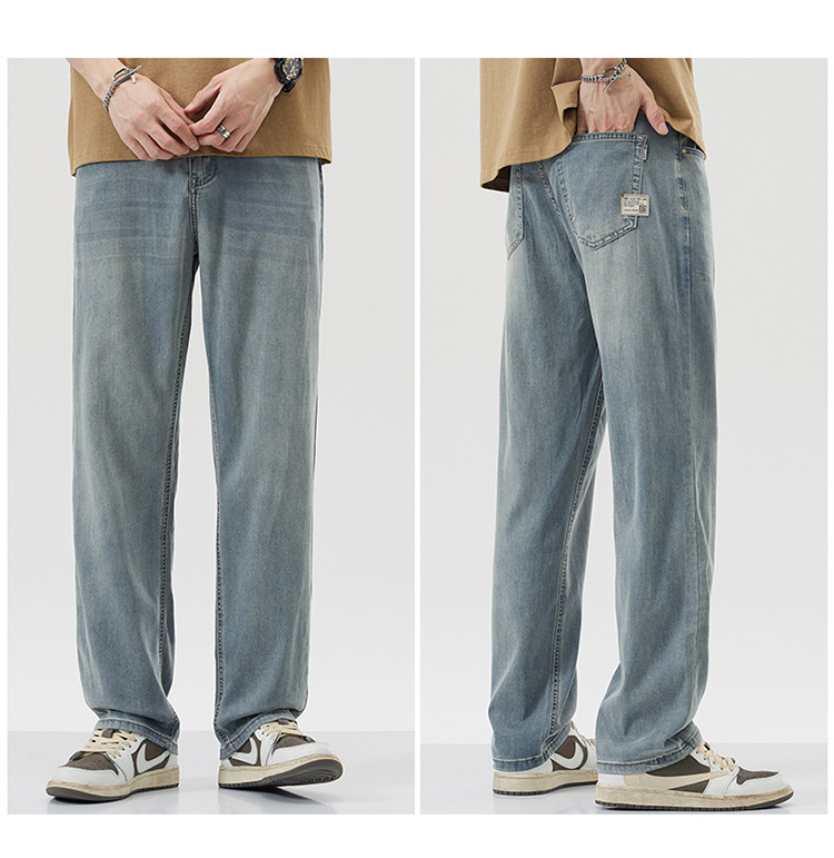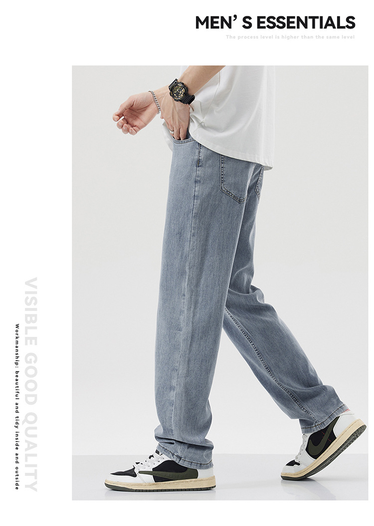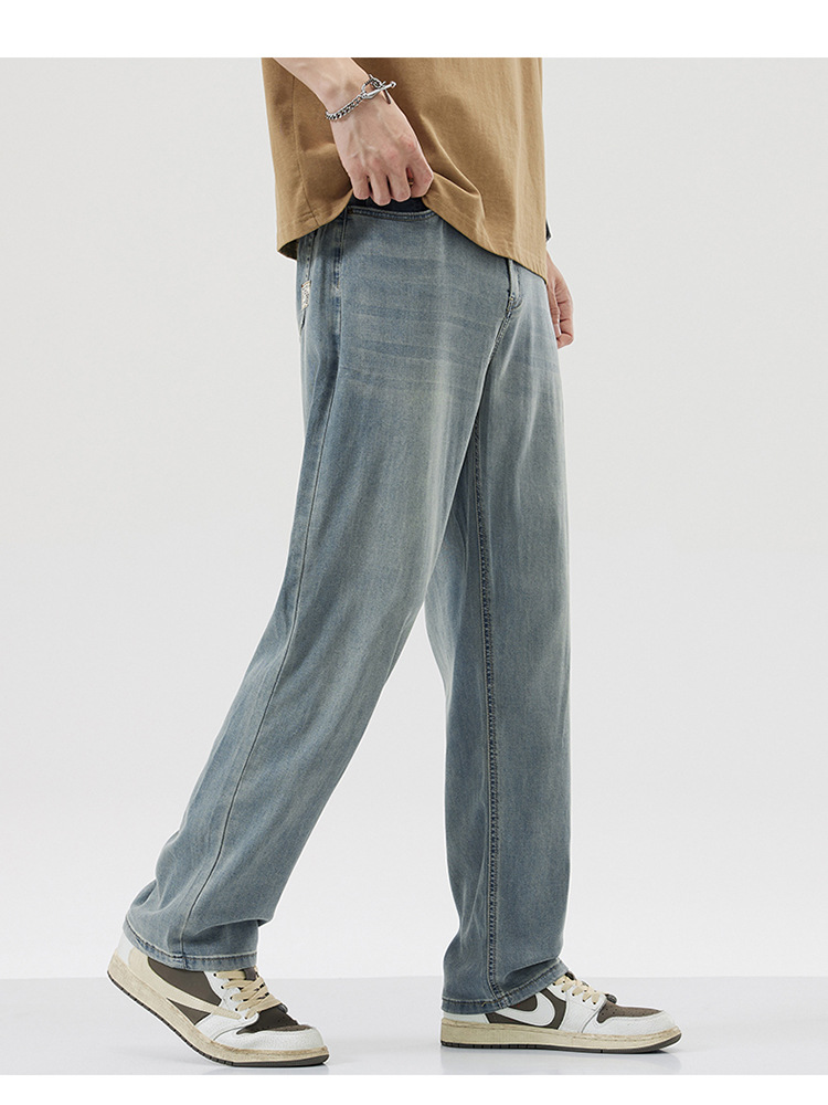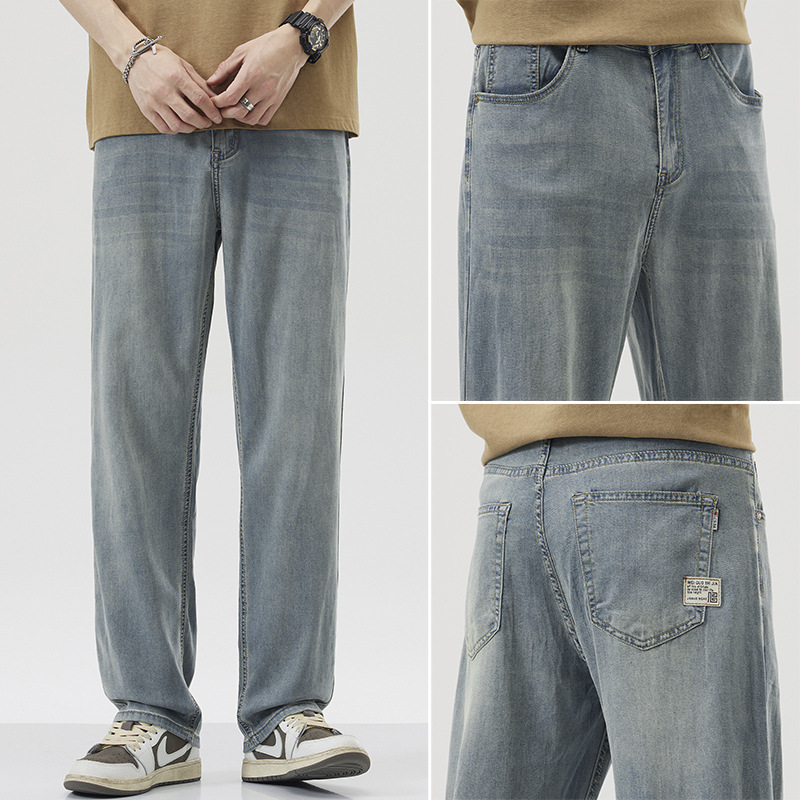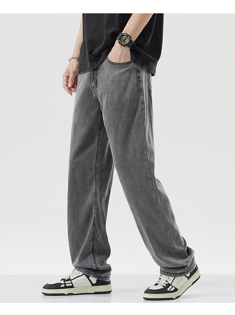남성용 루즈핏 스트레이트 데님 팬츠 2025 여름 텐셀 경량 소프트 쿨링 고급 트렌디 만능 남성 팬츠