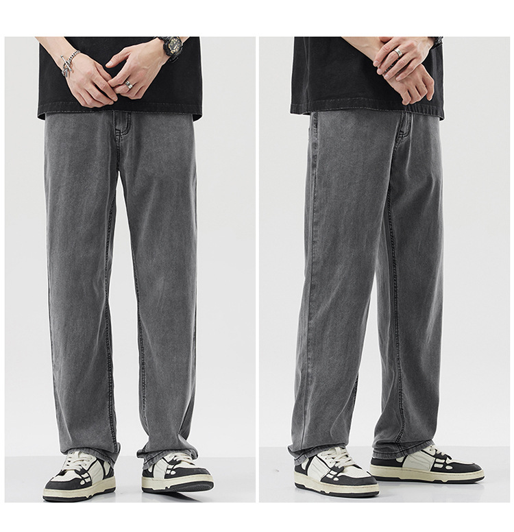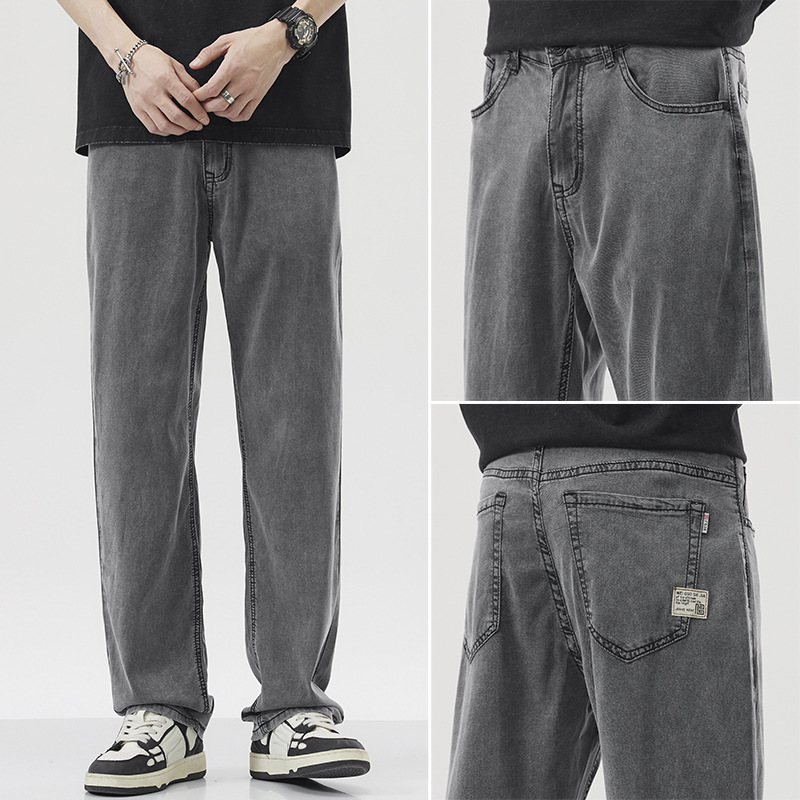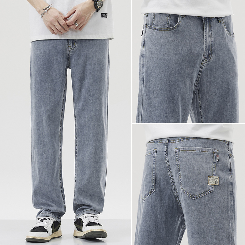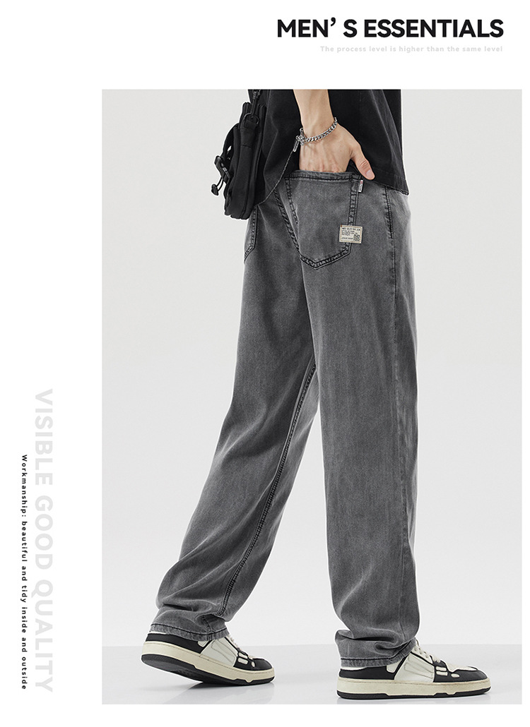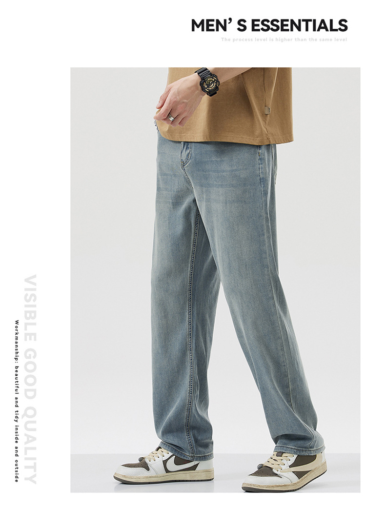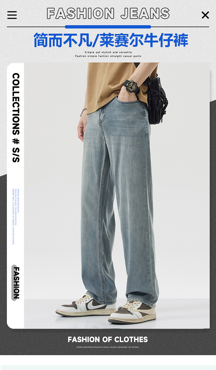 남성용 루즈핏 스트레이트 데님 팬츠 2025 여름 텐셀 경량 소프트 쿨링 고급 트렌디 만능 남성 팬츠