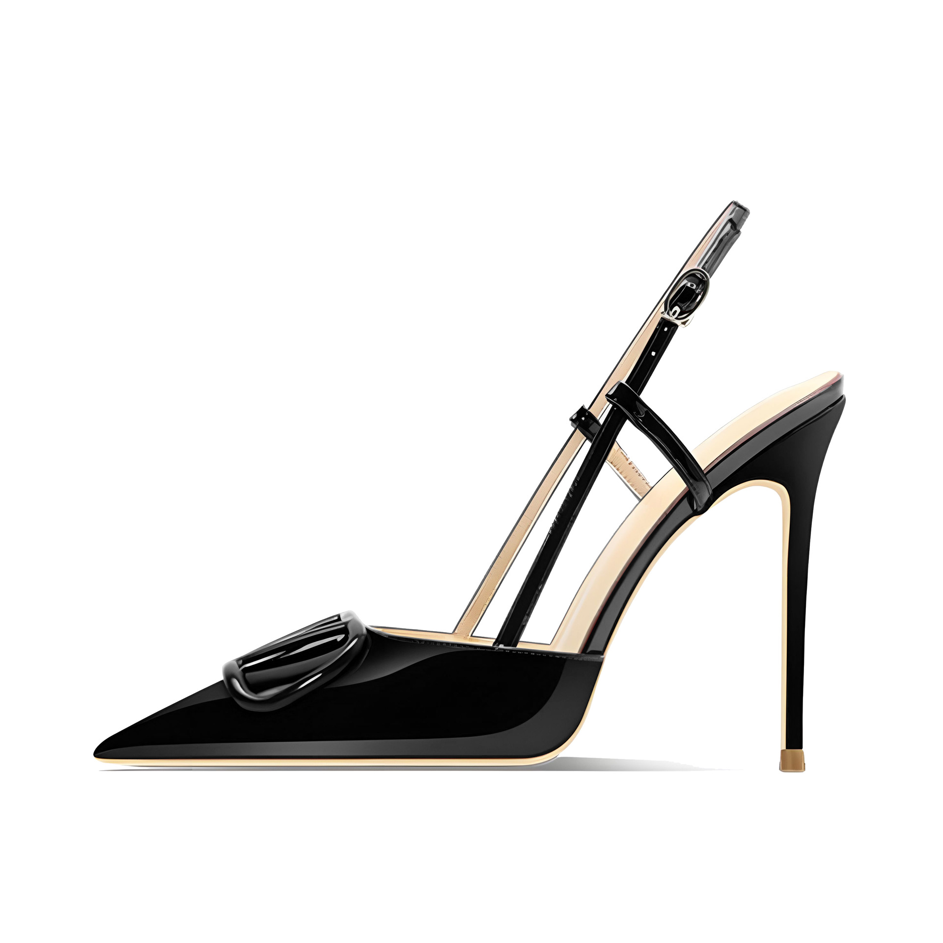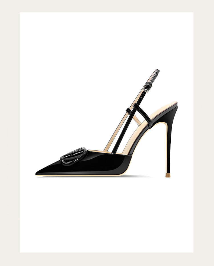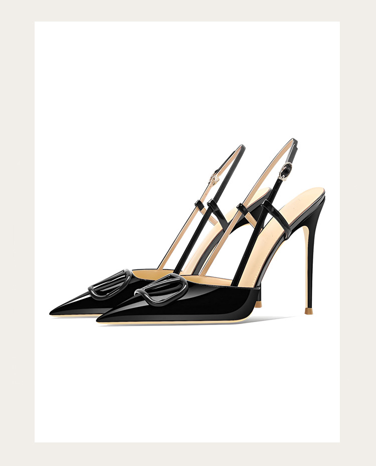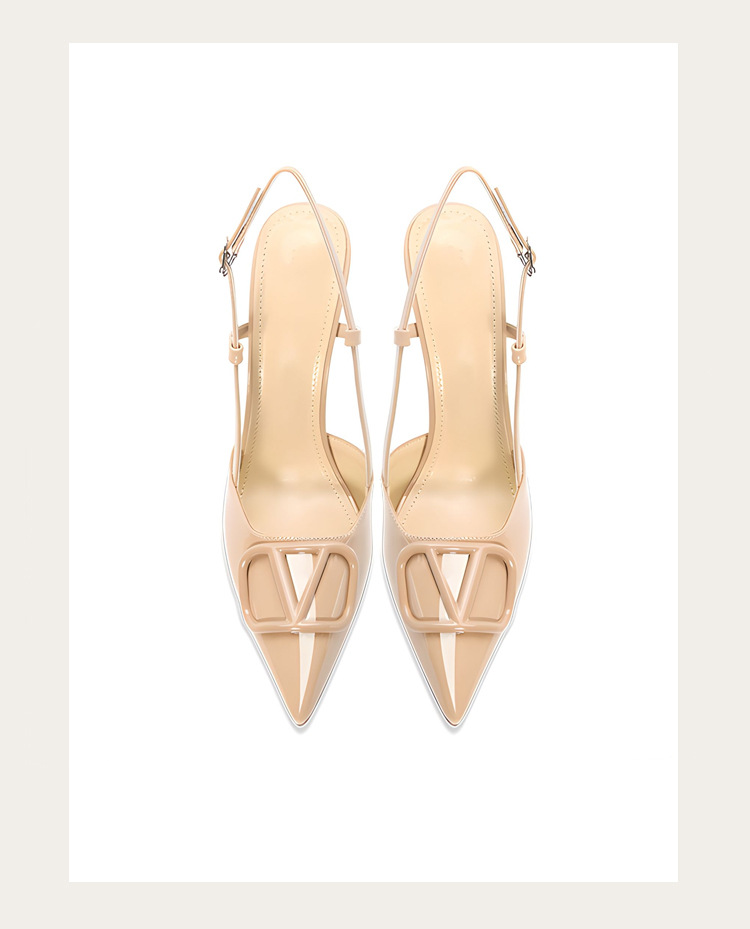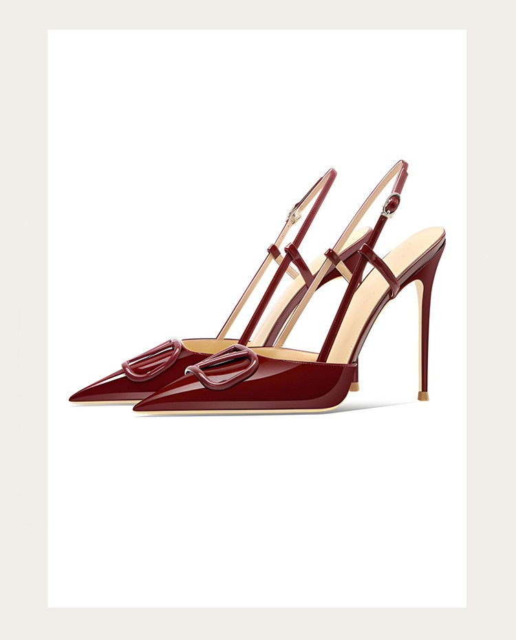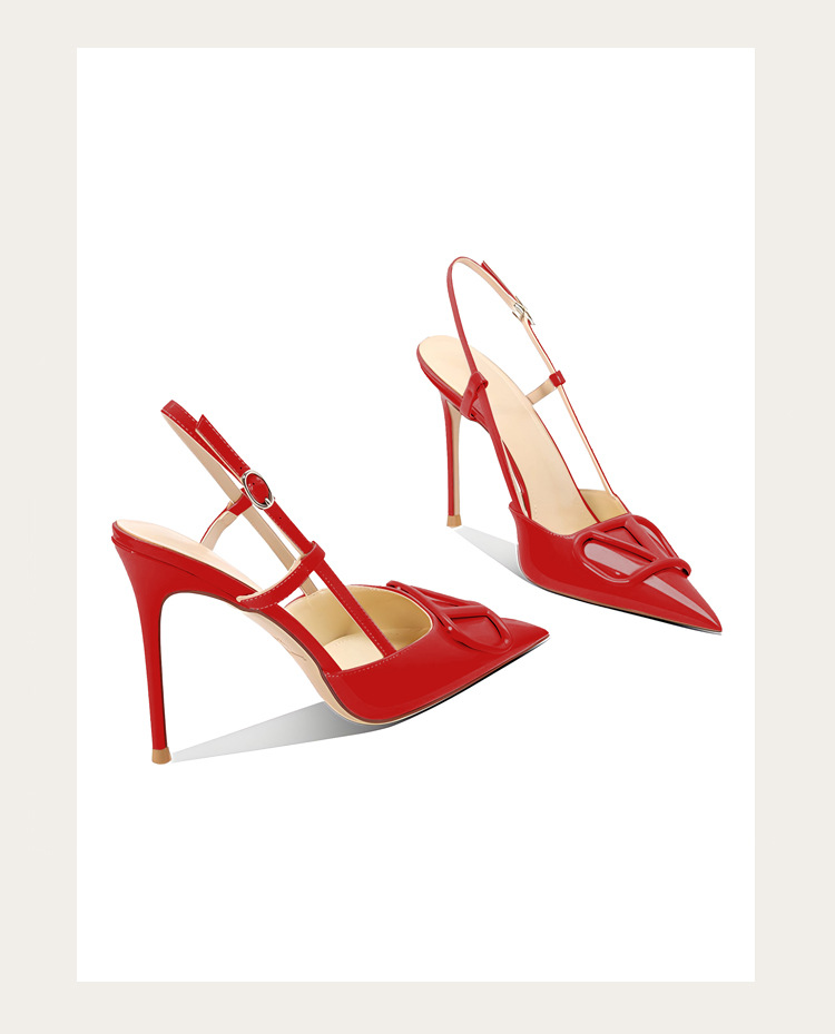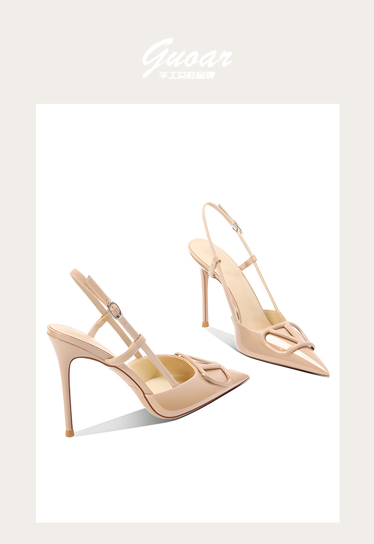 Guoar 대외 무역 포인트 V 자형 스퀘어 버클 특허 가죽 패션 올 매치 10cm 하이힐 여성 플러스 사이즈 35-44 샌들