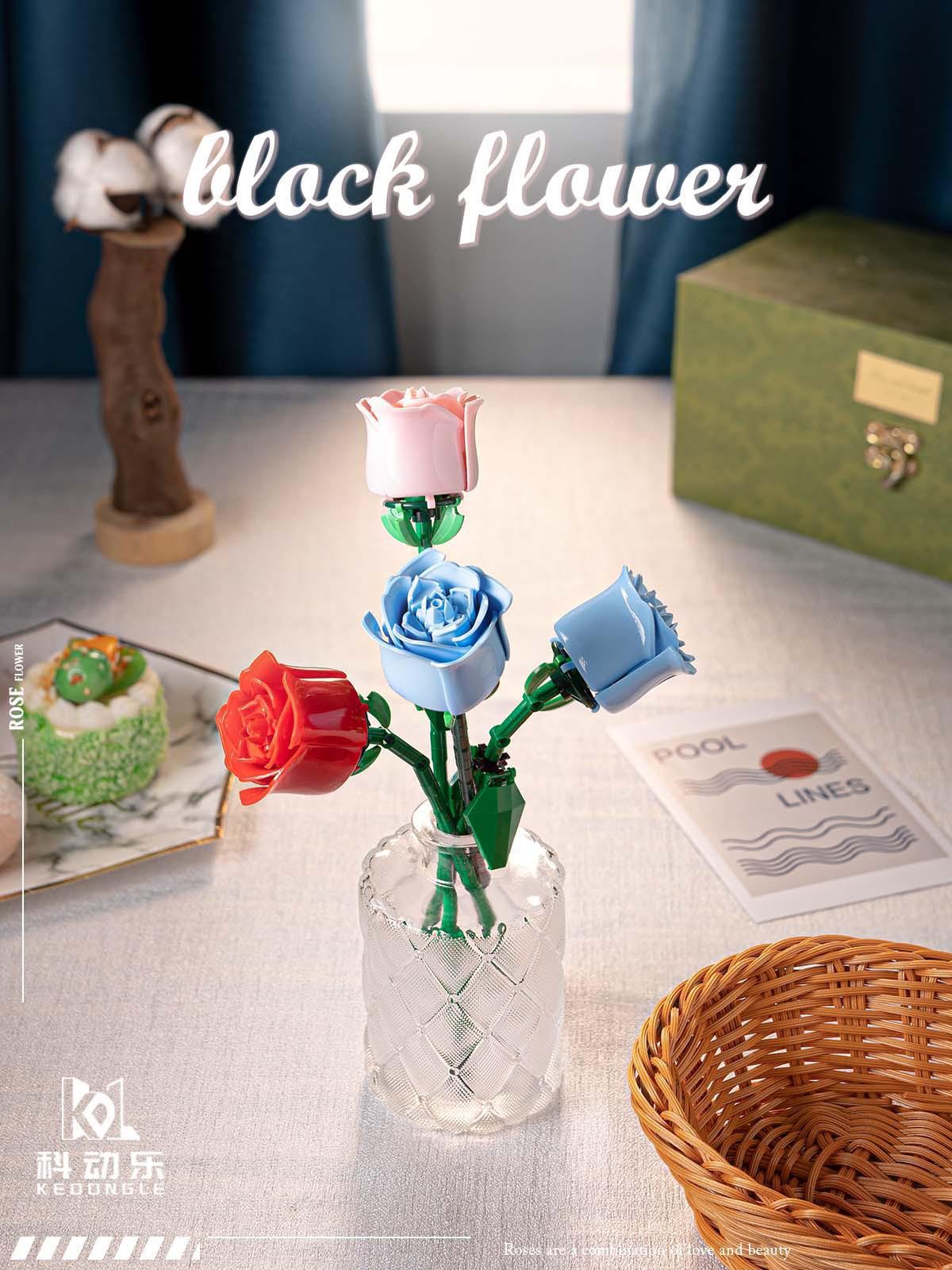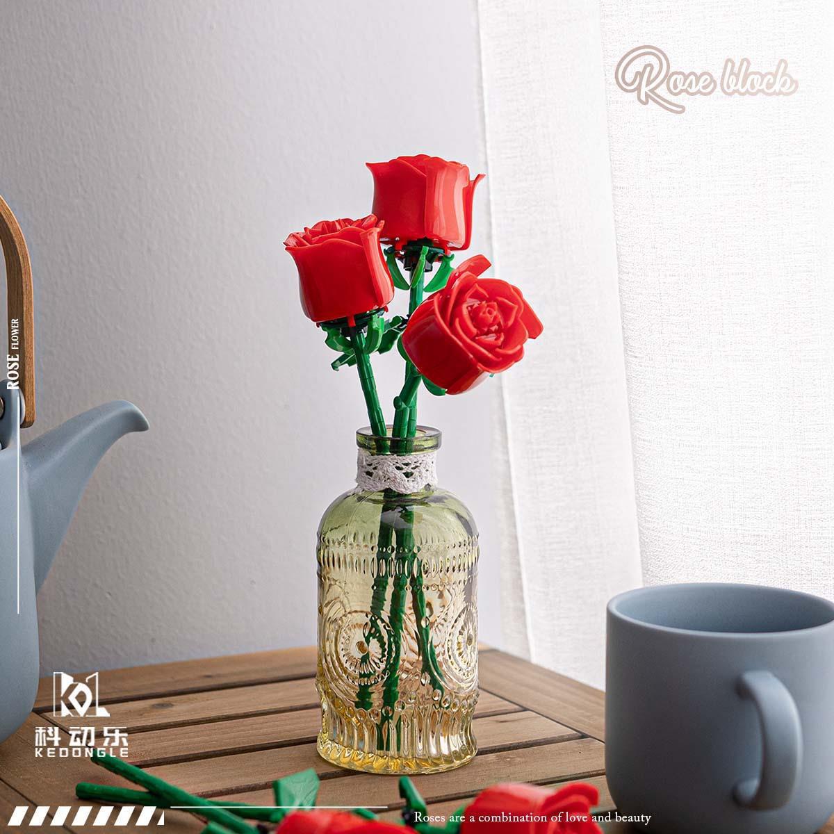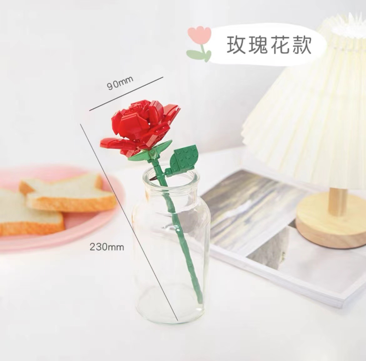 교육 건물 블록 영원한 꽃 장미 장식품 조립 건물 블록 장난감 소녀 발렌타인 데이 교사의 날 선물 색상 상자스토어 가기