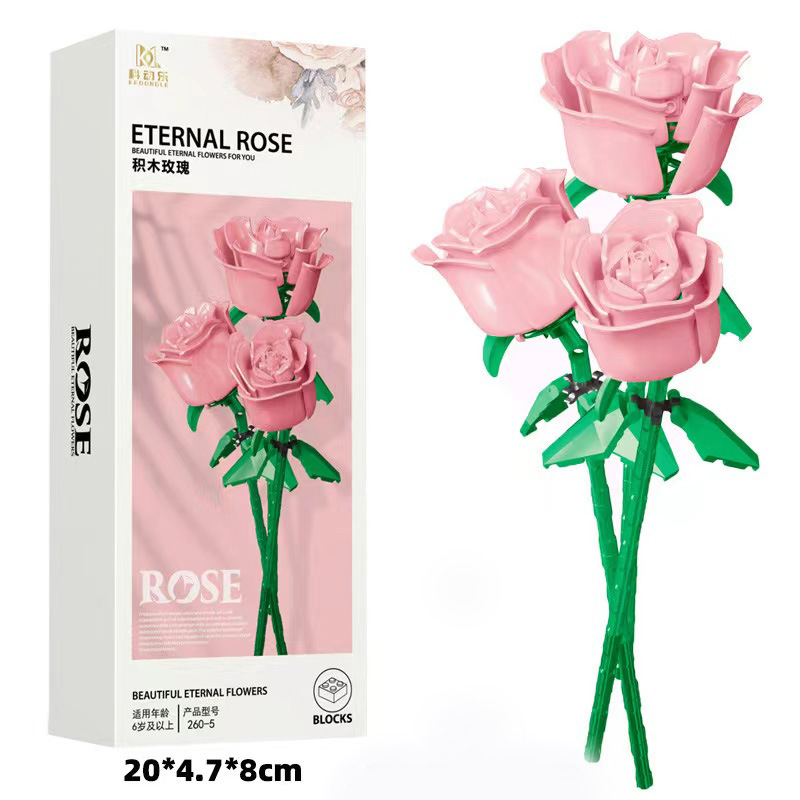 교육 건물 블록 영원한 꽃 장미 장식품 조립 건물 블록 장난감 소녀 발렌타인 데이 교사의 날 선물 색상 상자
