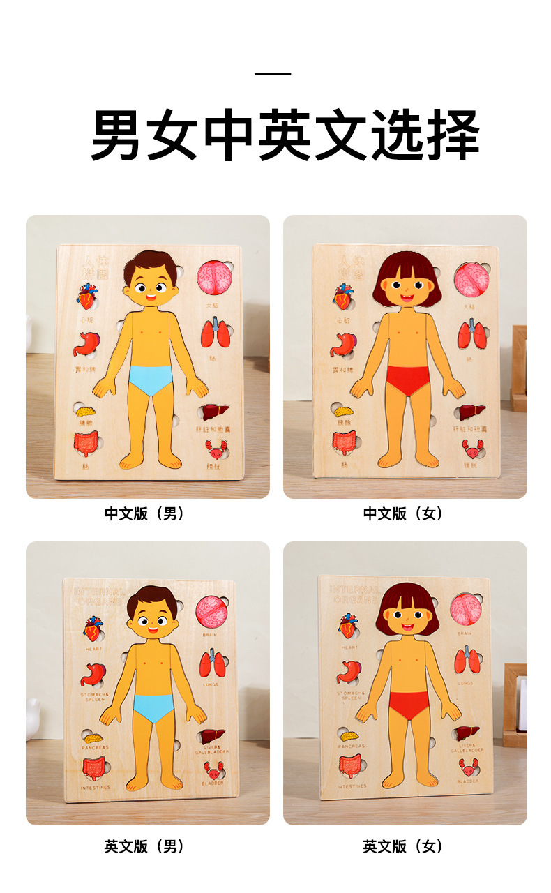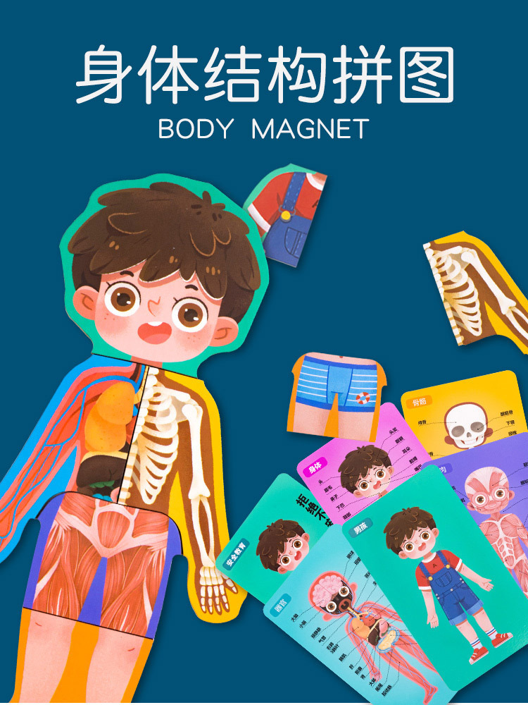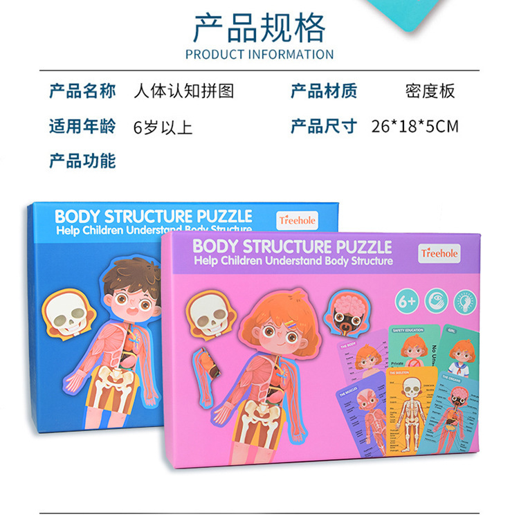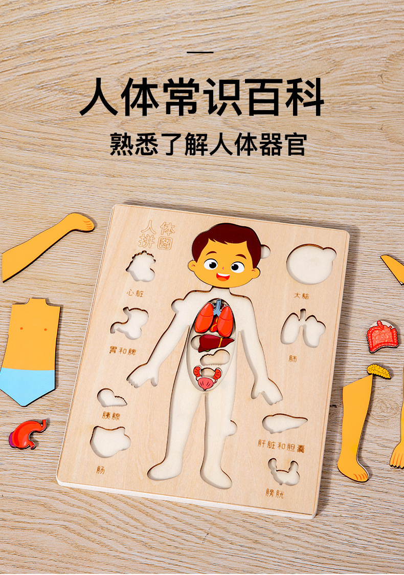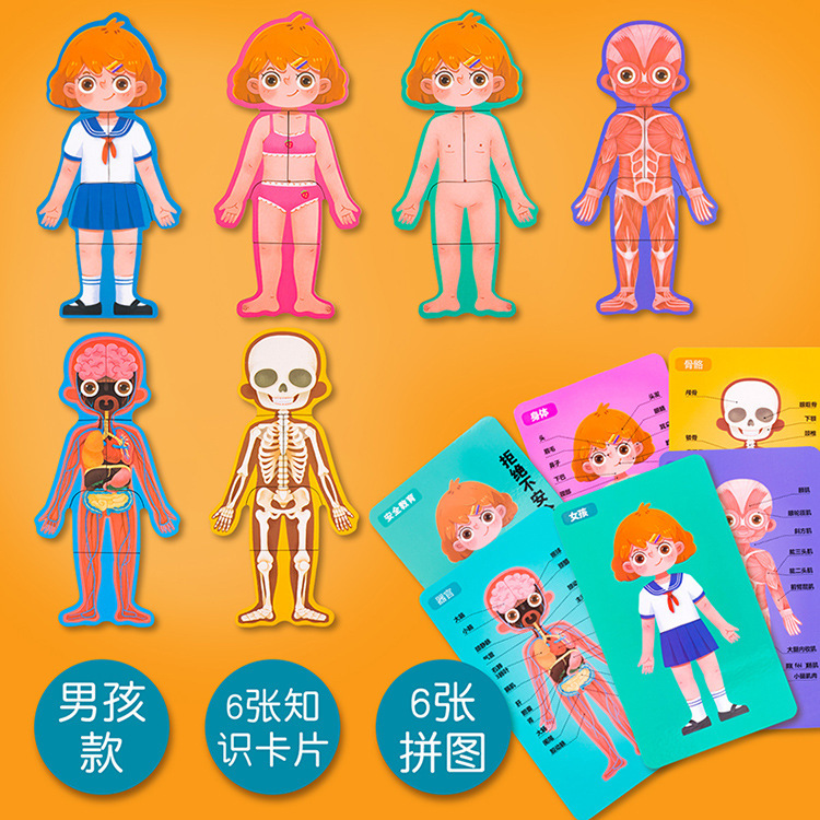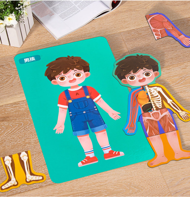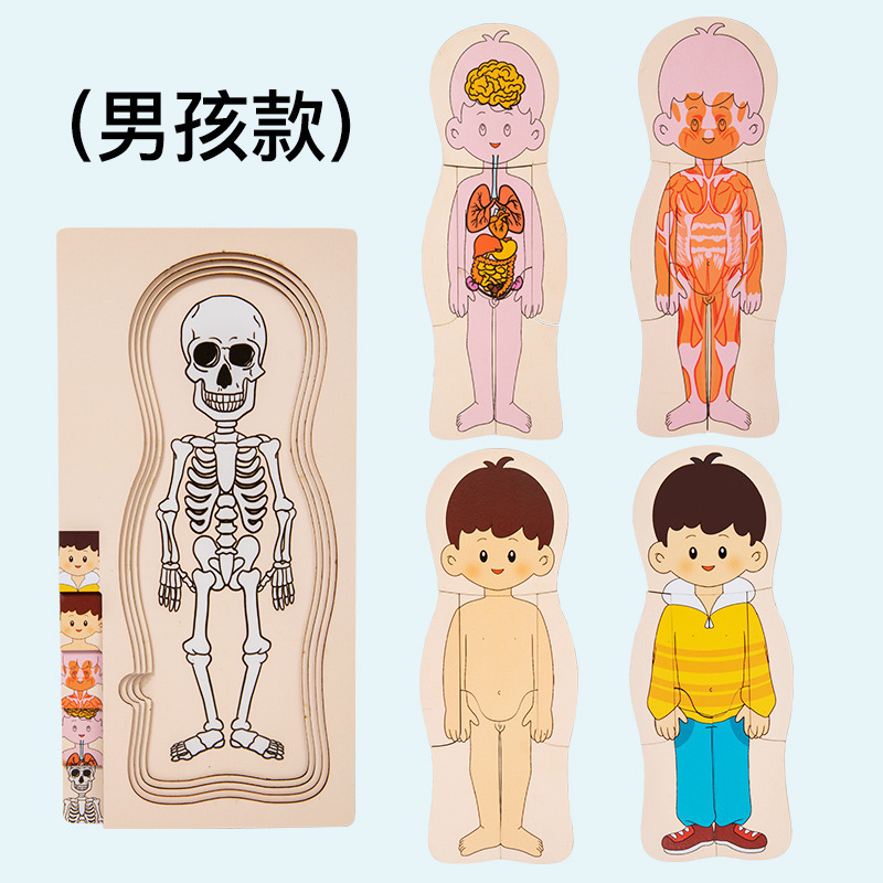 어린이 과학 및 교육 계몽 다층 인체 퍼즐 인지 퍼즐 조기 교육 신체 구조 내장 해골 장기 퍼즐