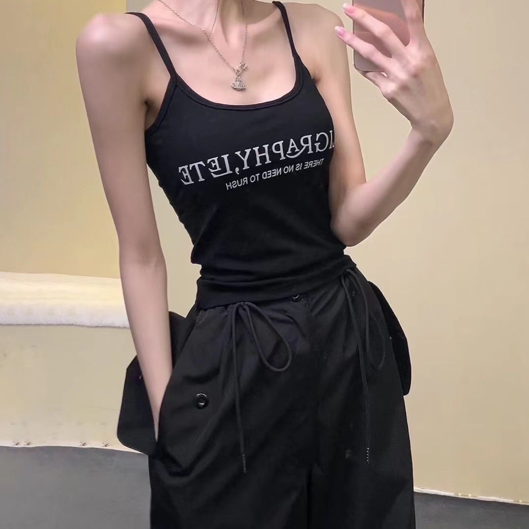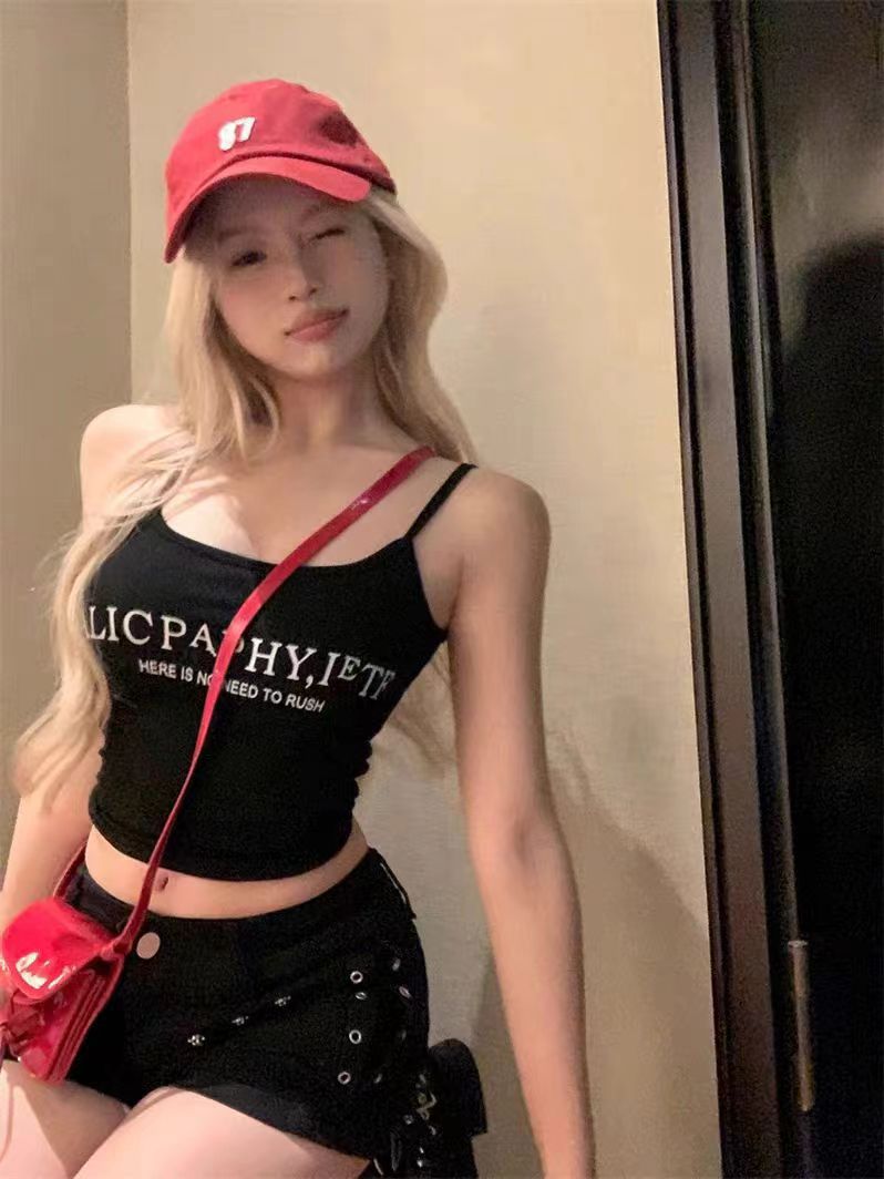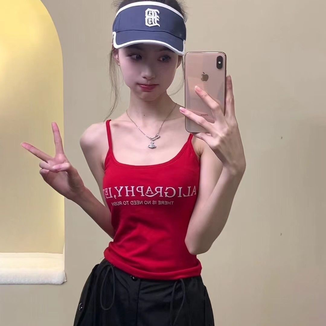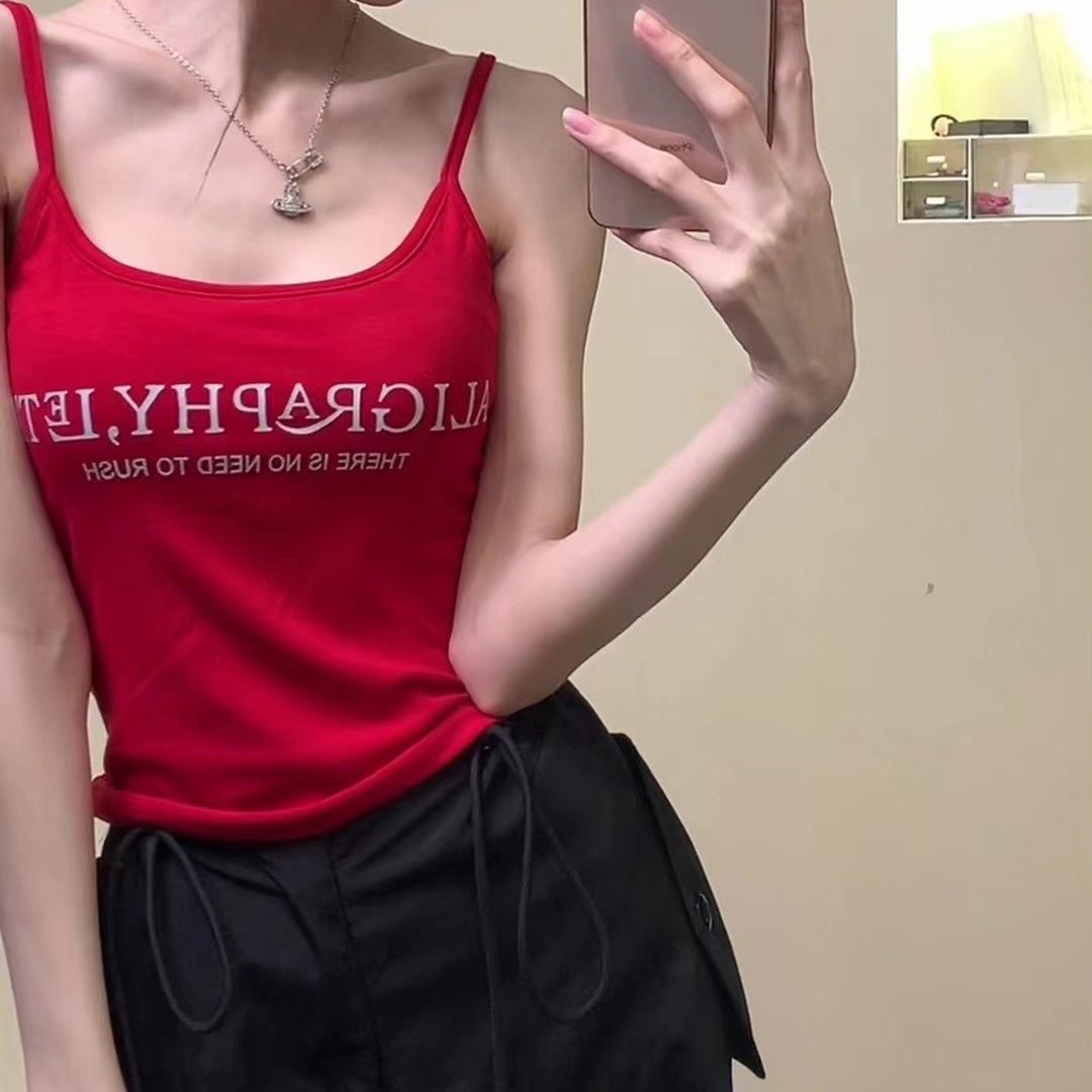 2024 새로운 한국식 편지 인쇄 슬링 조끼 벨트 가슴 패드 내부 달콤한 스파이스 소녀 슬림 핏 외부 착용 아름다운 백 랩 가슴