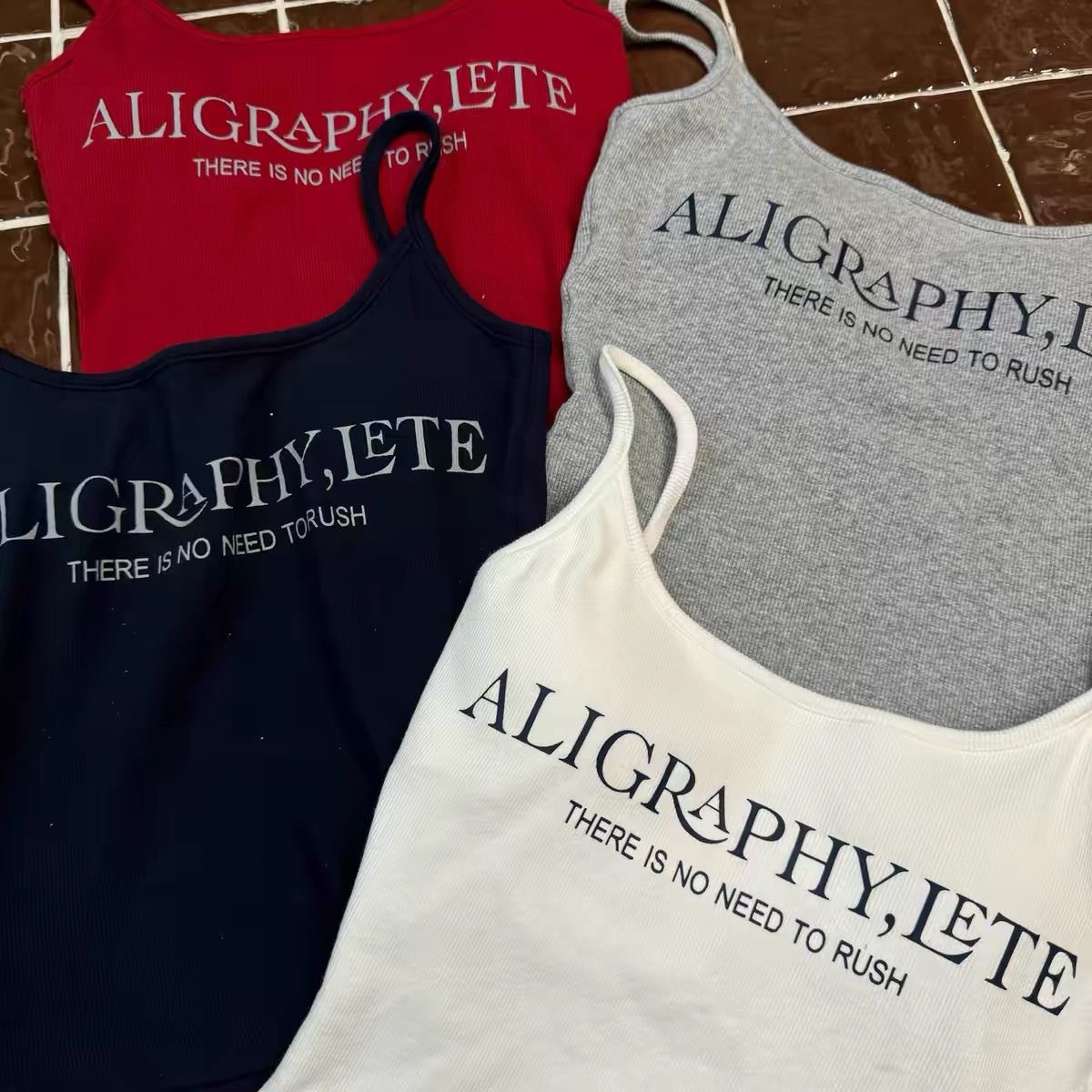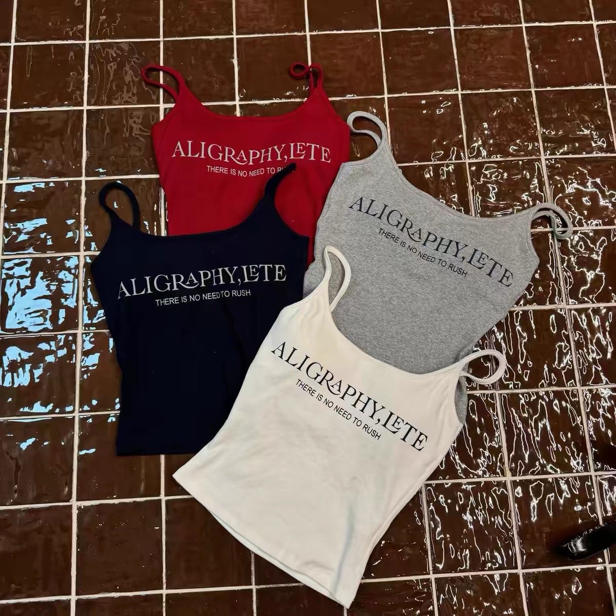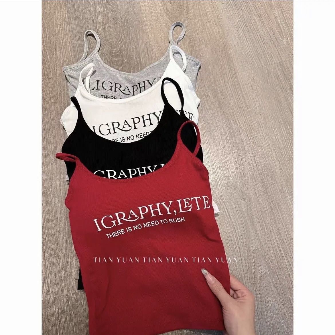 2024 새로운 한국식 편지 인쇄 슬링 조끼 벨트 가슴 패드 내부 달콤한 스파이스 소녀 슬림 핏 외부 착용 아름다운 백 랩 가슴