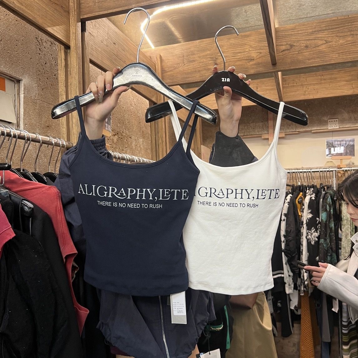 2024 새로운 한국식 편지 인쇄 슬링 조끼 벨트 가슴 패드 내부 달콤한 스파이스 소녀 슬림 핏 외부 착용 아름다운 백 랩 가슴스토어 가기