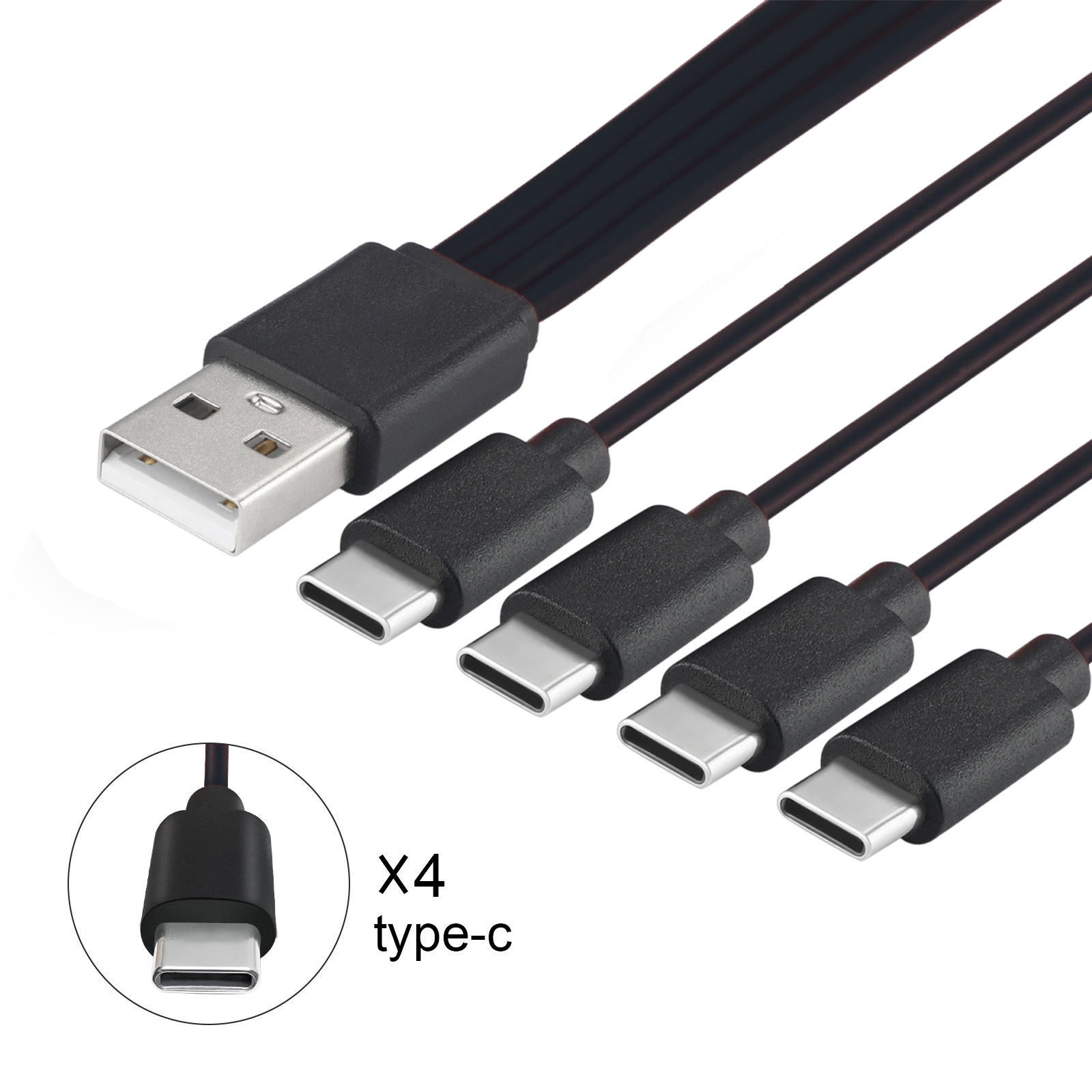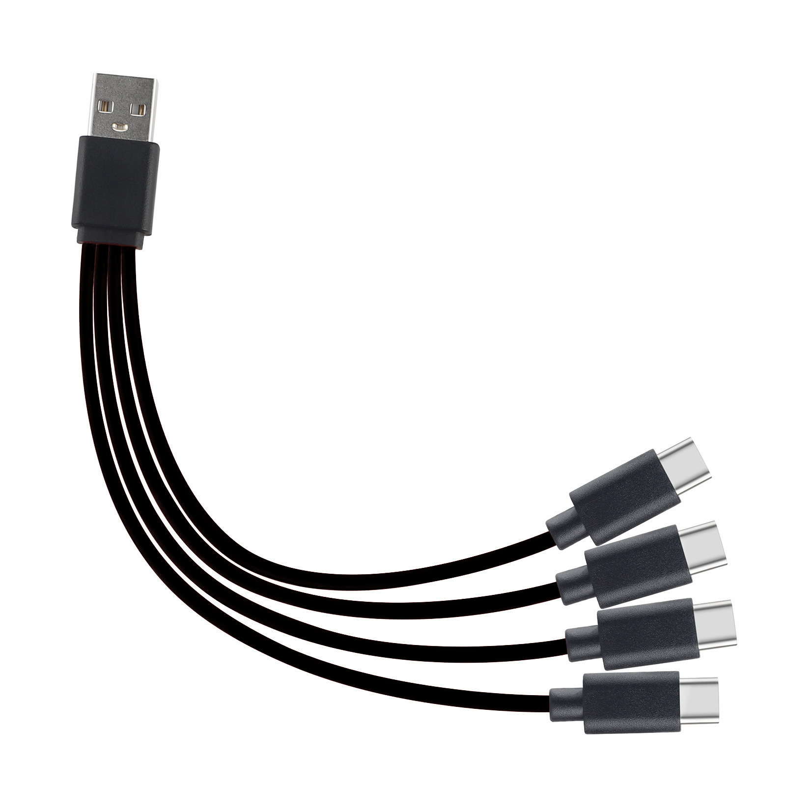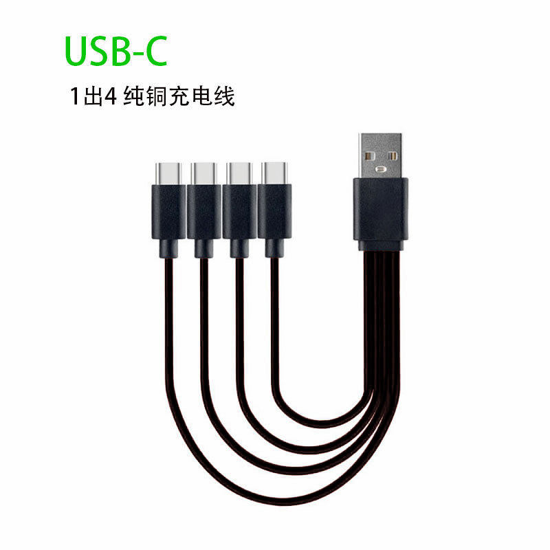 产品特点:镀镍四插头,支持四部不同设备同时充电,高导电线芯,充电更稳更,快兼容性好,兼容不同设备充电使用。