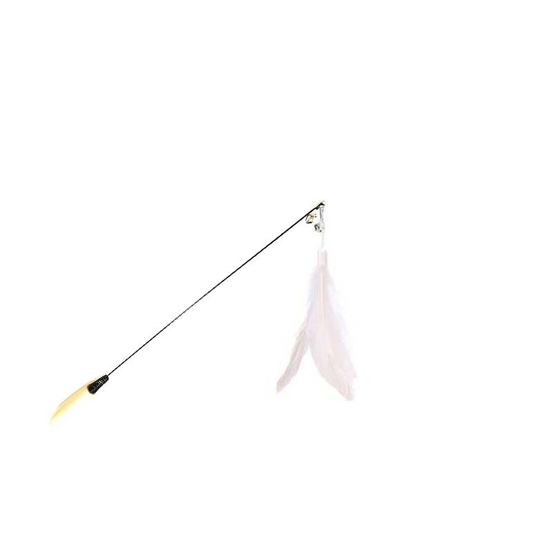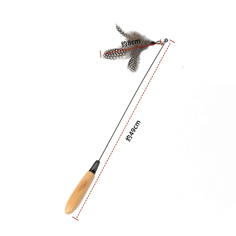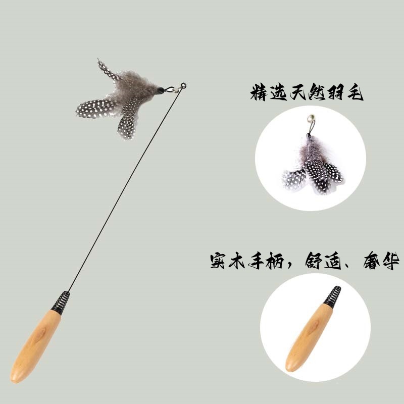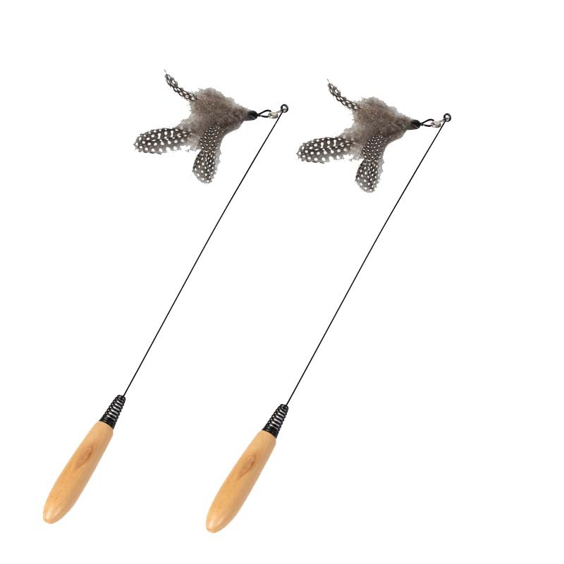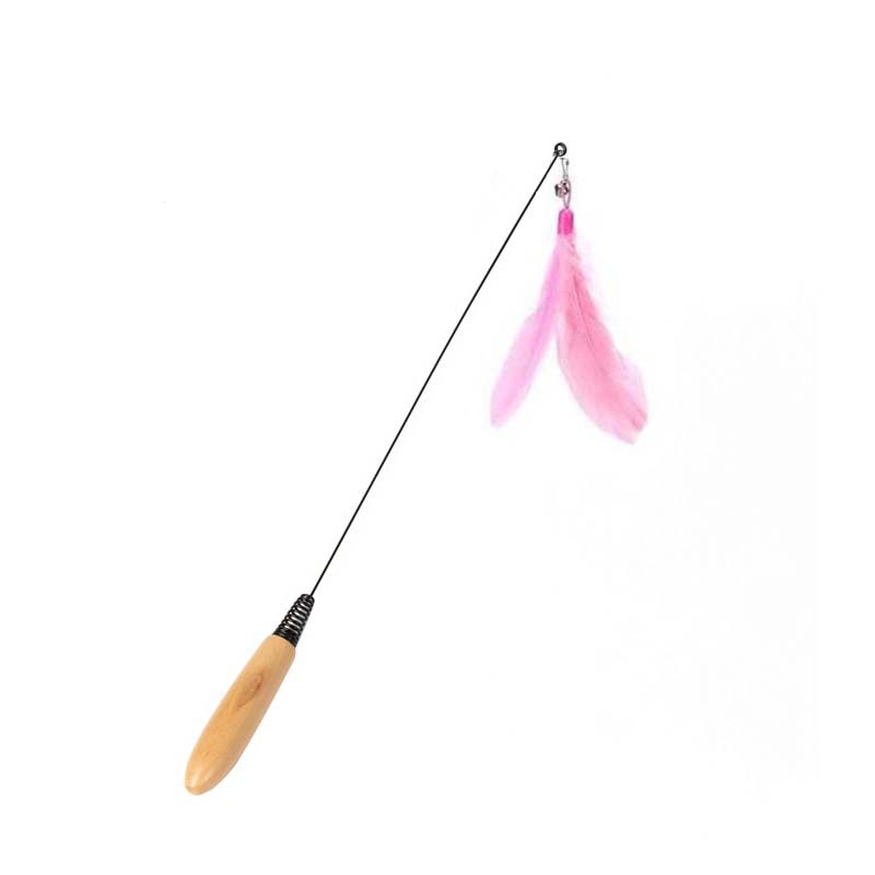 공장 도매 CFA 고양이 스틱 기본 색상 깃털 교체 핸드 헬드 나무 손잡이 고양이 스틱 고양이 장난감 대화 형 스프링 막대