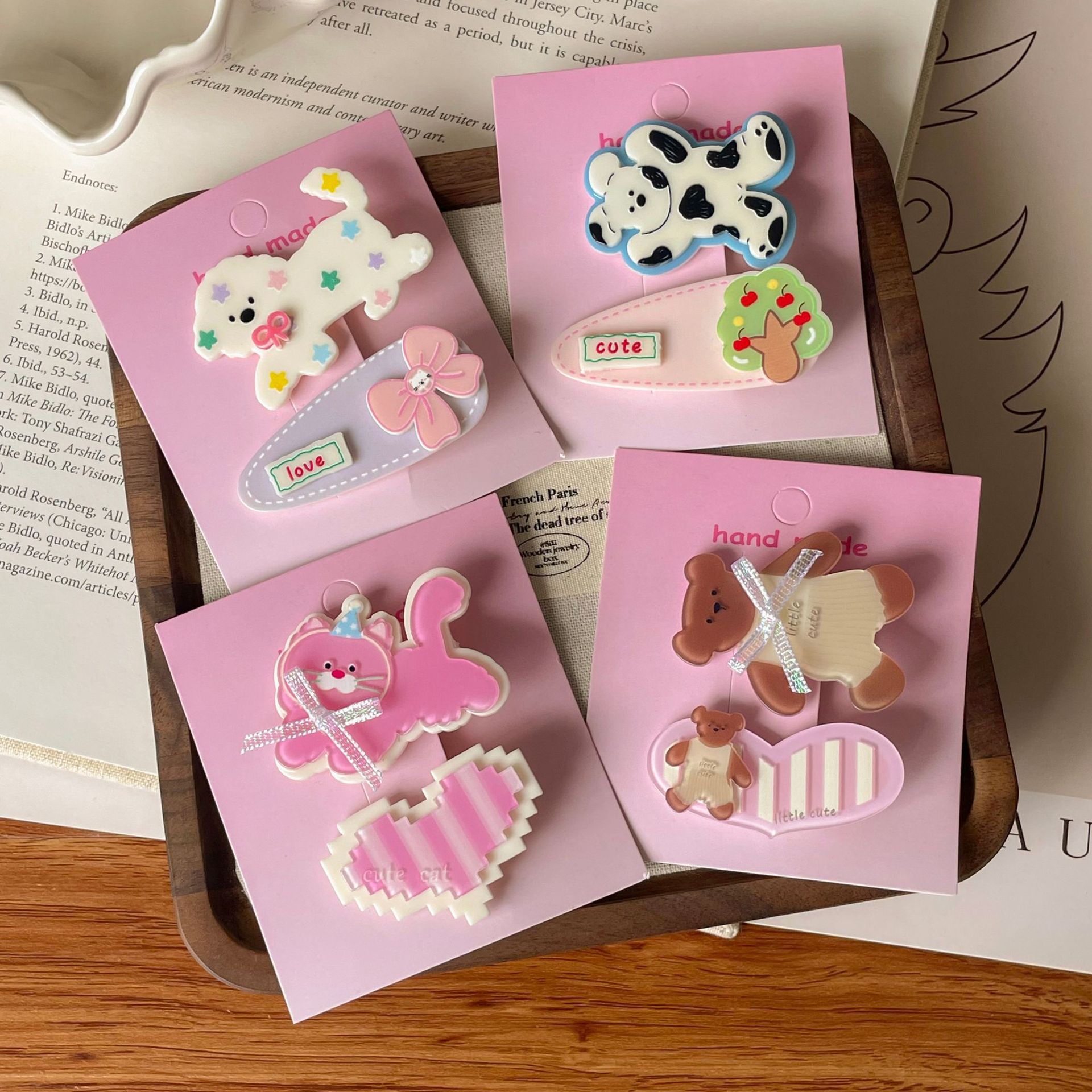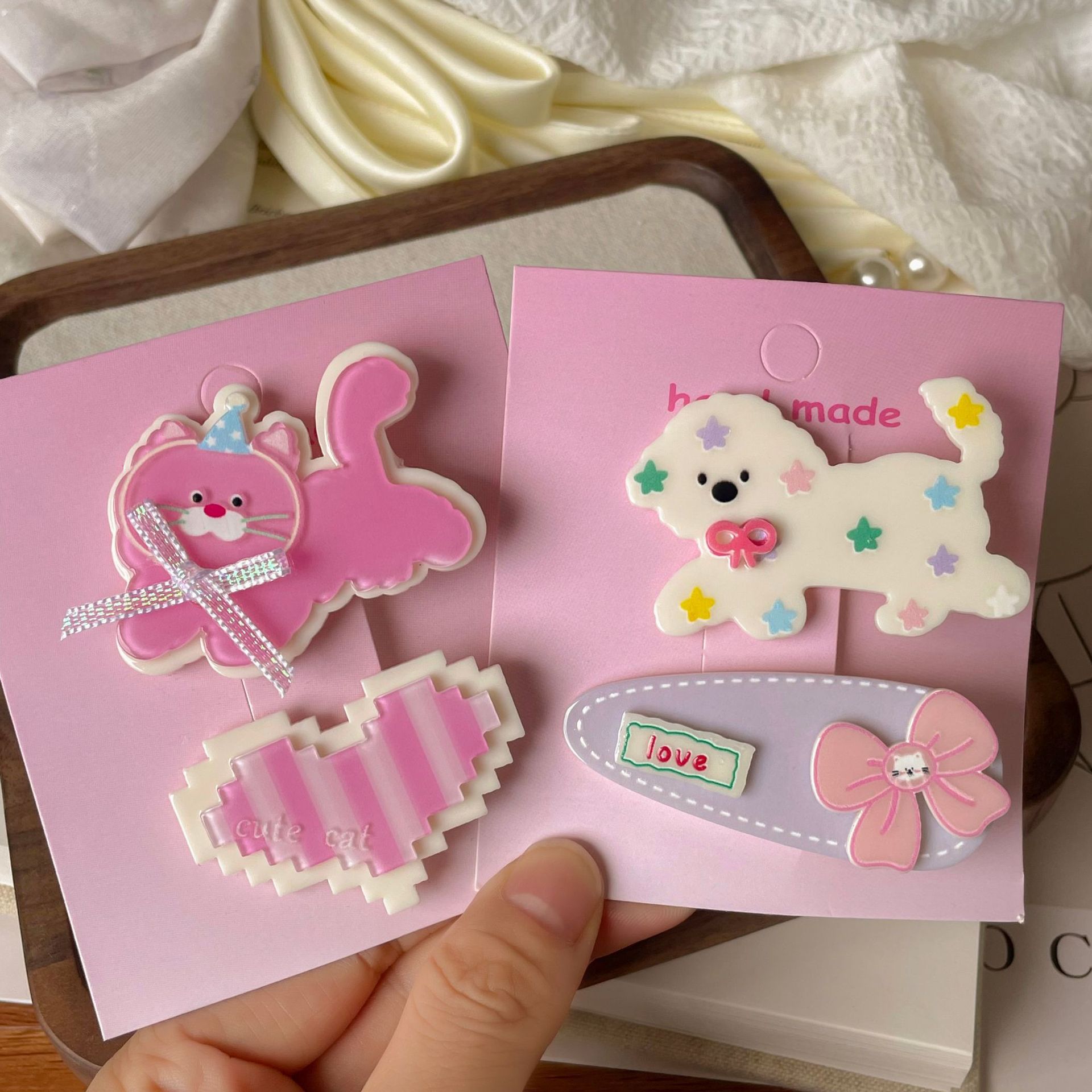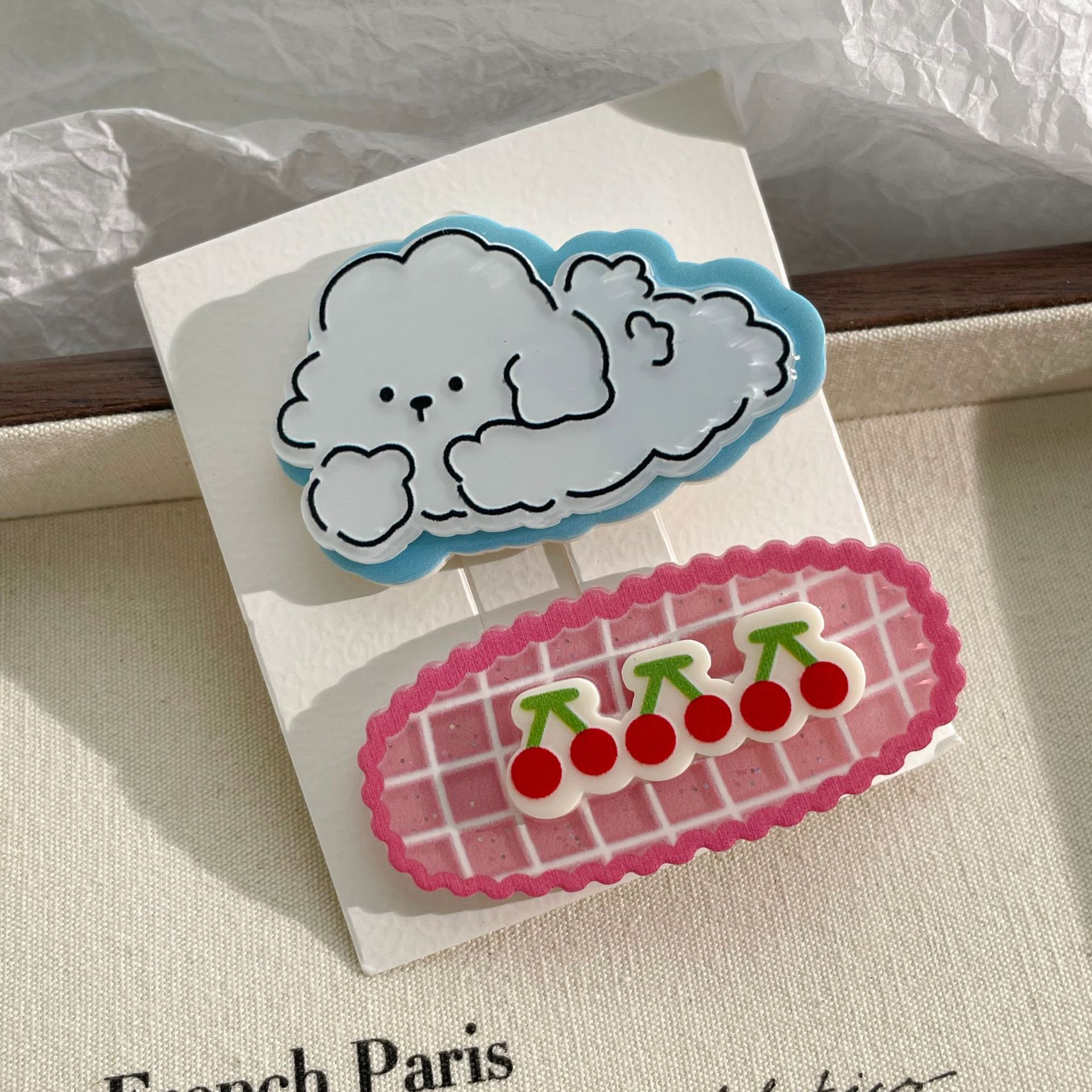 인터넷 빨간색 만화 머리핀 어린이 배치 귀여운 사이드 앞머리 덕빌 깨진 머리핀을 판매하는 하이 엔드 느낌 머리핀 배치 스톨스토어 가기