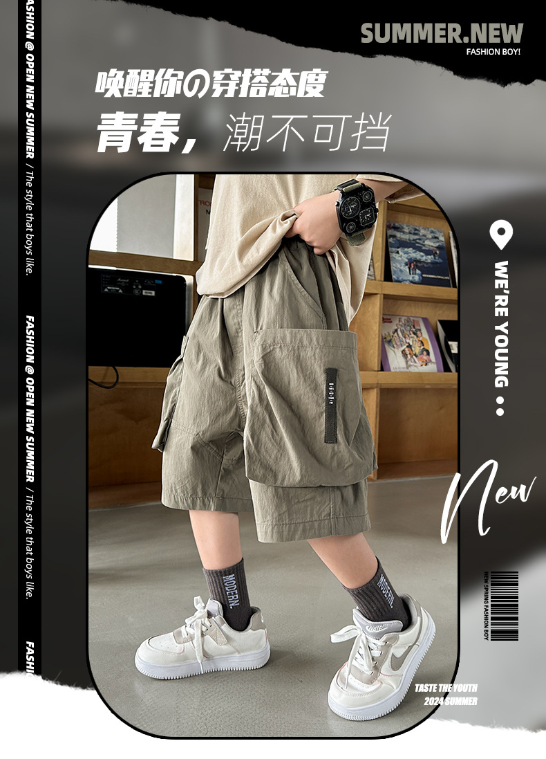 여름 중다 소년 캐주얼 반바지 새로운 아동복 어린이 소년 빅 포켓 성격 5 점 더피 핸섬 트렌디스토어 가기
