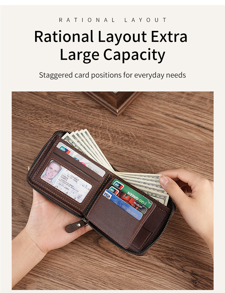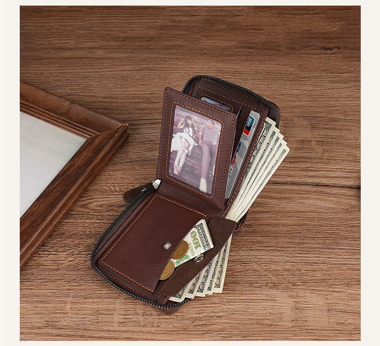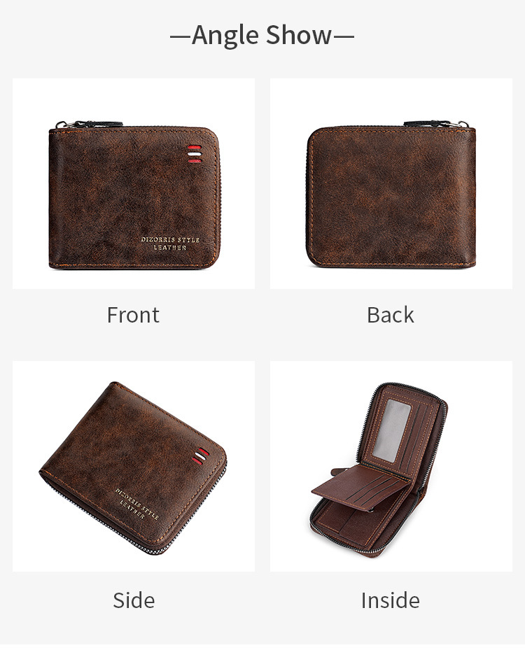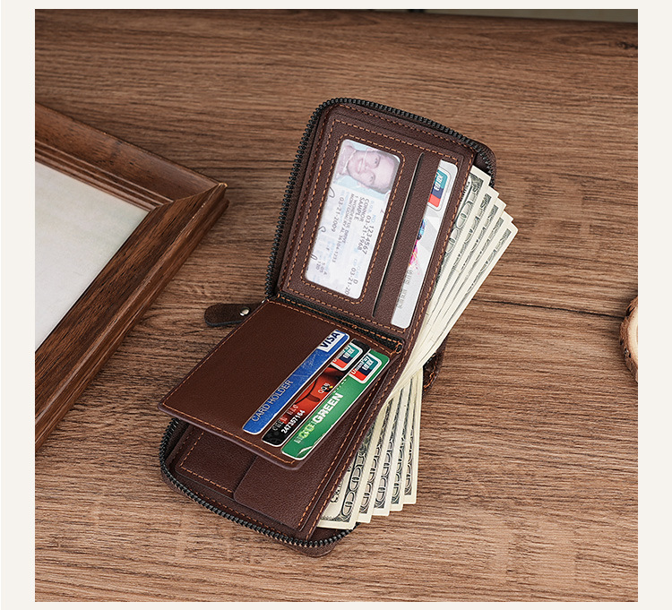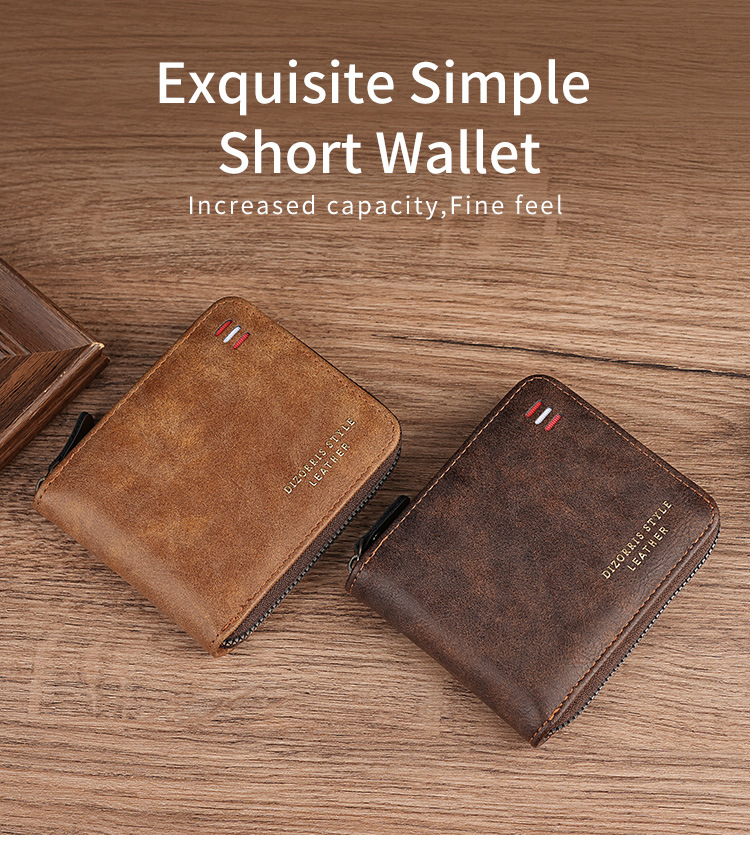 2024 클래식 남성 지갑 국경 간 레트로 지퍼 짧은 멀티 카드 세련된 신용 카드 홀더 코인 지갑