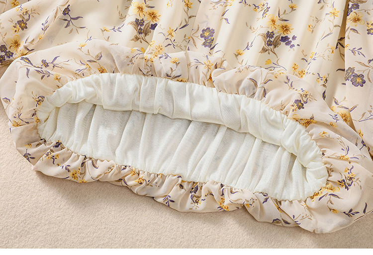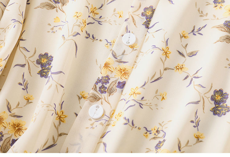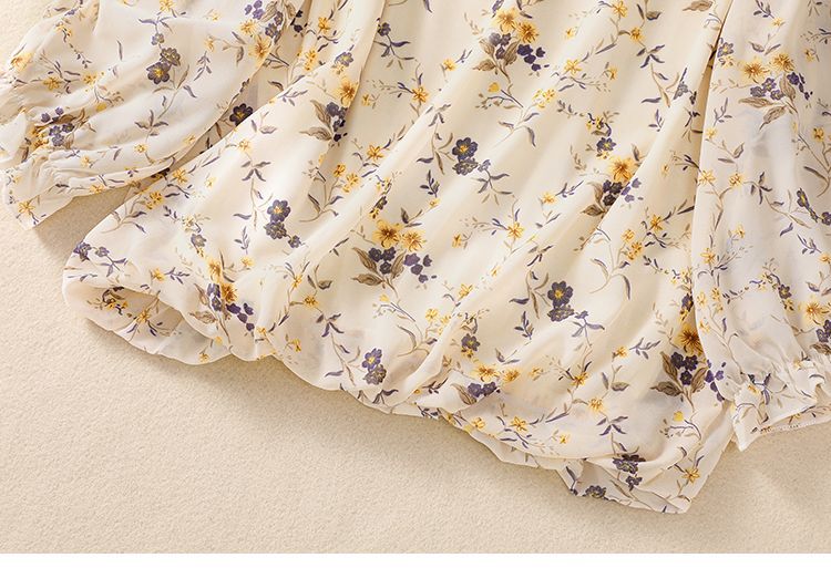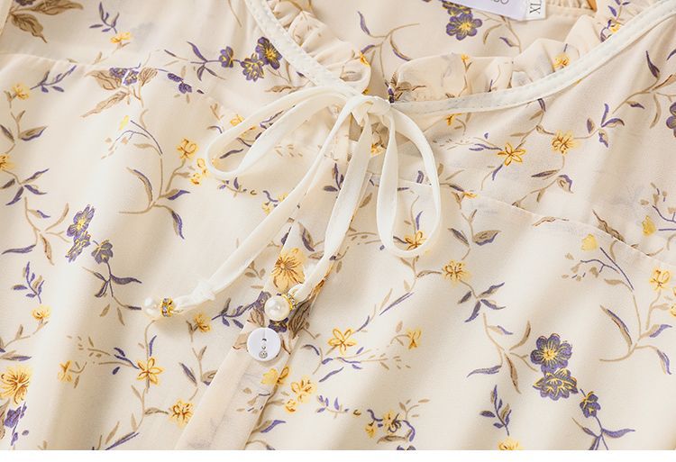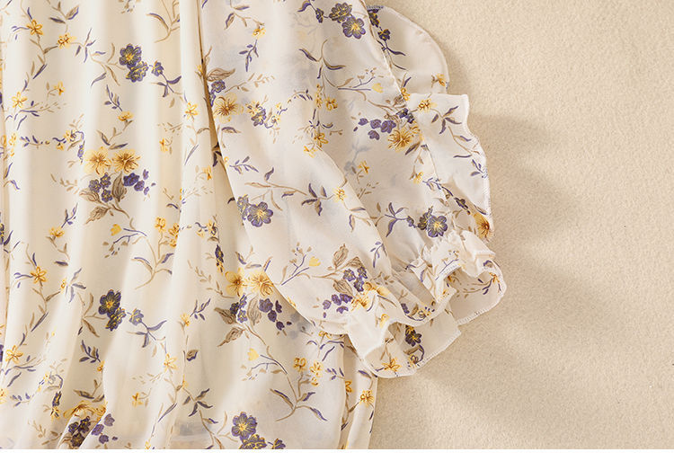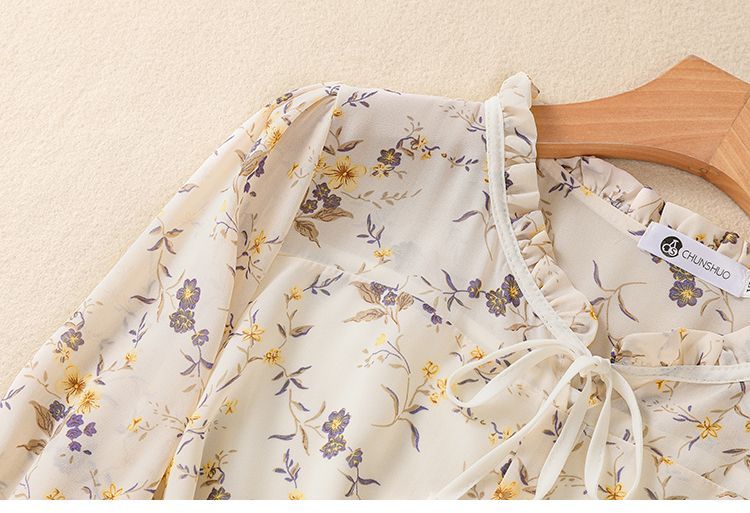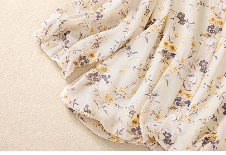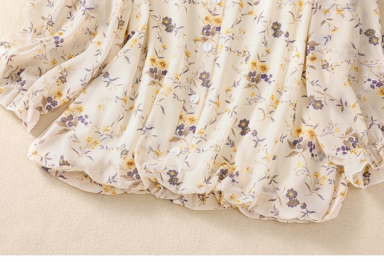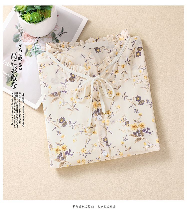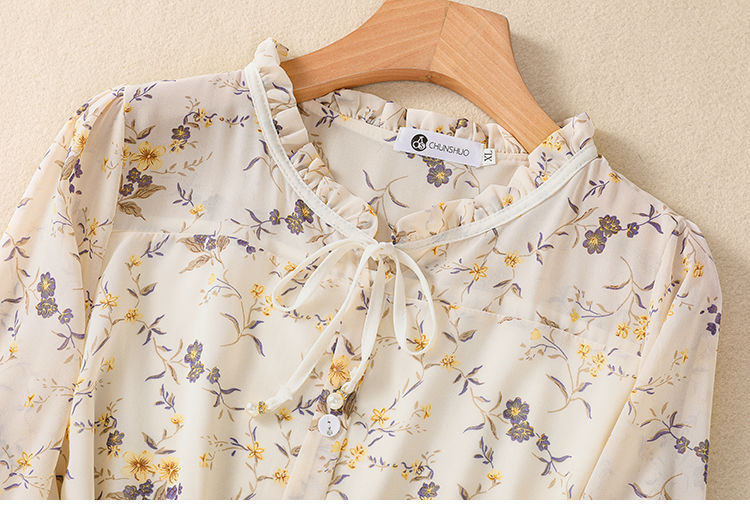 러플 장식의 배를 가려주는 쉬폰 셔츠 2024 신상 여성 고급스러운 플로럴 탑 산뜻한 스타일 다용도 슬림핏스토어 가기