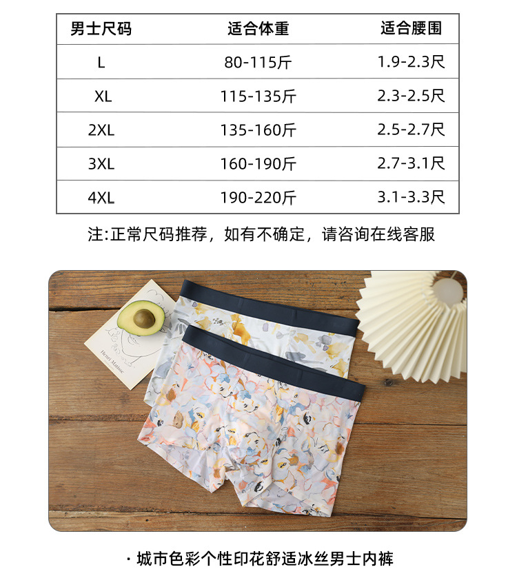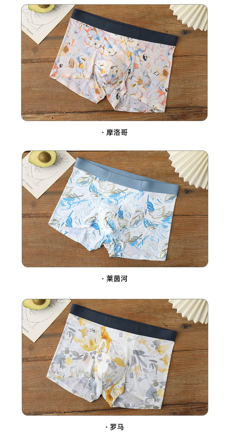 모로코 ~ 도시 컬러 속옷 남성용 아이스 실크 라이트와 트랙리스 여름 얇은 남성 속옷 중간 허리 박서스토어 가기