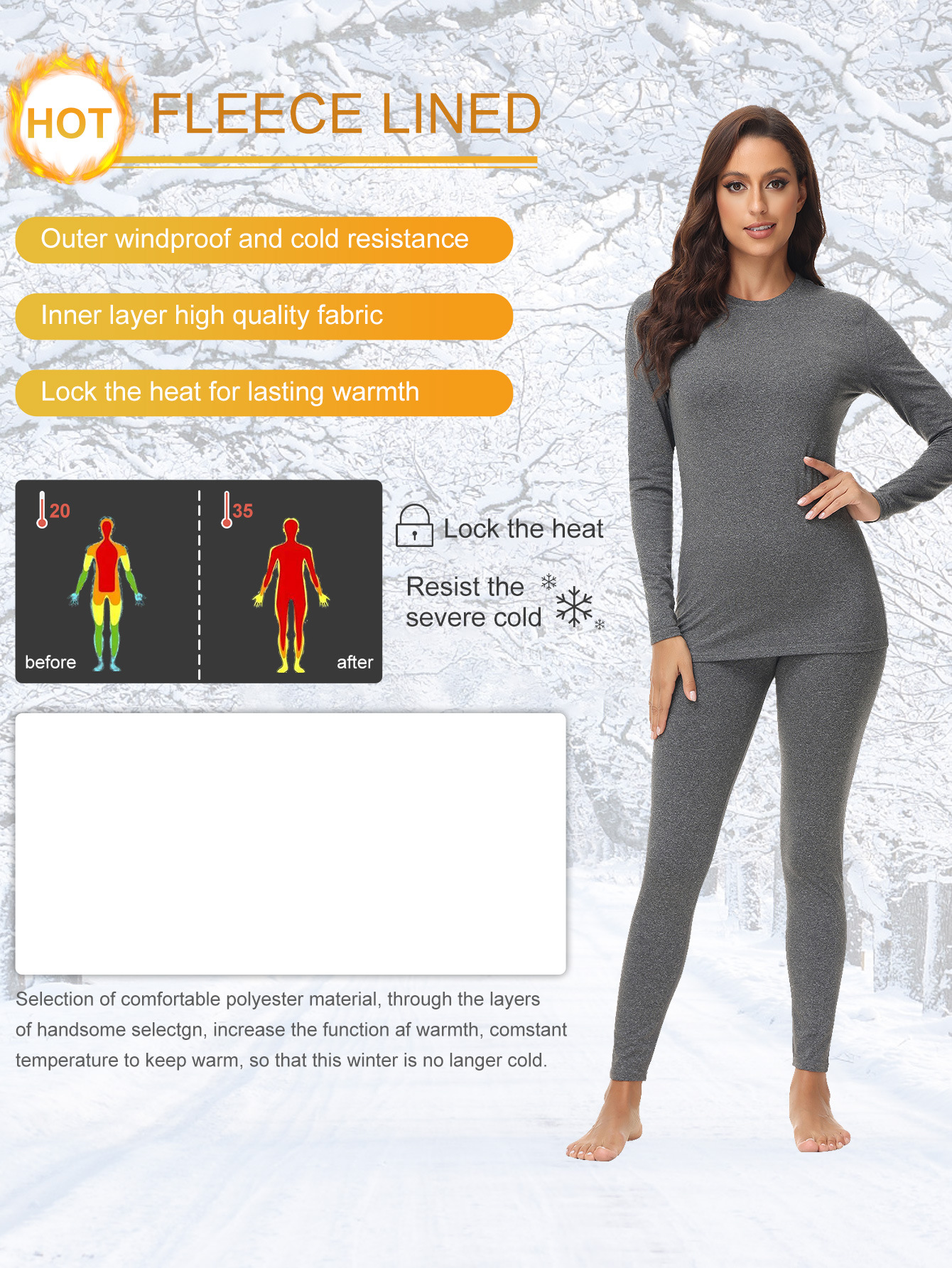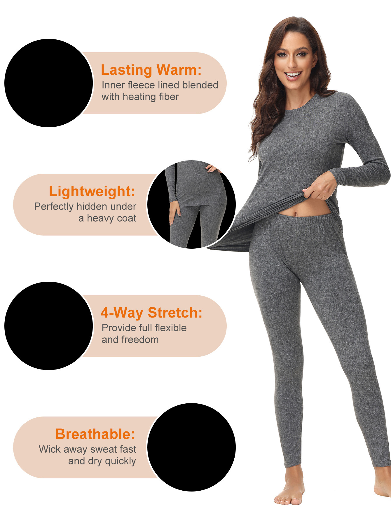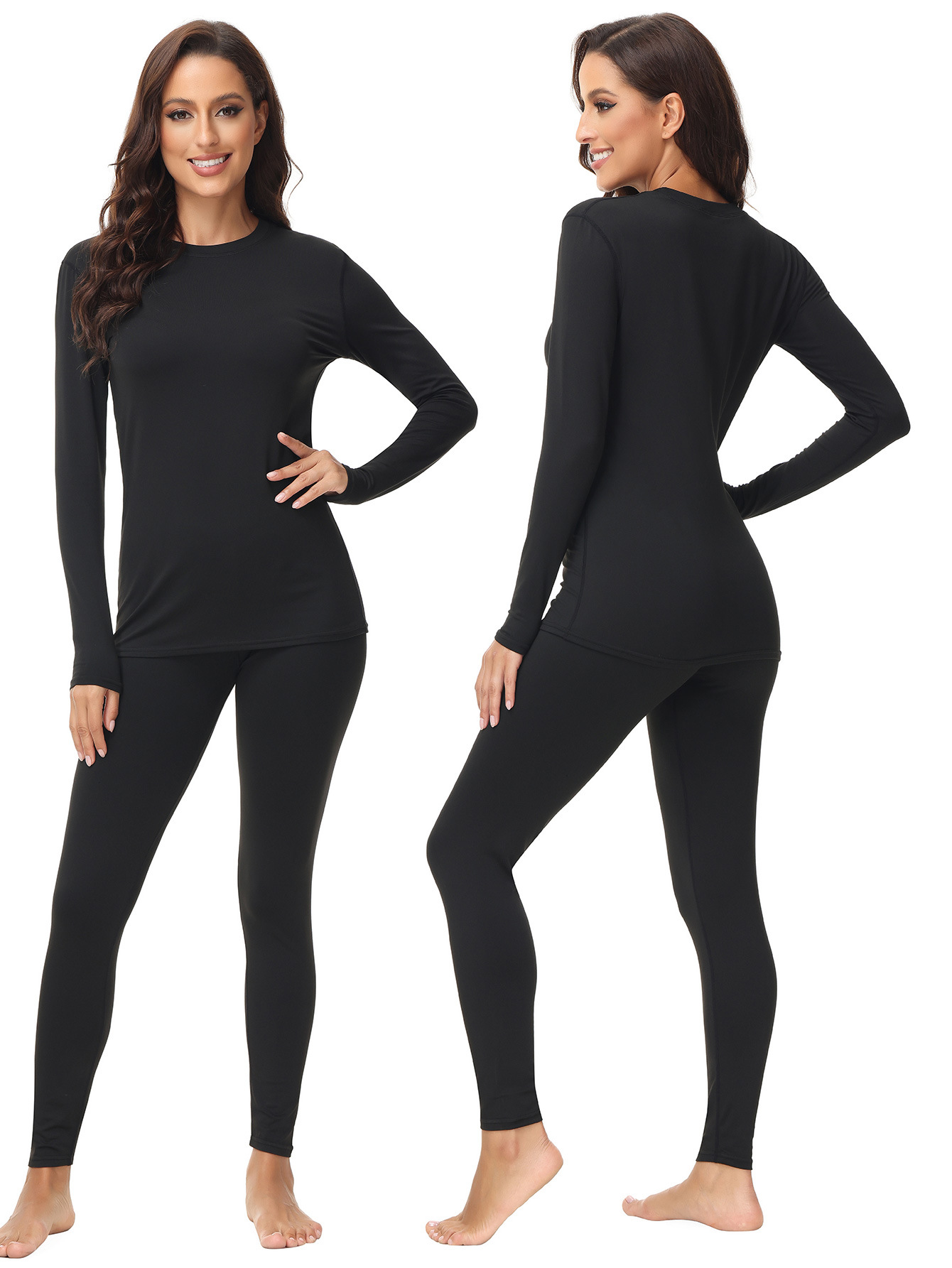 1201 크로스보더 라운드넥 여성용 보온 내의 세트 (가을/겨울용)